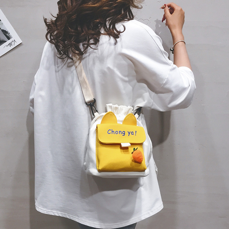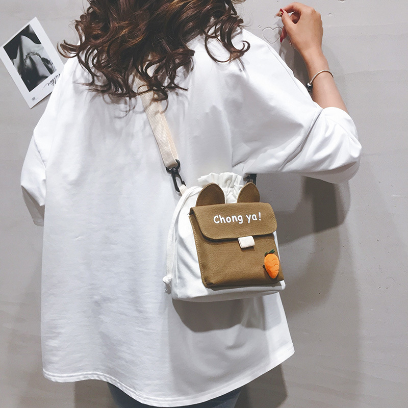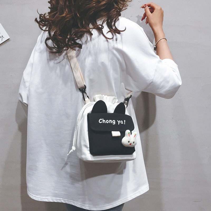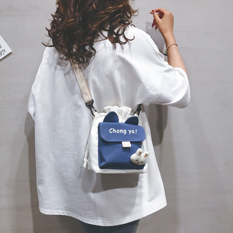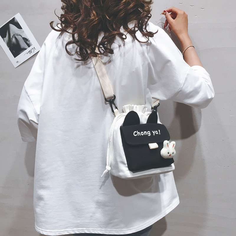 Tas Kecil Lucu Tas Selempang Kanvas Mudah Dipadu Padan Gaya Jepang Instagram Gaya Korea Model Baru 2025 Tas Ember Bahu Tunggal Pelajar Perempuan