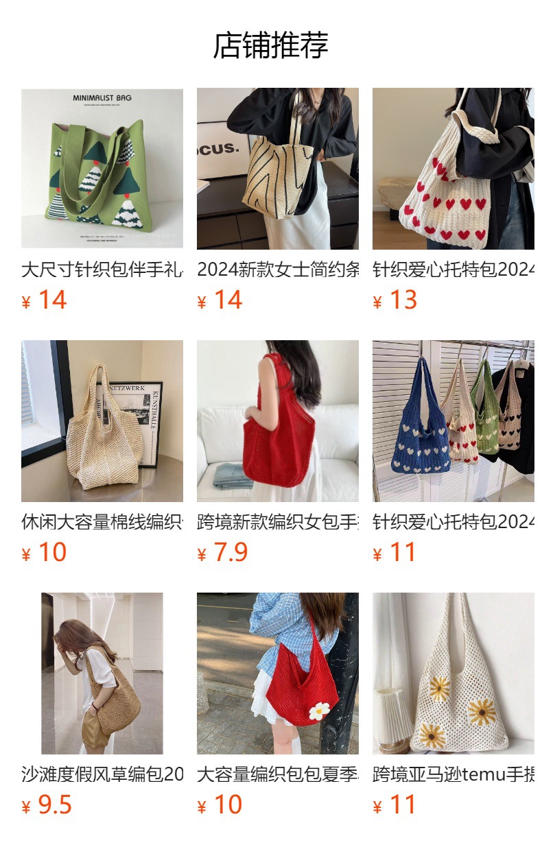 韩风chic钩织包网格包女夏天海边沙滩包手编织镂空肩托特大包