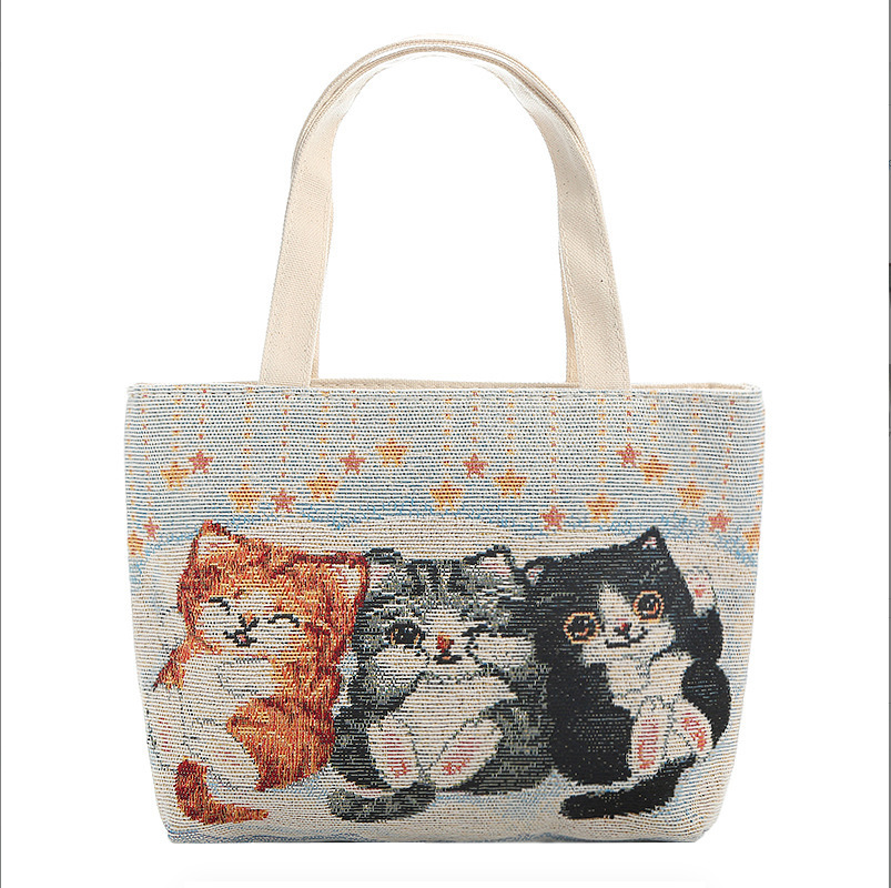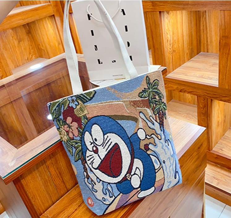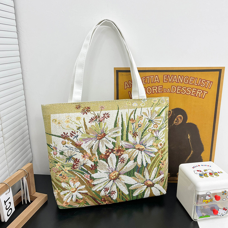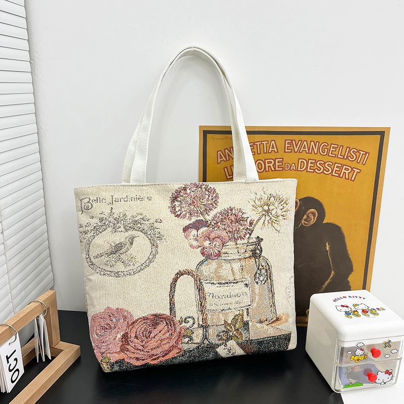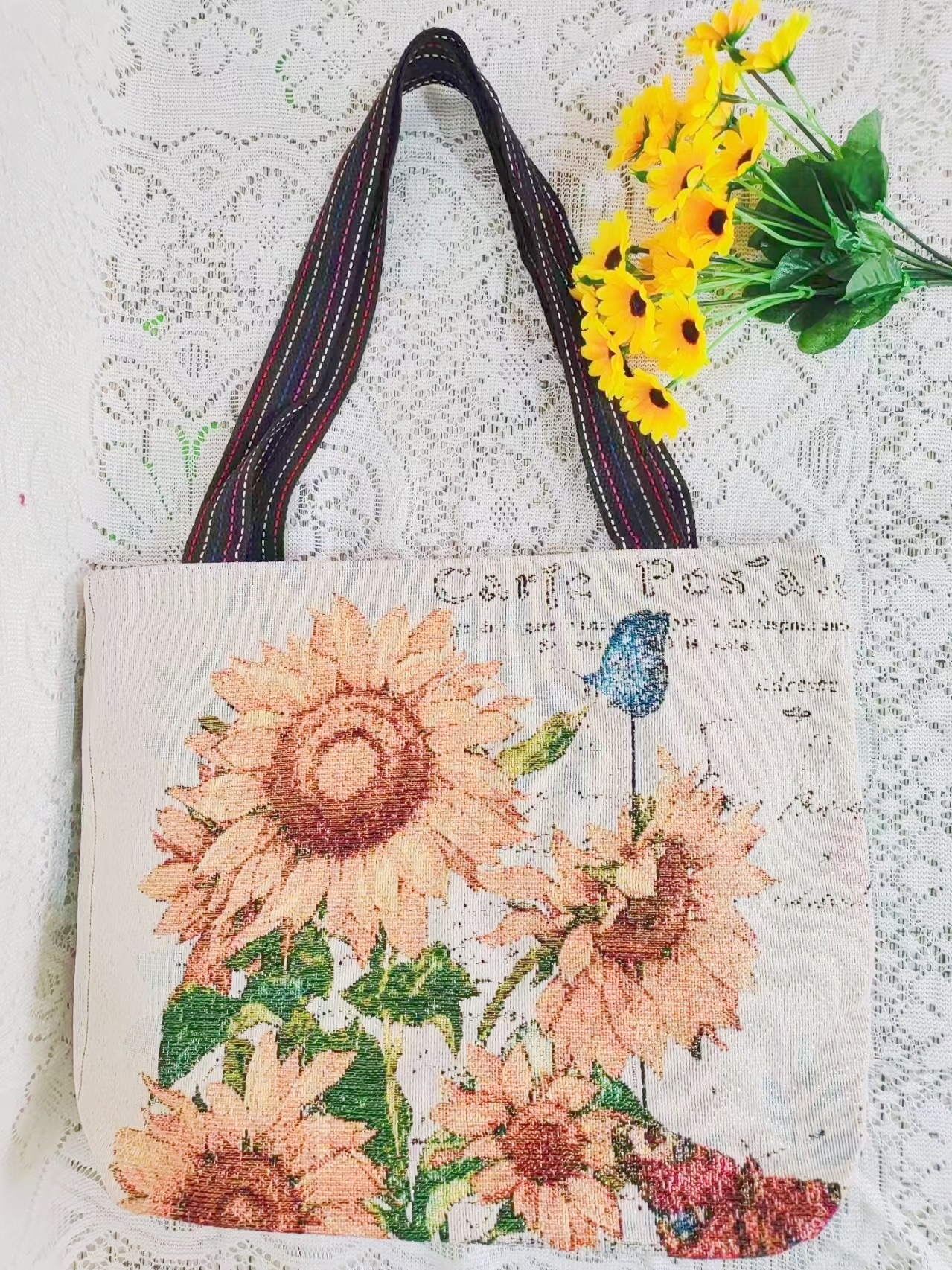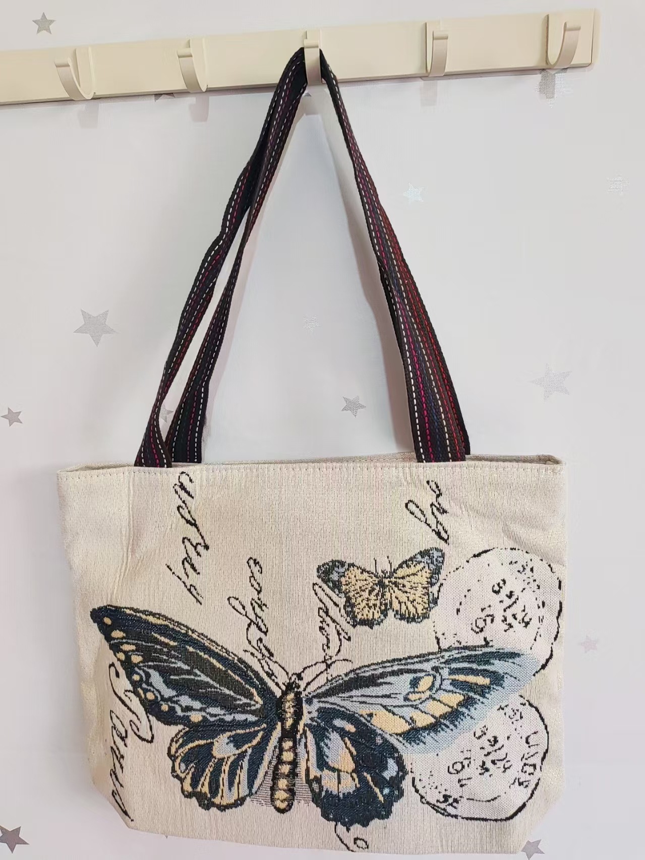 Tas bahu gaya etnik, tas kanvas sedang, dua sisi, sabuk hewan bordir, tas bahu sutra emas, tas perjalanan indah Thailand