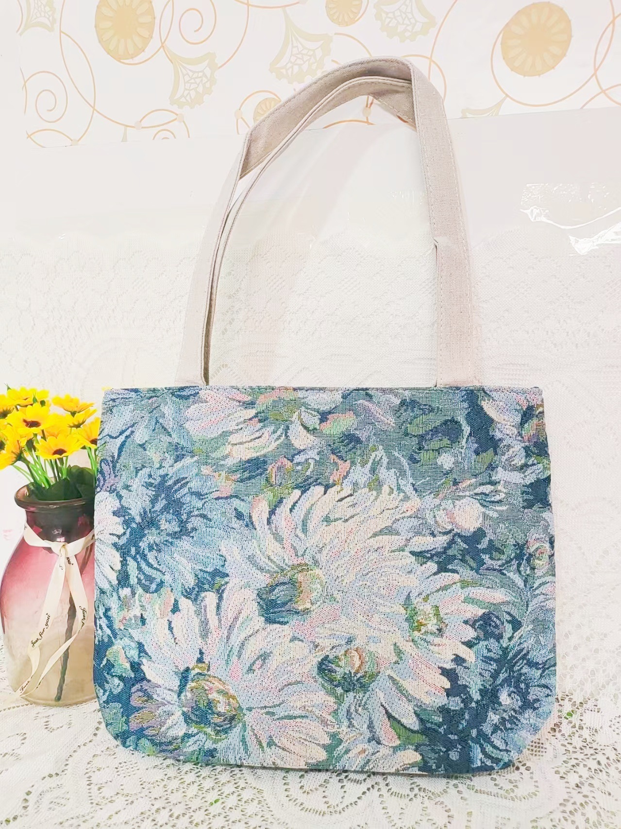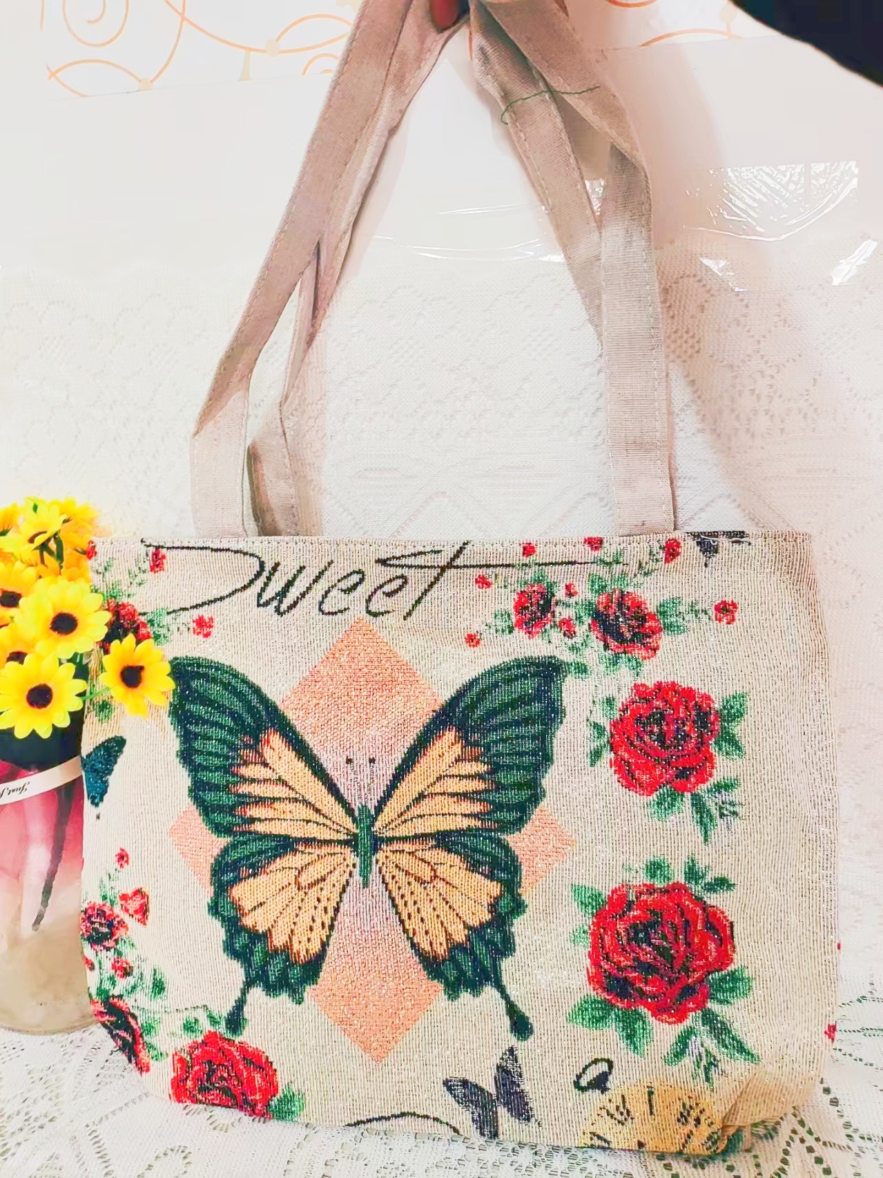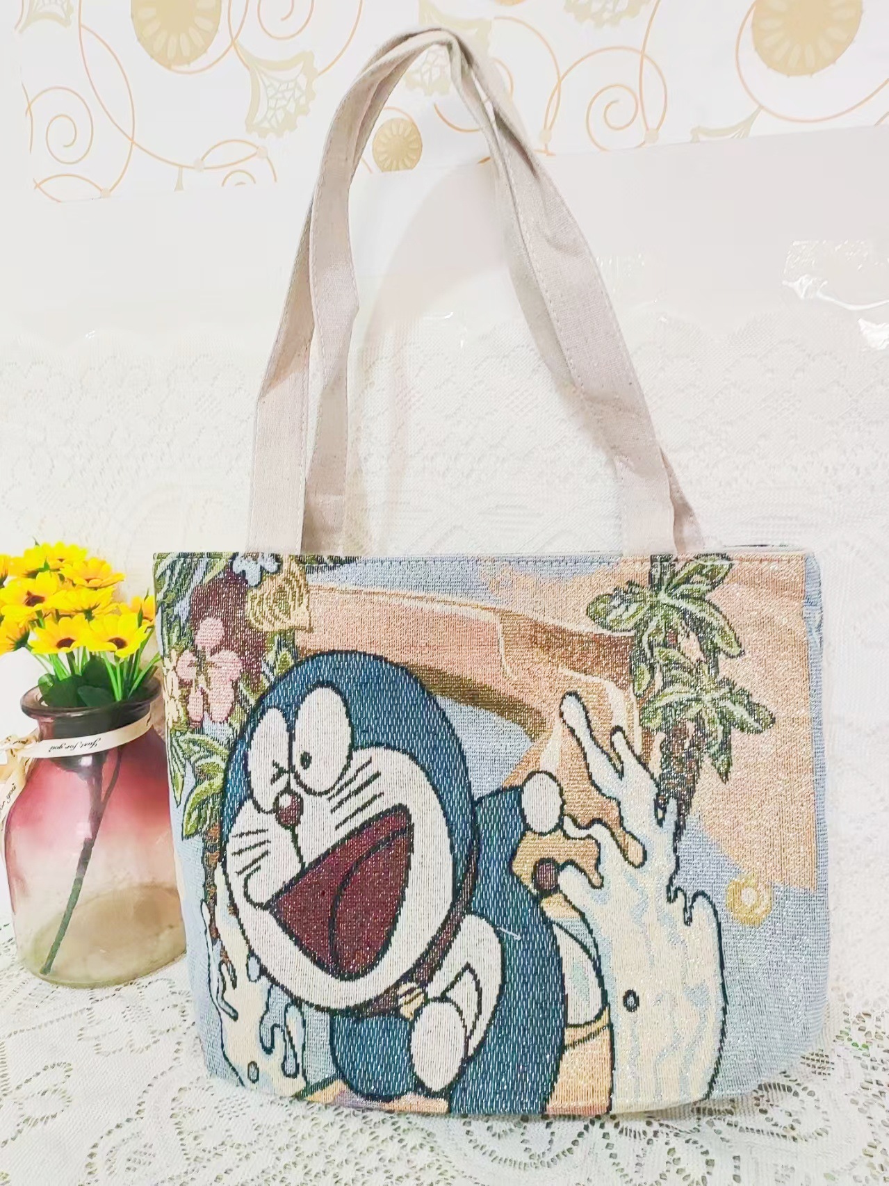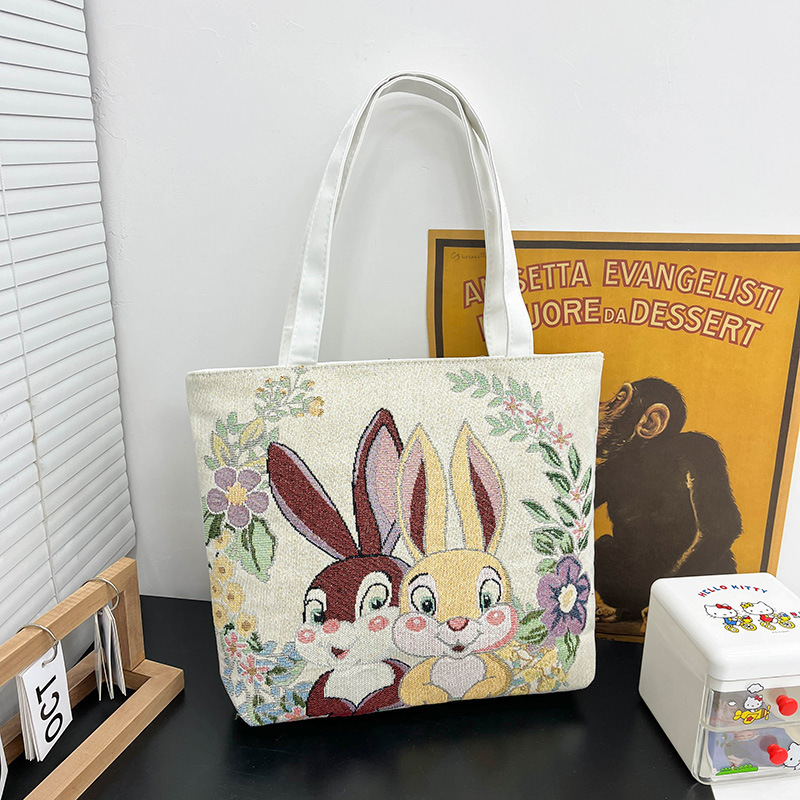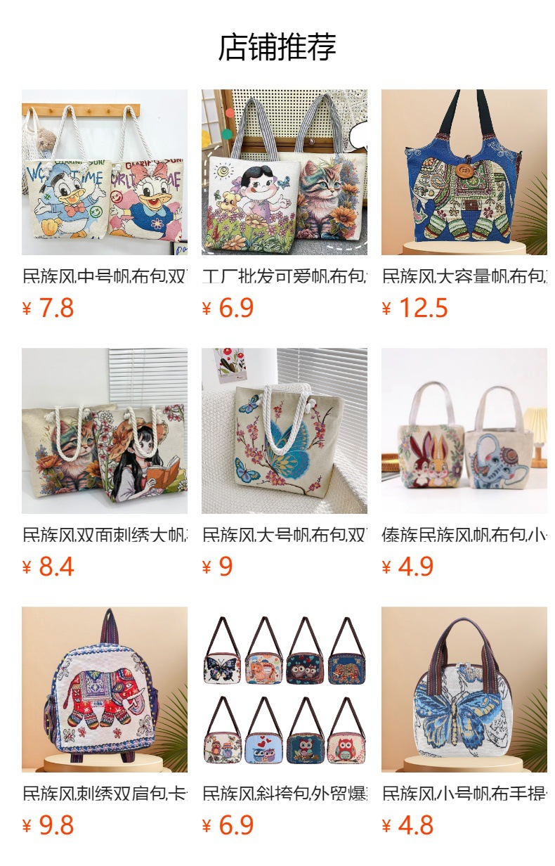 Tas bahu gaya etnik, tas kanvas sedang, dua sisi, sabuk hewan bordir, tas bahu sutra emas, tas perjalanan indah Thailand