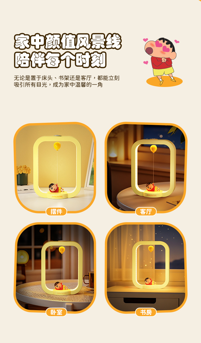 Crayon Shin-chan Confession Balon Cahaya Malam Magnetic Levitasi Kreatif Lampu Suasana di Kepala Tempat Tidur Kamar Tidur Kartun Hadiah Natal