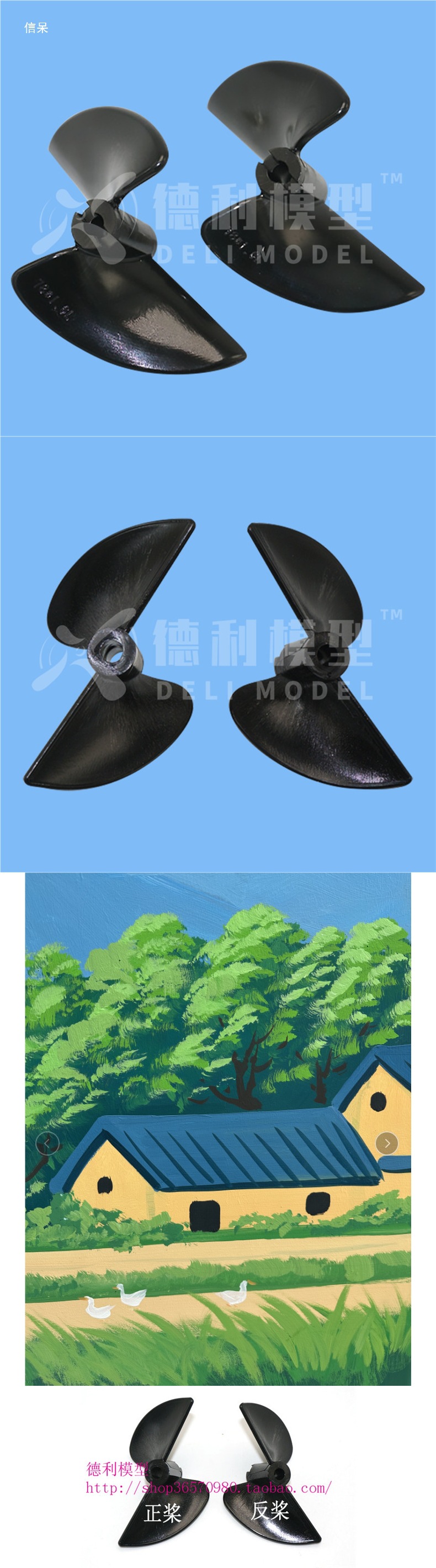 船模二叶正反螺旋桨D70*P1.4二叶半浸船桨船桨黑色亮光固定翼女孩