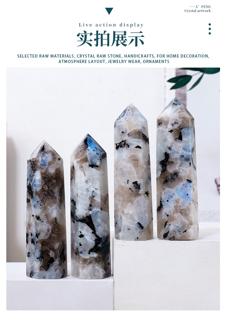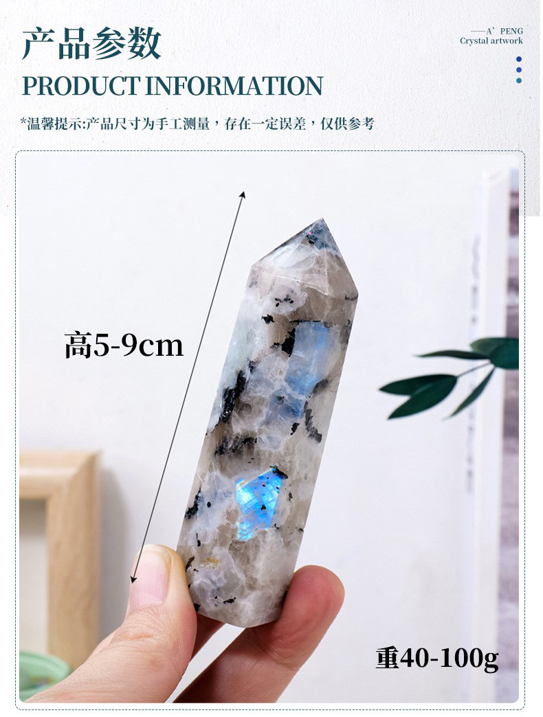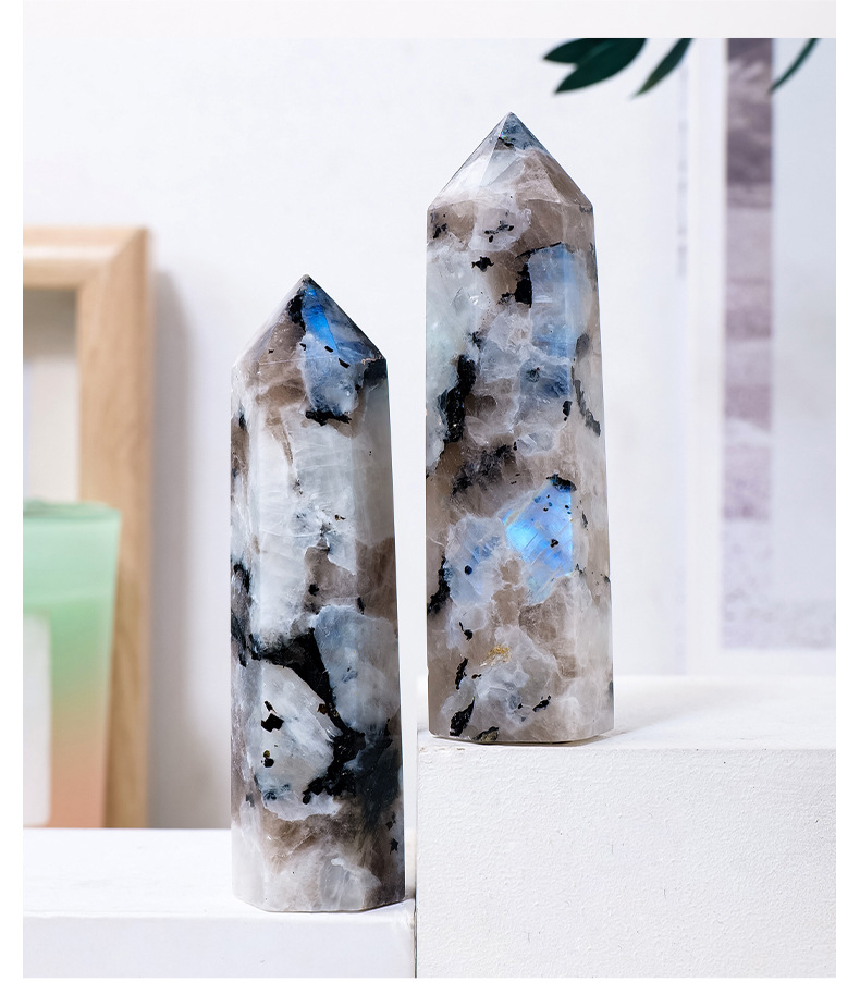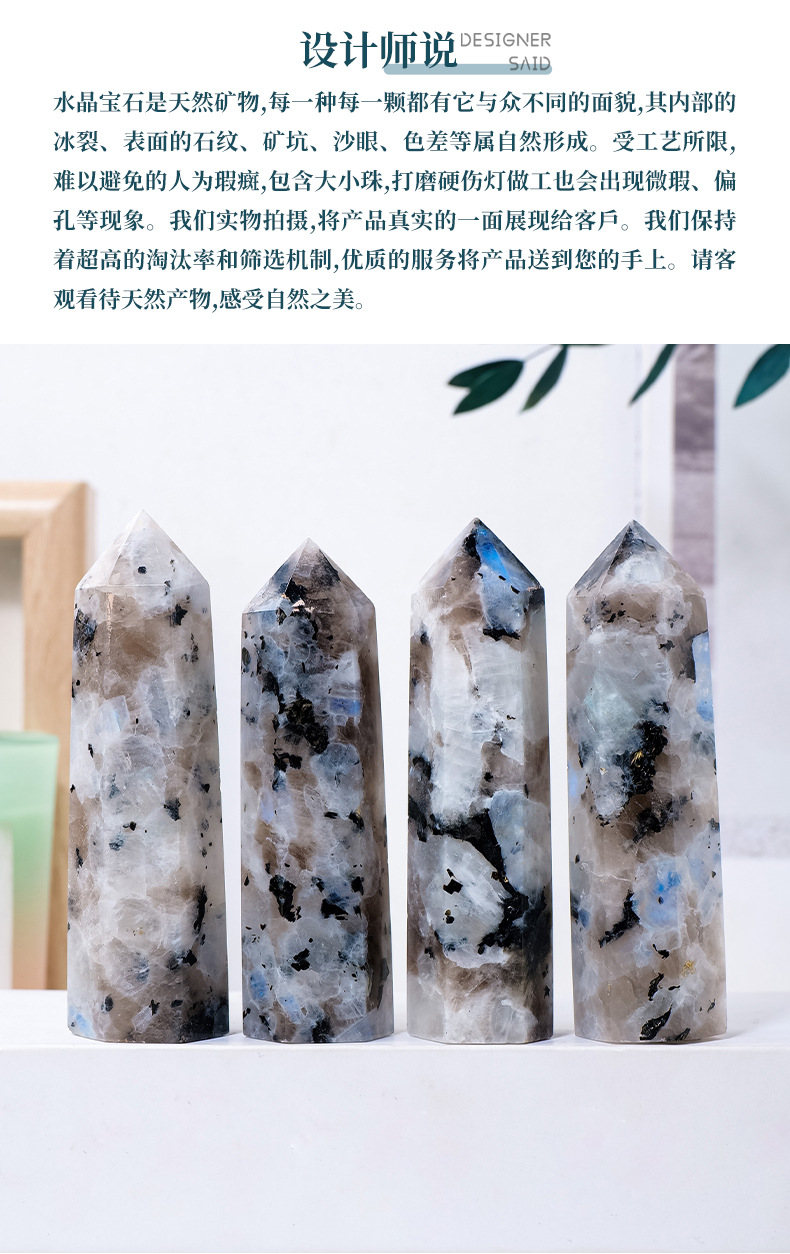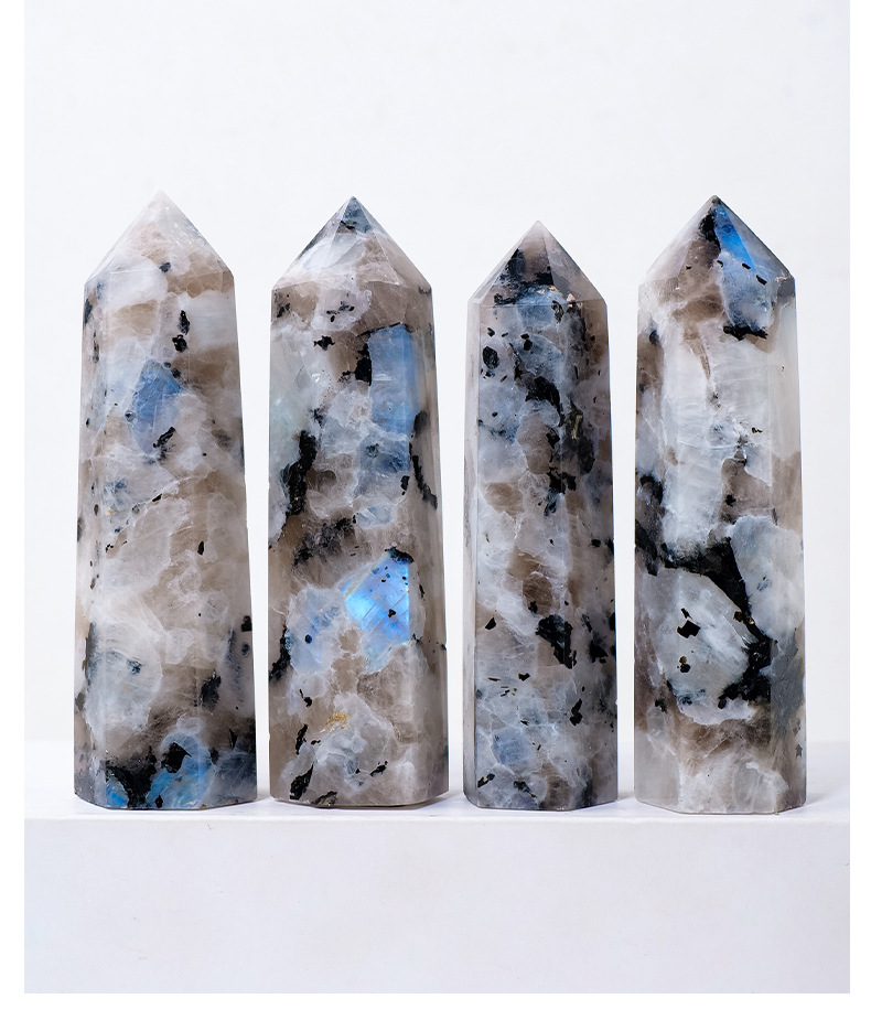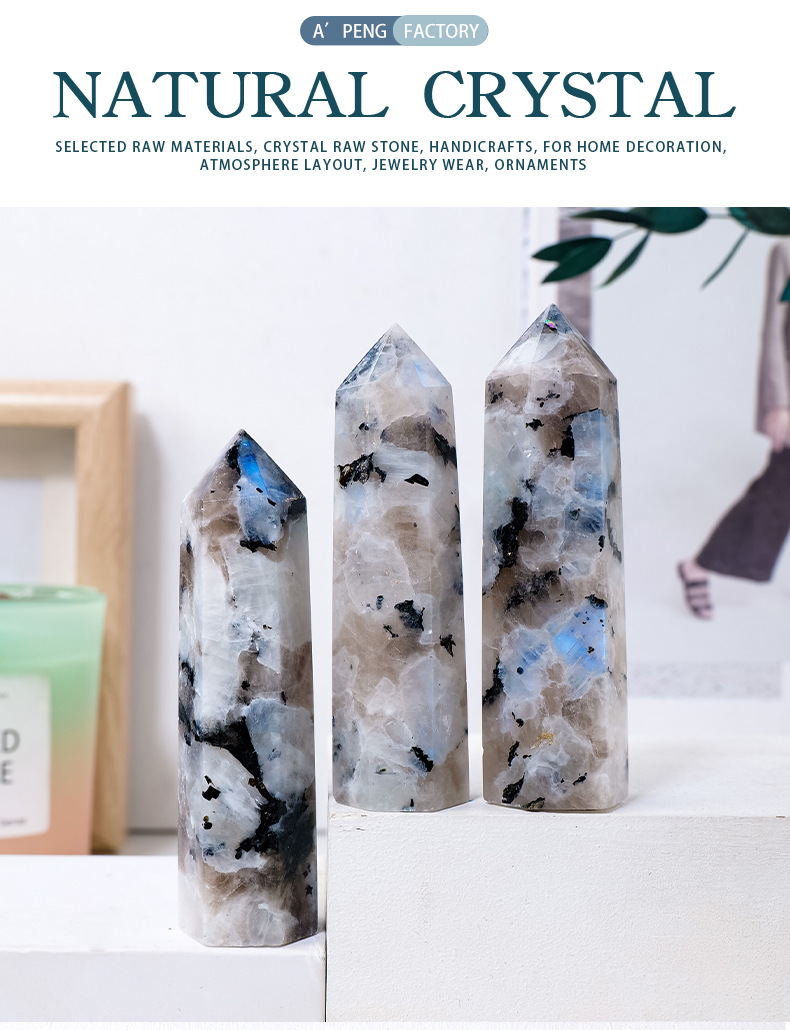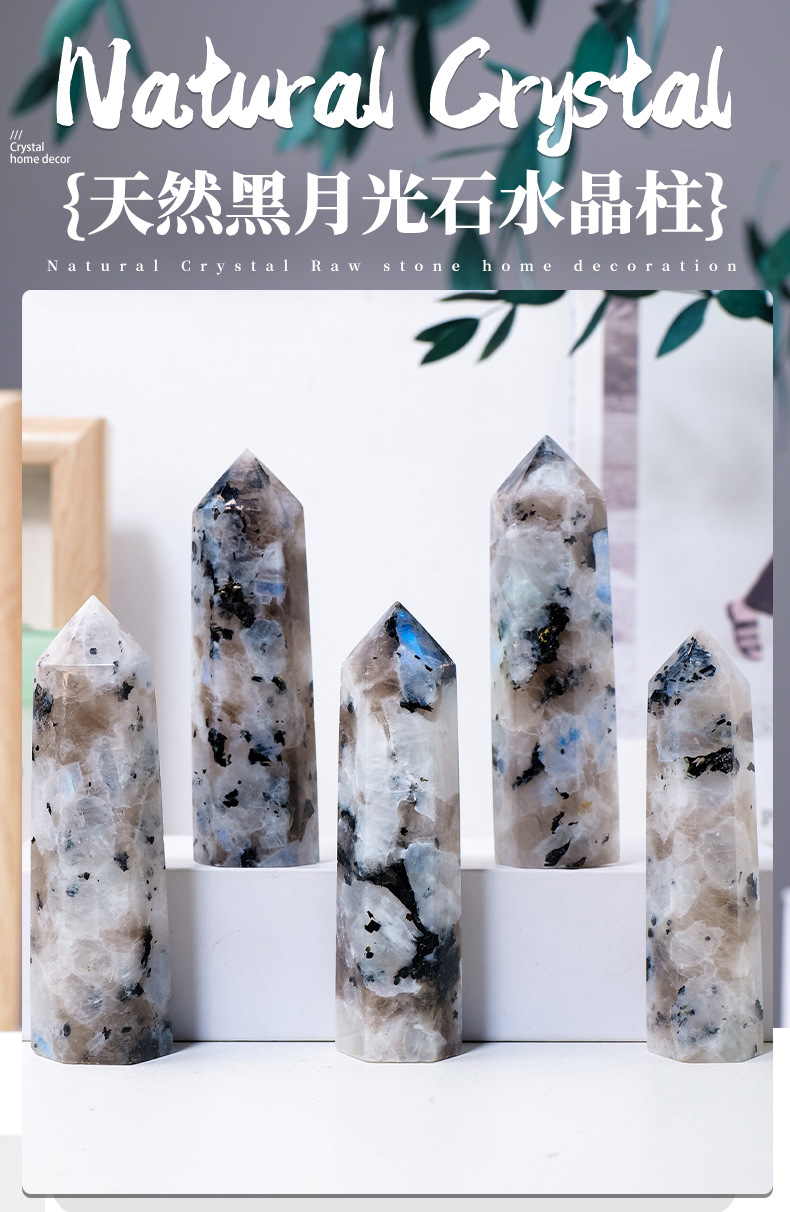 Kristal Alam batu bulan heksagonal prisma hitam abu-abu batu bulan batu mentah dipoles tunggal kolom runcing kolom kristal labradorite grosir