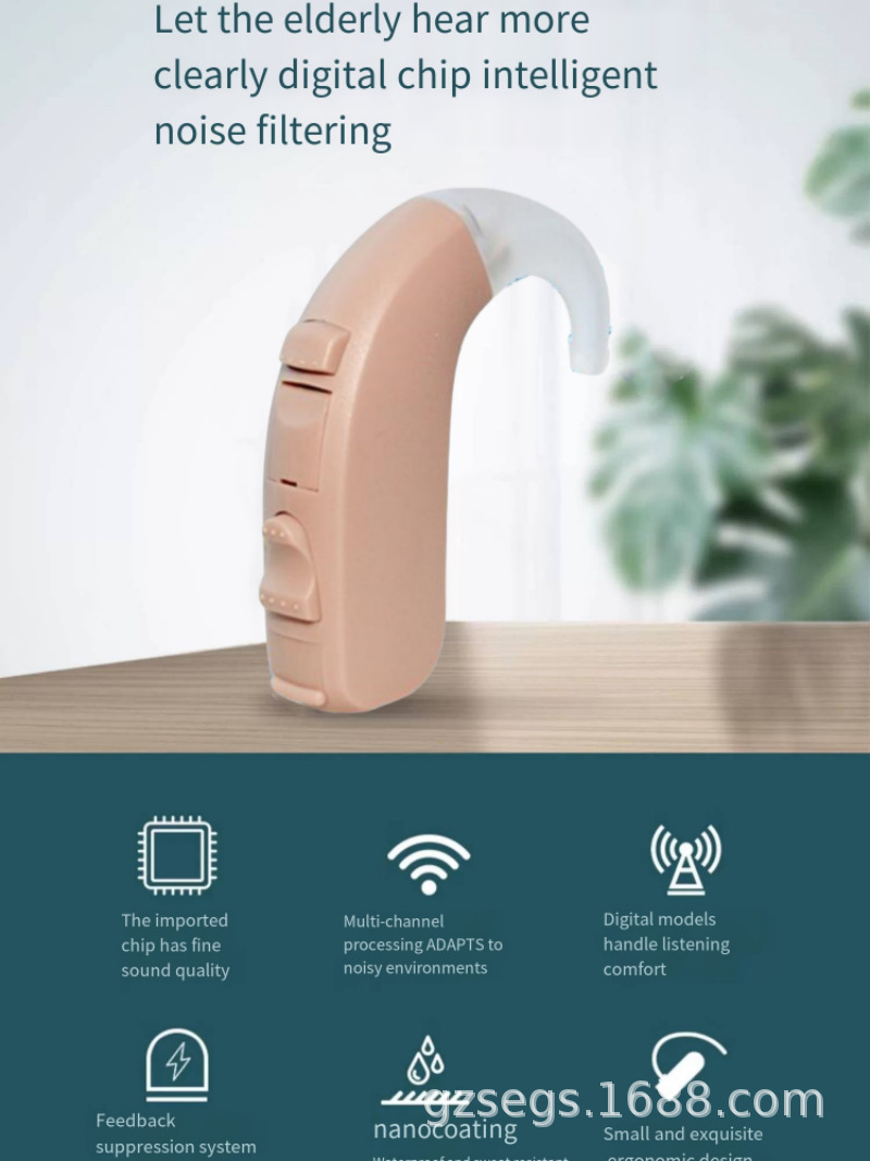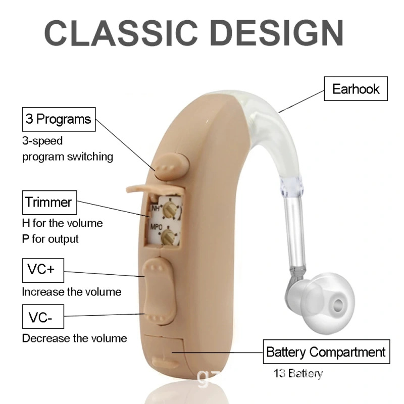 Alat bantu dengar Feige lintas batas di belakang telinga untuk lansia dengan gangguan pendengaran, alat bantu dengar tak terlihat berdaya tinggi