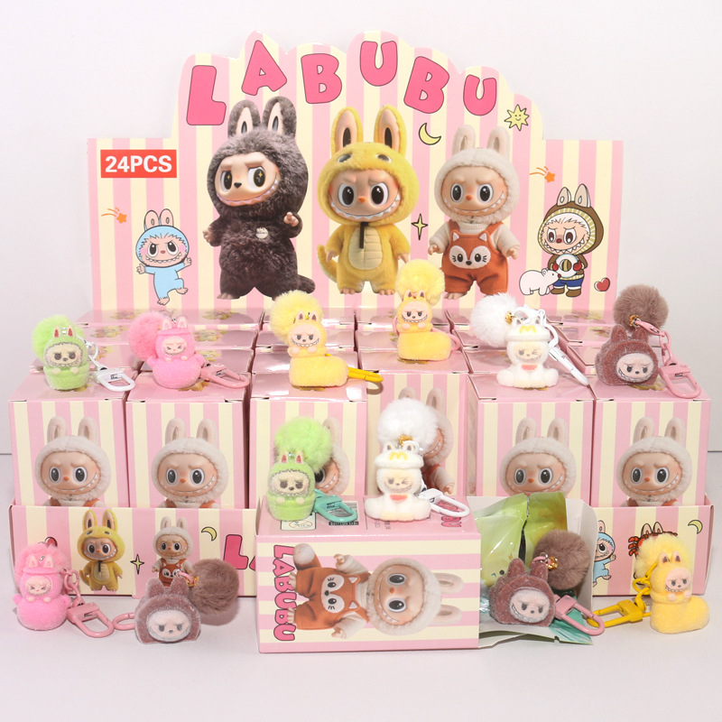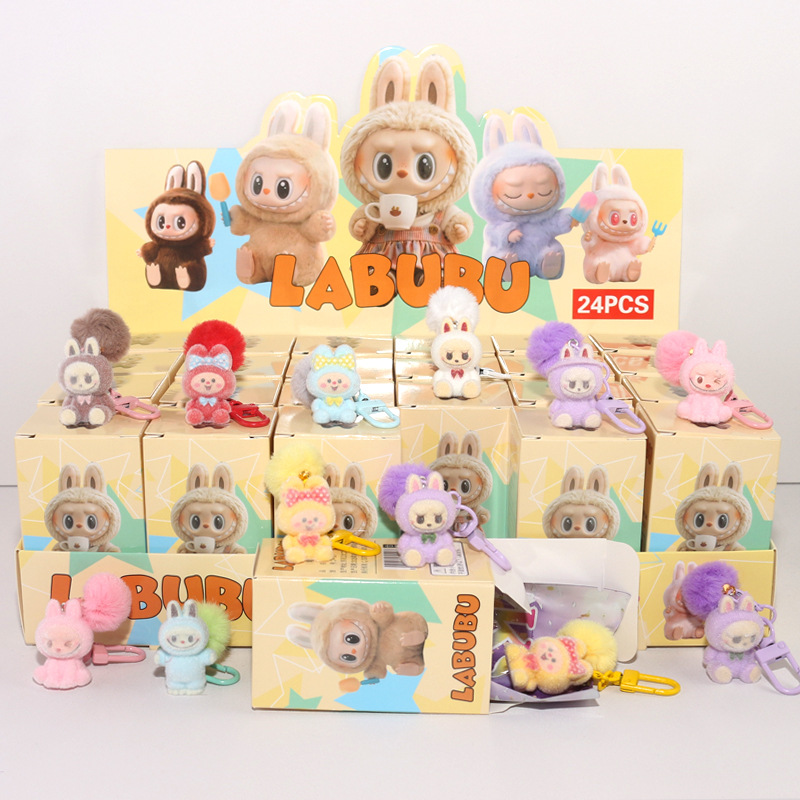 泡泡玛特24入盲盒拉布布树脂植绒公仔萌粒可乐手办潮玩新款跨境萌