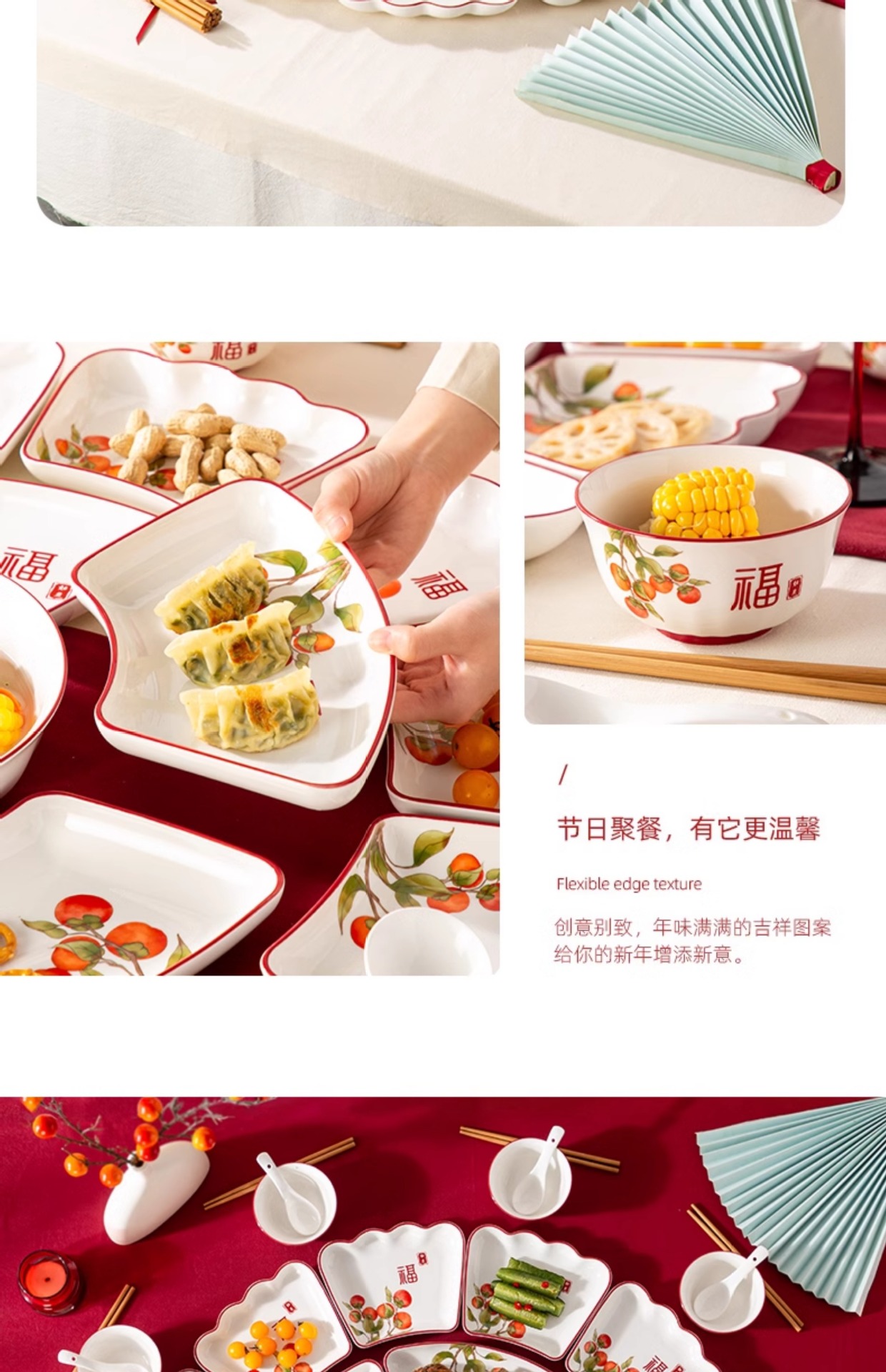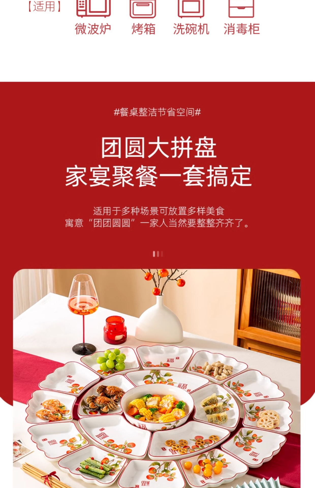 Piring Peralatan Makan Malam Reuni Model Baru 2025 Piring Meja Bundar Keluarga Malam Tahun Baru Piring Piring Piring Kombinasi Piring Piring