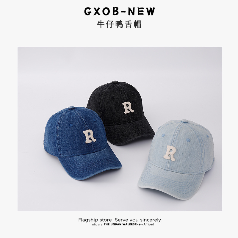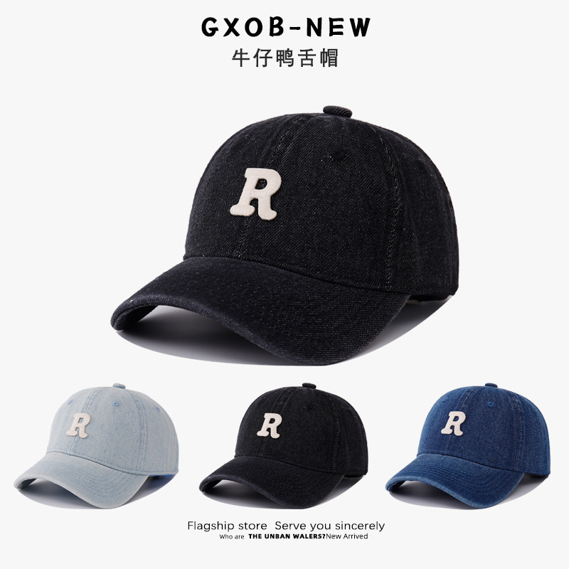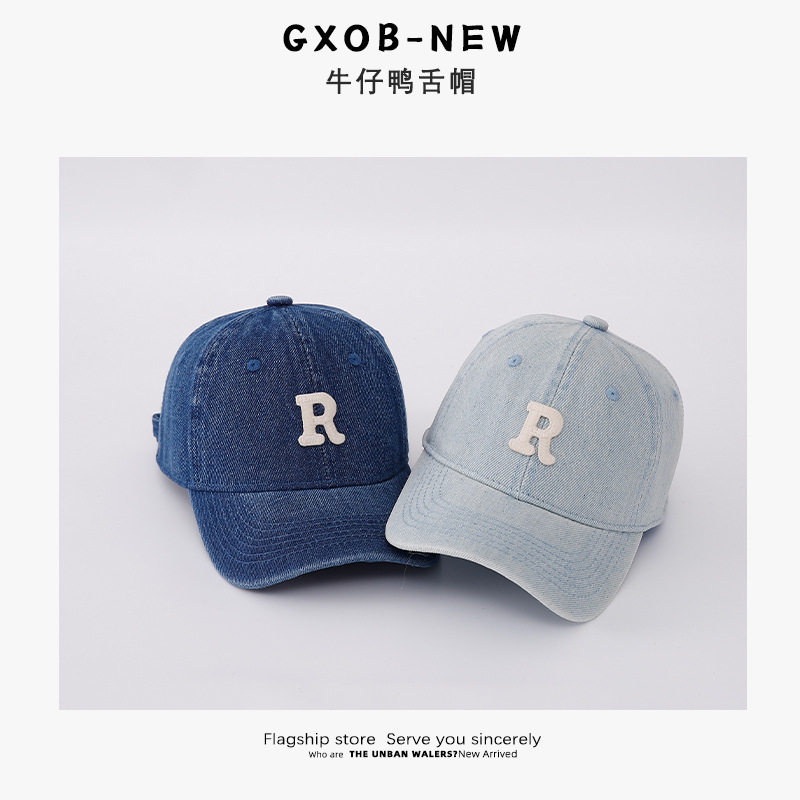 宝宝鸭舌帽子牛仔R字母遮阳帽春秋季新款舒适男女童防晒棒球帽子