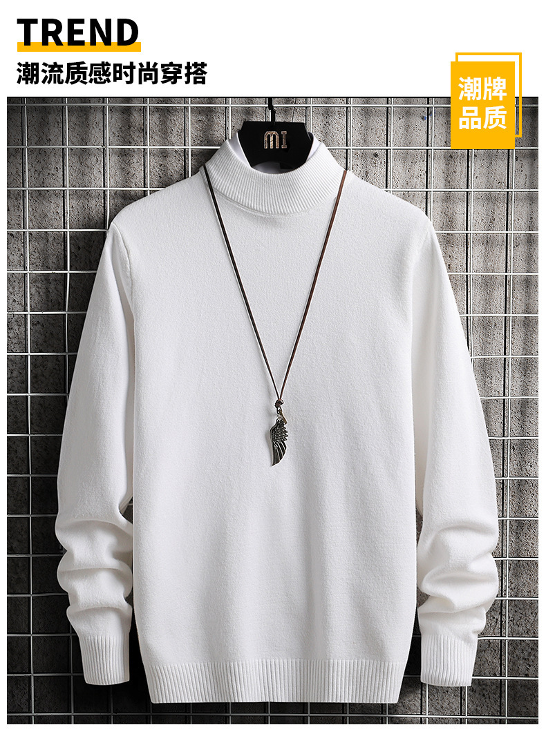 Pakaian Rajut Setengah Turtleneck untuk Pria 2024 Musim Gugur dan Musim Dingin Gaya Korea Baru Slim Fit Berlapis Bulu Pemuda Bottoming Pakaian Rajut Atasan