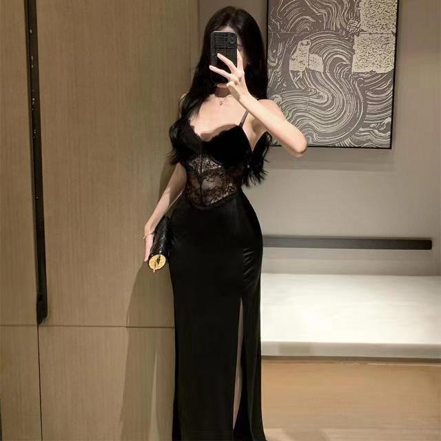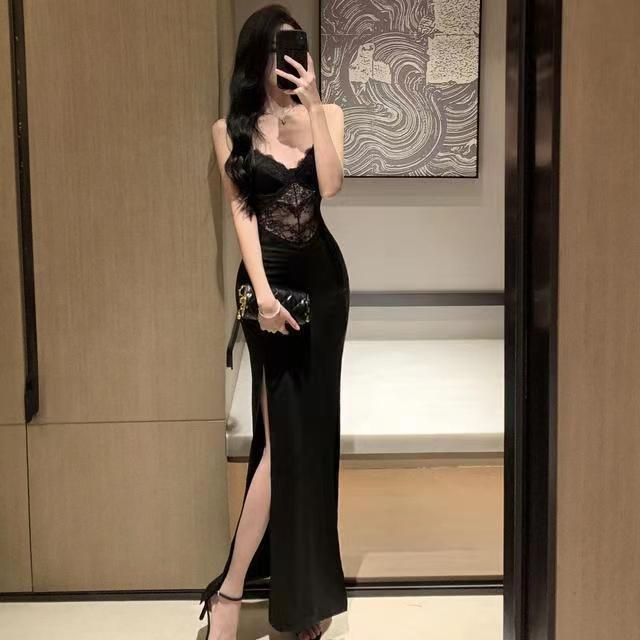 Rok selempang ketat pinggang, gaun rok pinggul ketat renda hitam jahitan renda Semua cocok