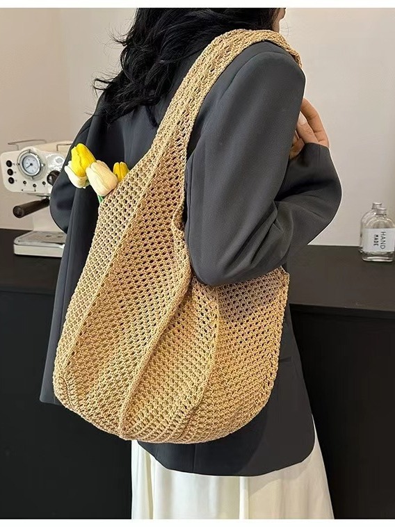 Tas Wanita Tenun Model Baru Populer Musim Panas Tas Anyaman Jinjing Tas Jaring Bahu Tunggal Gaya Barat Modis Perjalanan Pantai