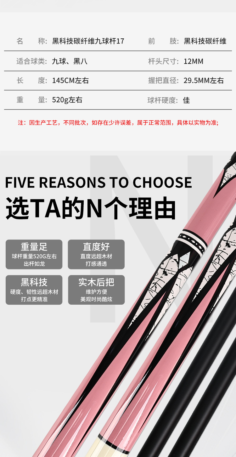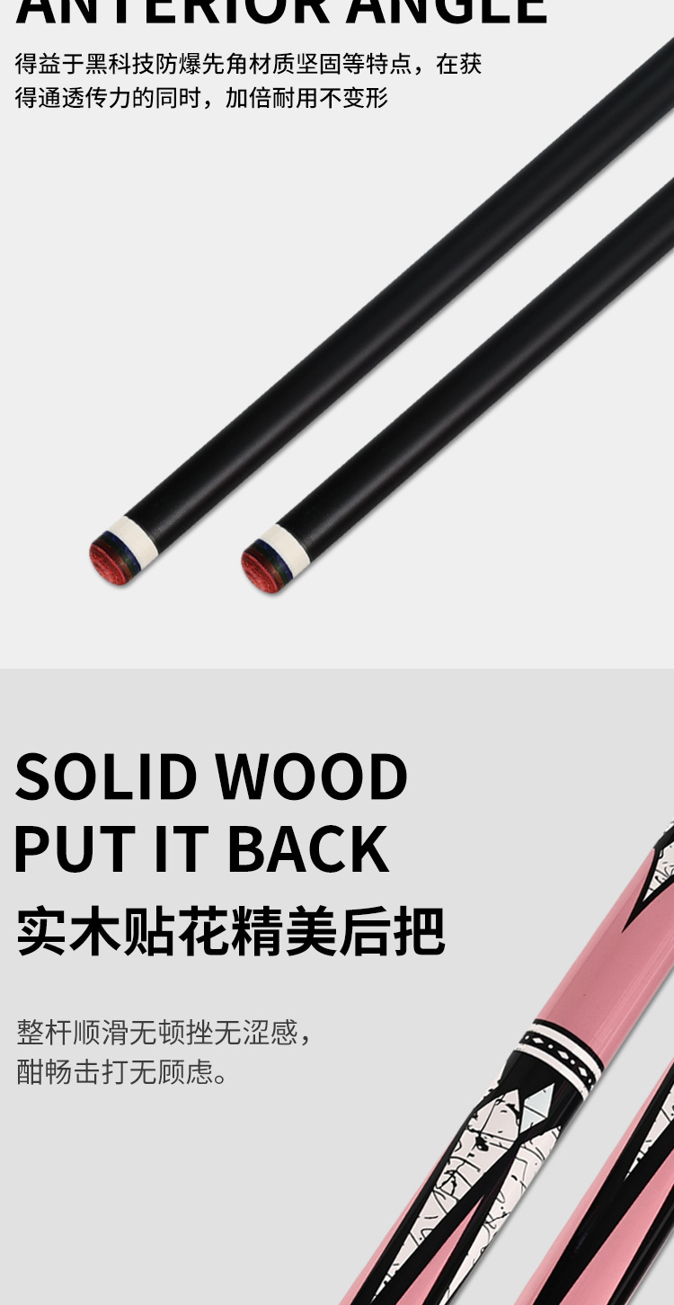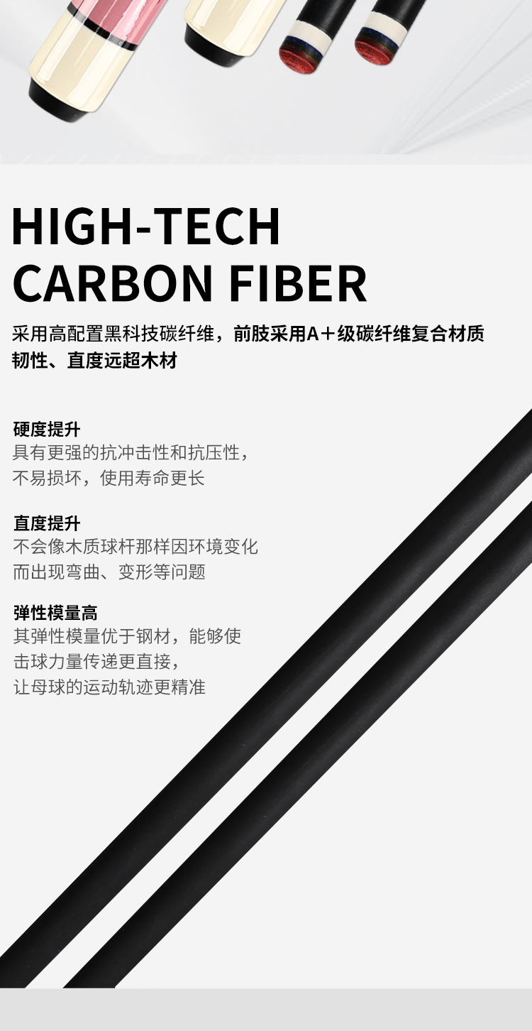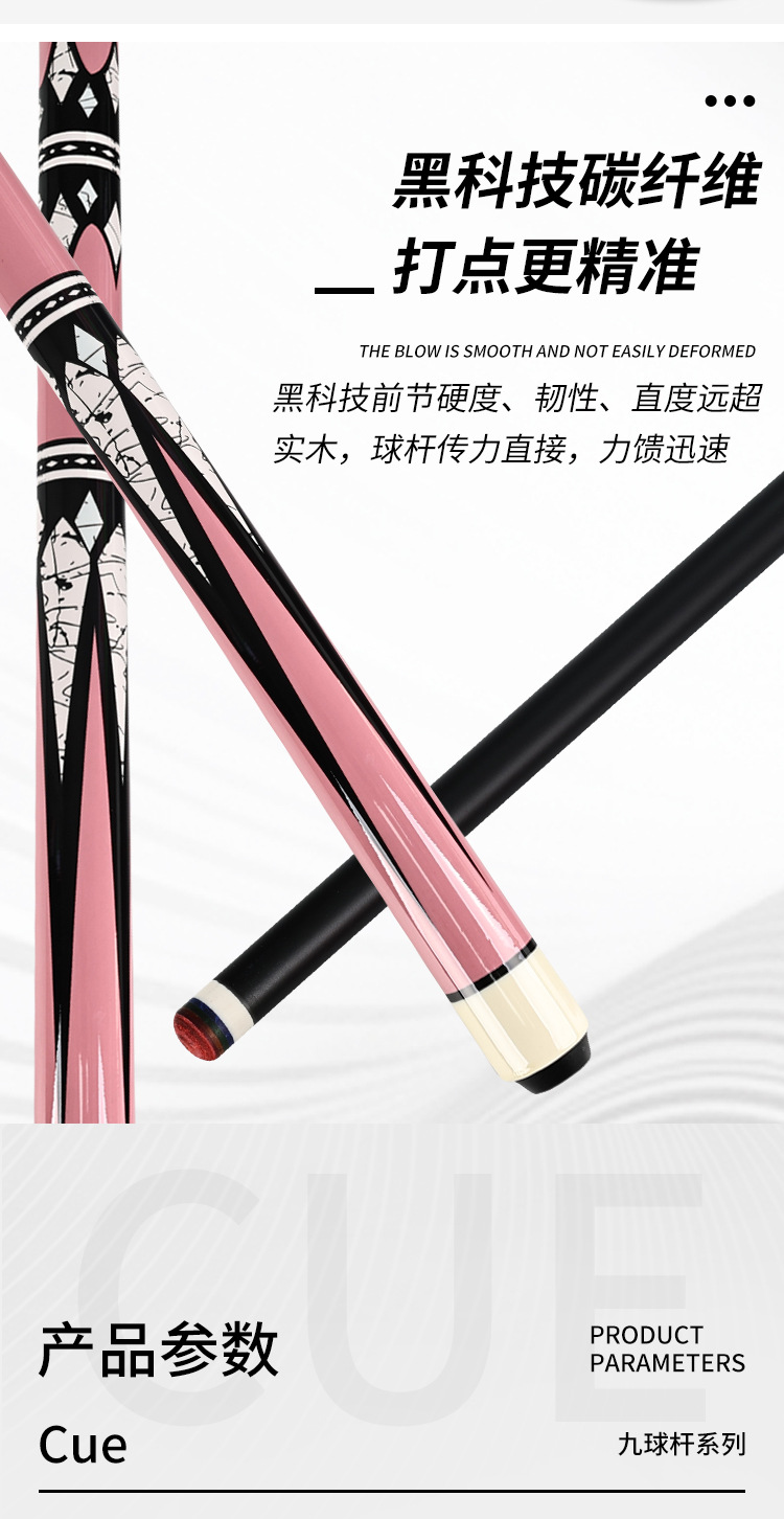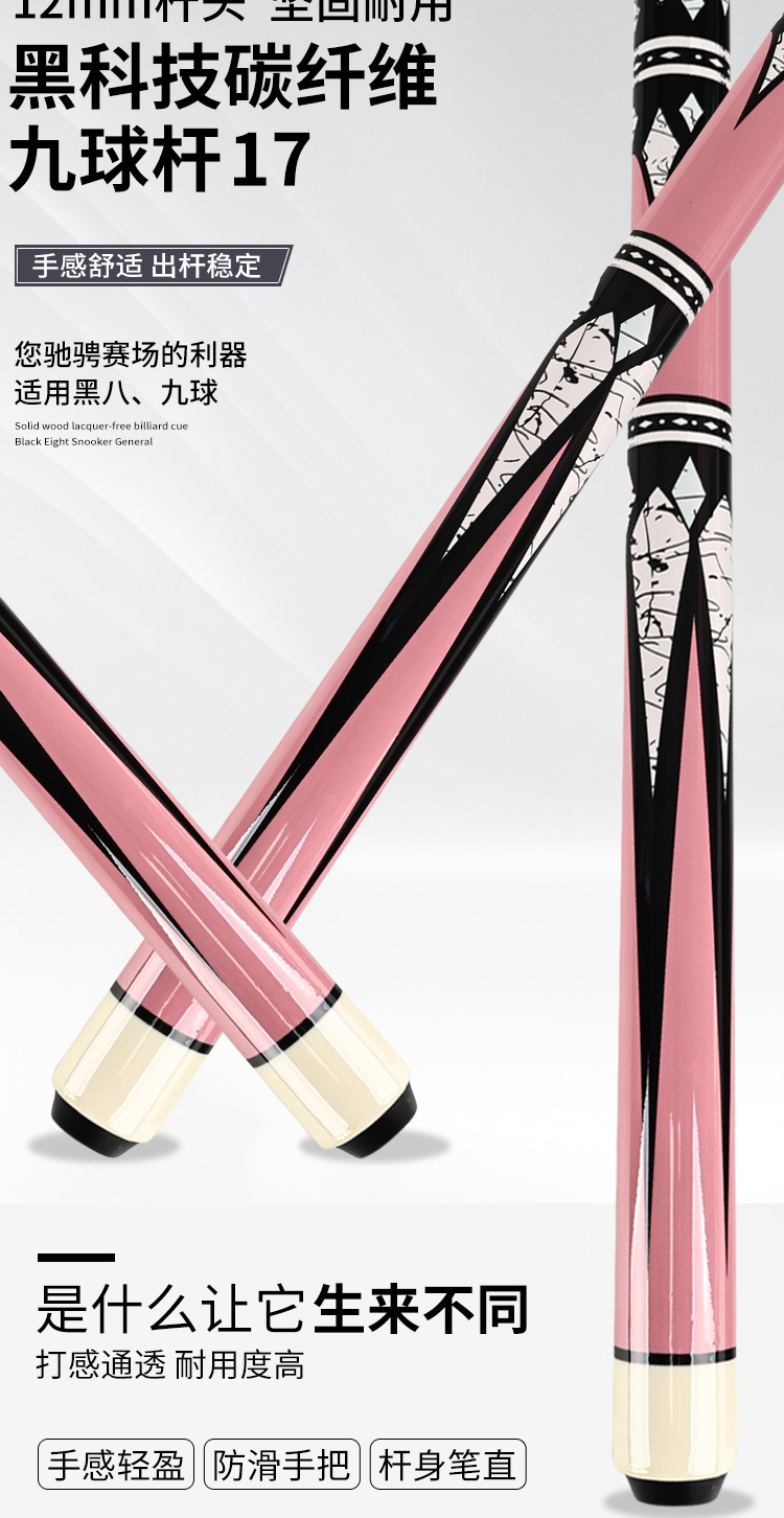 Serat Karbon Teknologi Hitam Tongkat Anggota Tongkat Cina Tongkat Biliar Tongkat Kepala Merah Muda untuk Anak Perempuan