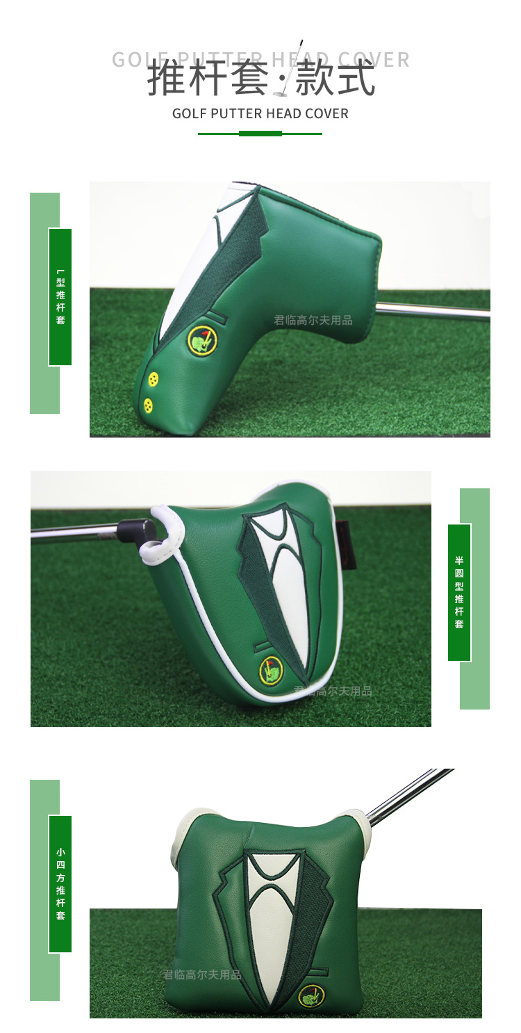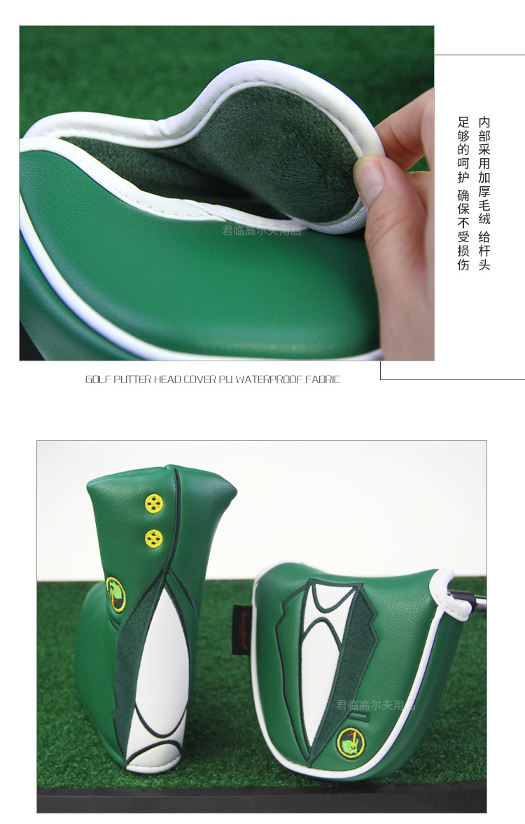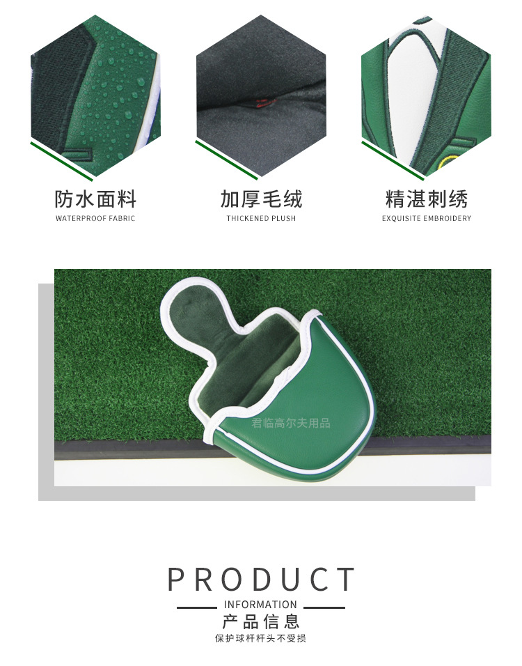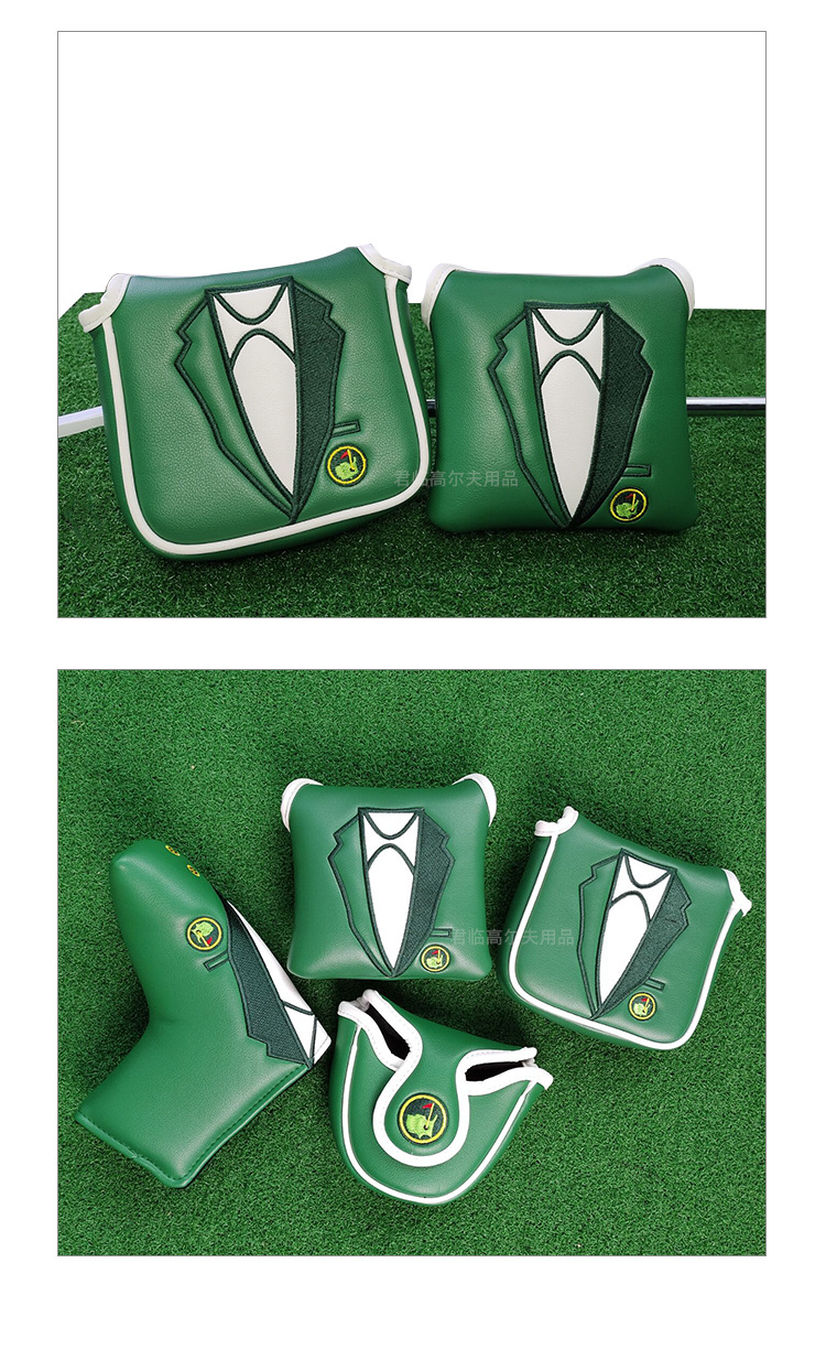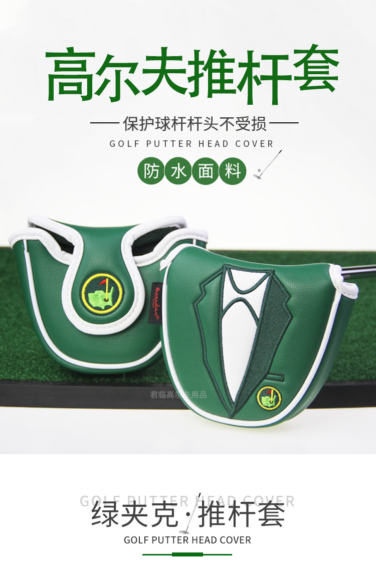 Penutup putter Golf jaket hijau bordir Klub pelindung berbentuk L setengah lingkaran ukuran persegi PU gesper magnetik tahan air
