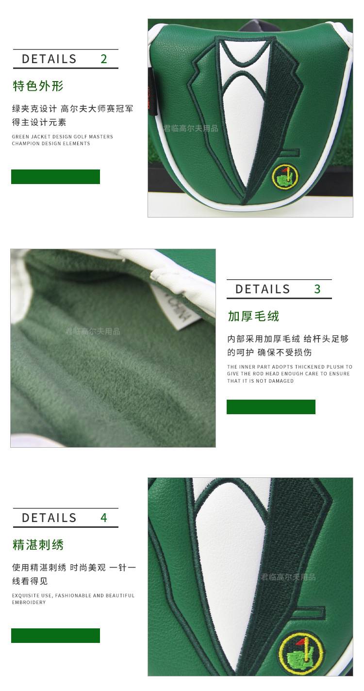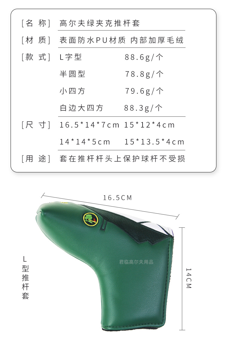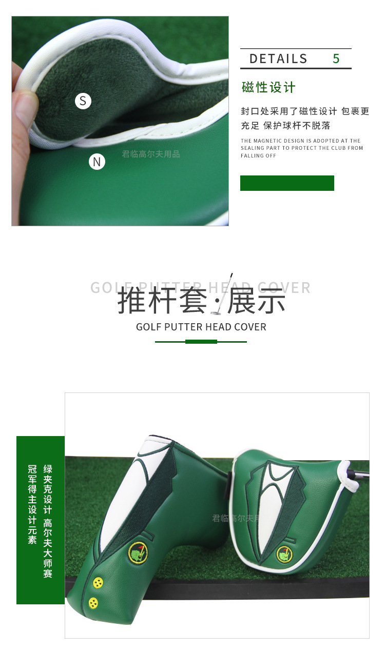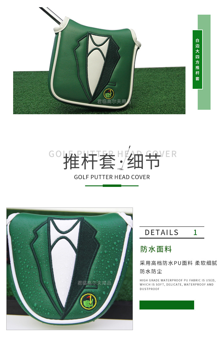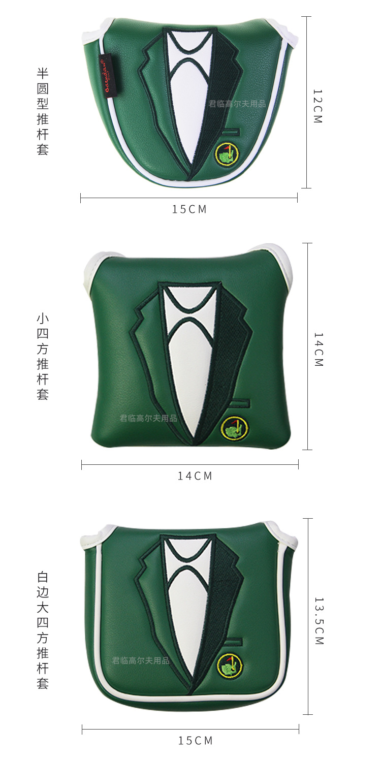 Penutup putter Golf jaket hijau bordir Klub pelindung berbentuk L setengah lingkaran ukuran persegi PU gesper magnetik tahan air