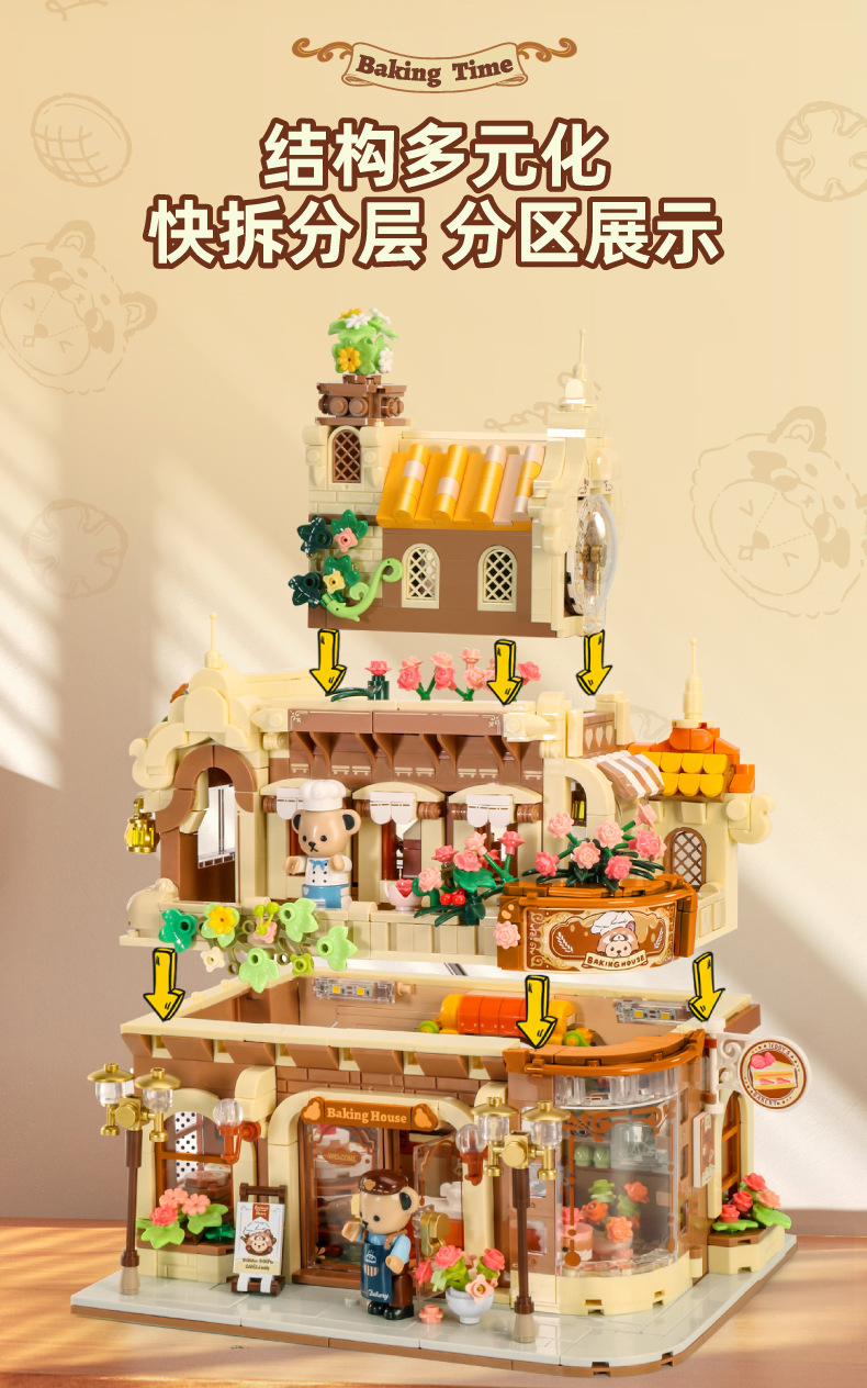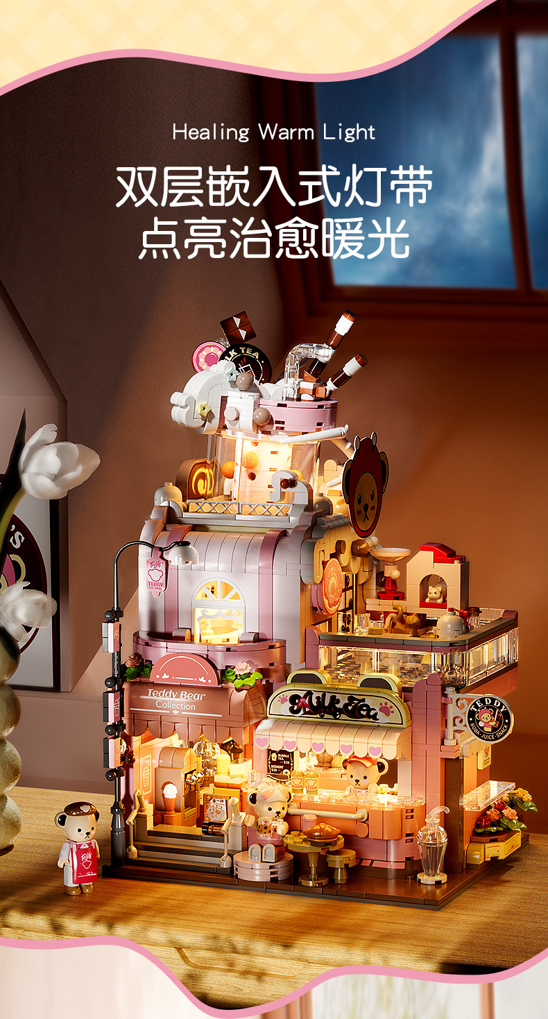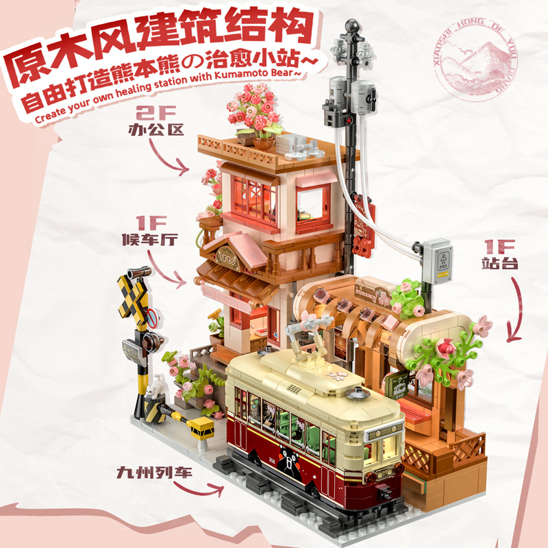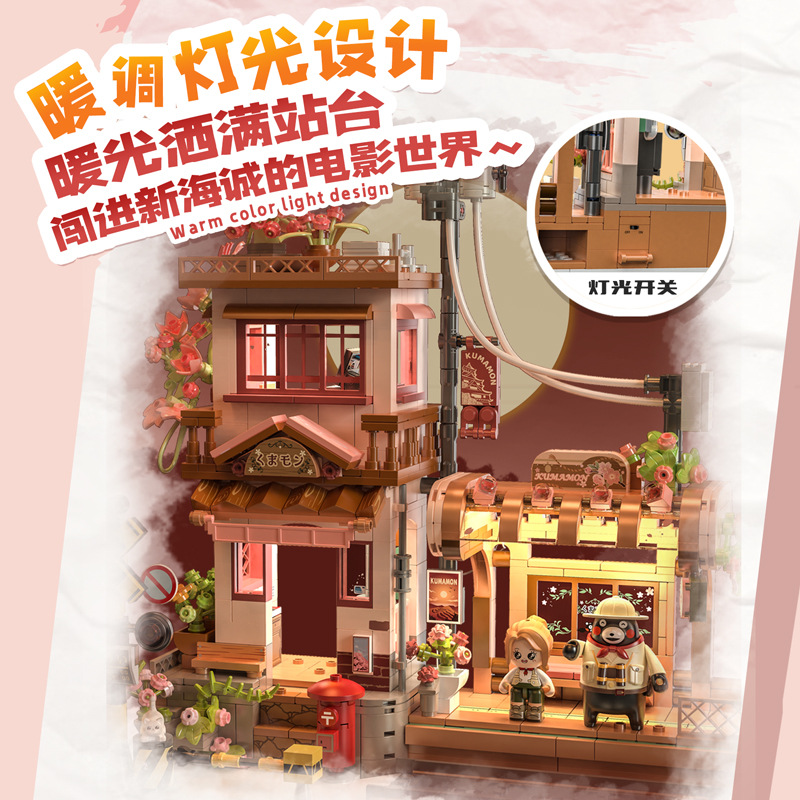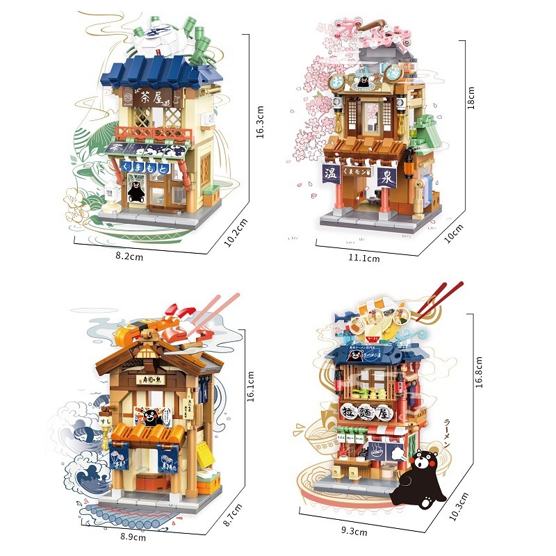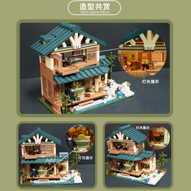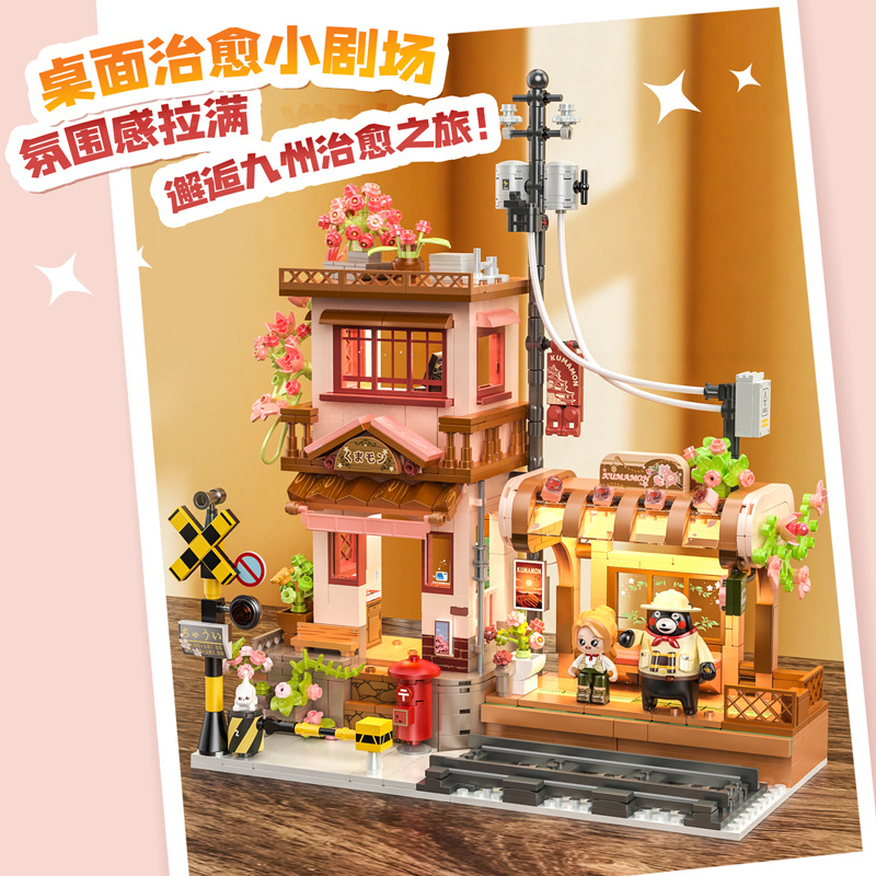 Jihu 881105 Kumamoto Boneka Beruang Blok Bangunan Jepang Pemandangan Jalan Rumah Mainan Trendi Anak Perempuan Ornamen Agen Detektif Lintas Batas