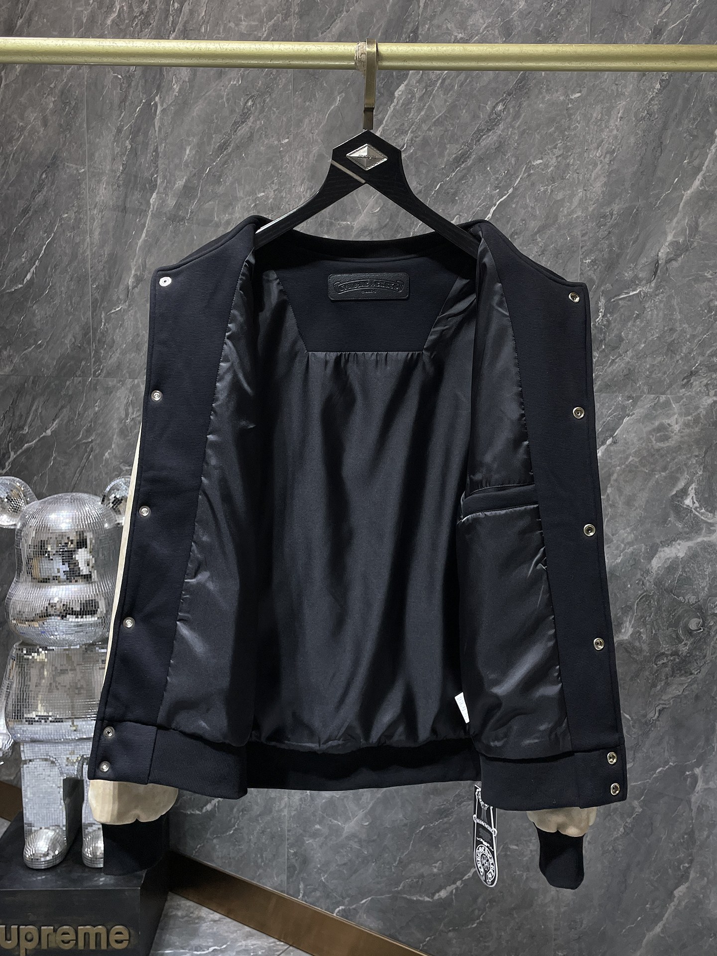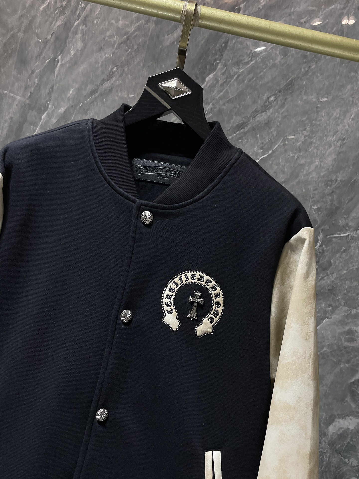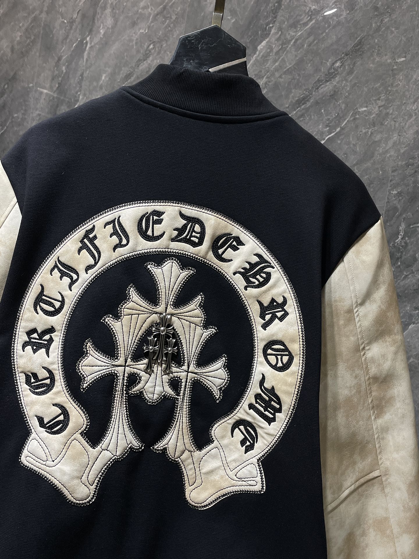 2024 Musim Gugur dan Musim Dingin Model Baru CH Sansekerta Silang Bulu Lengan Jahitan Kombinasi Model Sama Pria dan Wanita