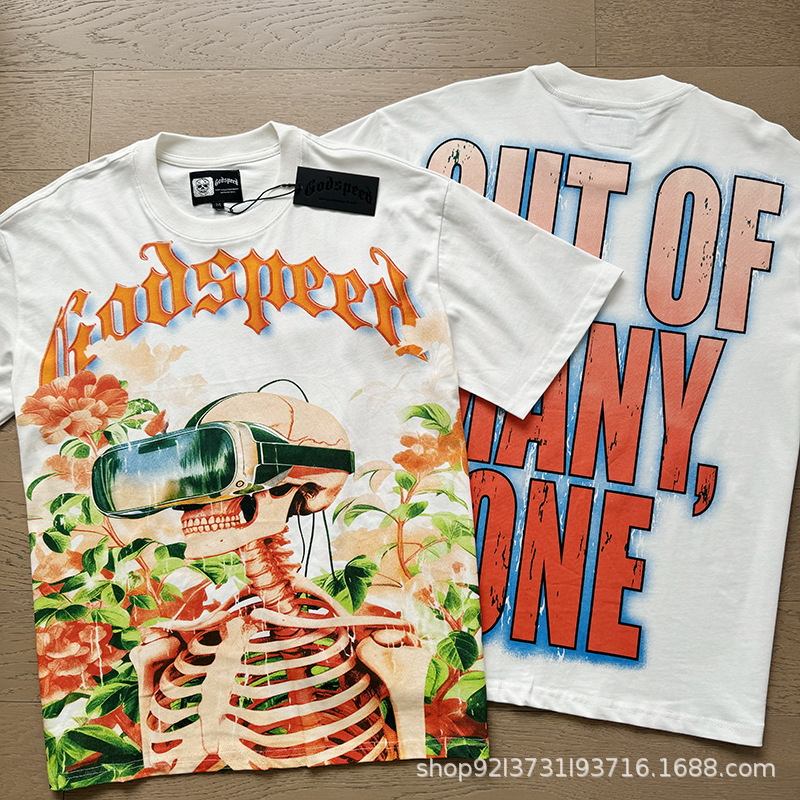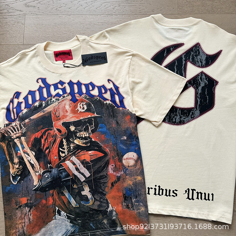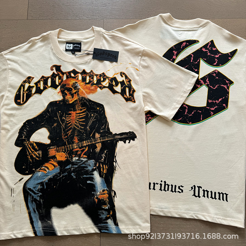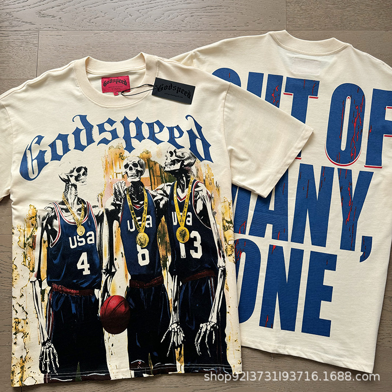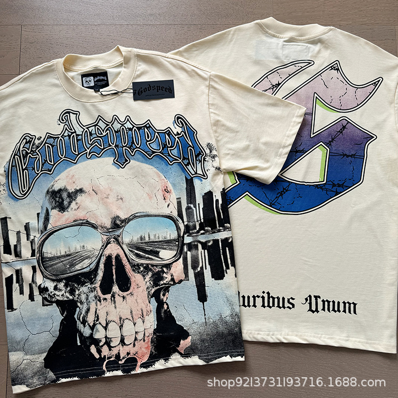 Kaus Lengan Pendek Reguler Basket Band Rock Tengkorak GD Tren Amerika Baru 2025ss untuk Pria dan Wanita Lintas Batas Lintas Batas