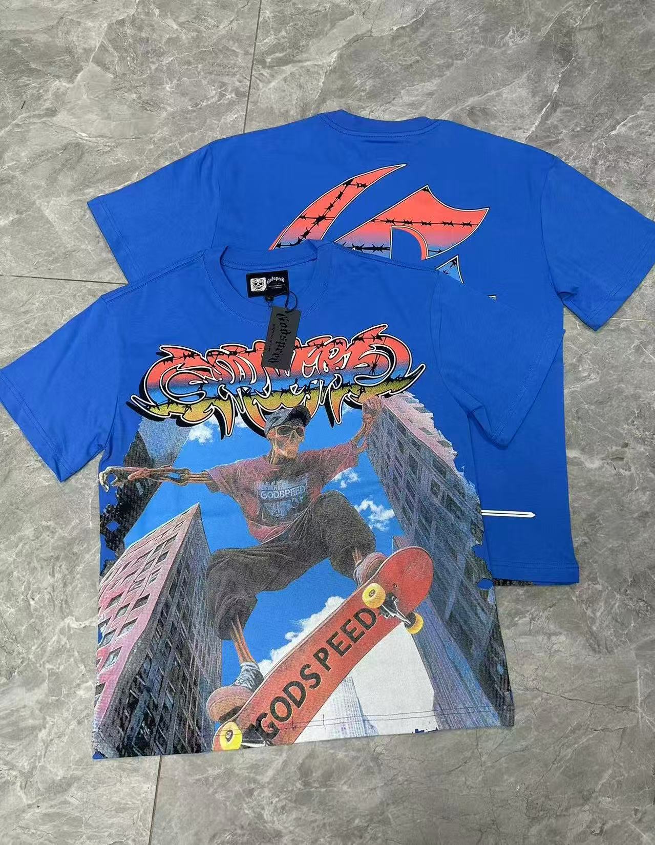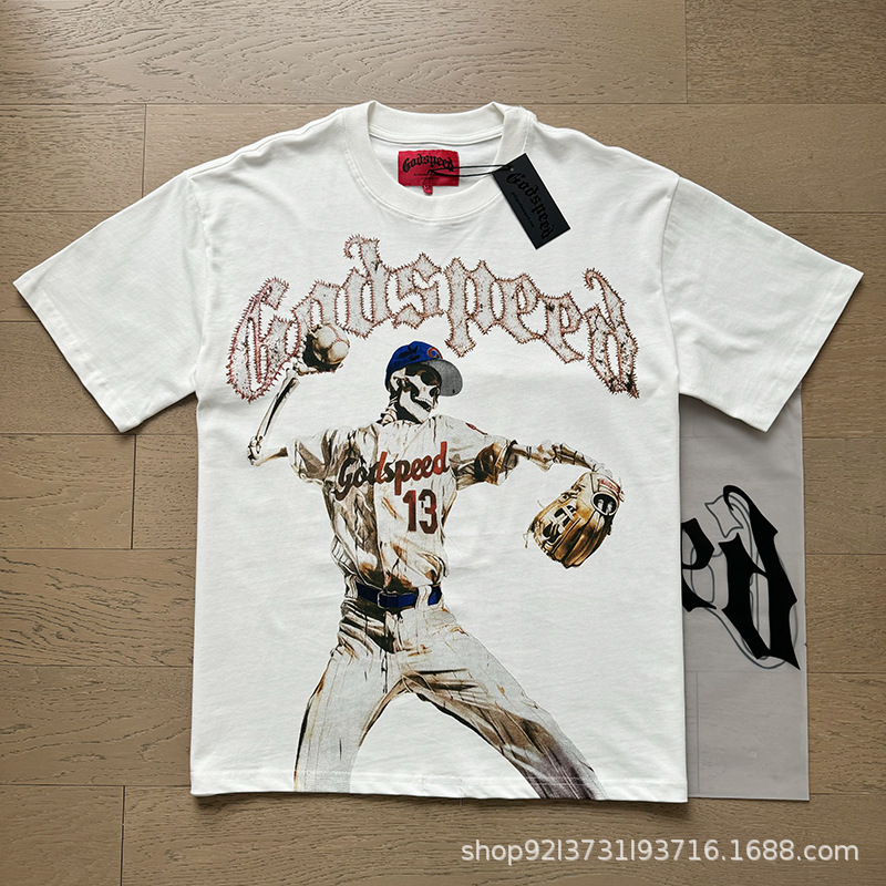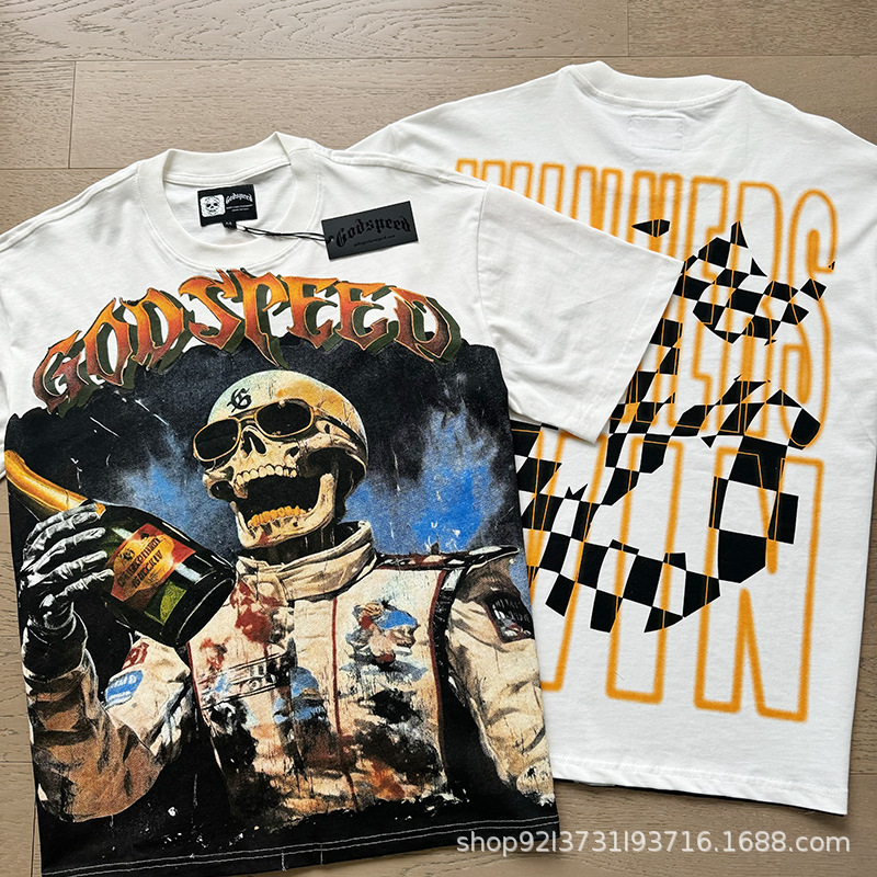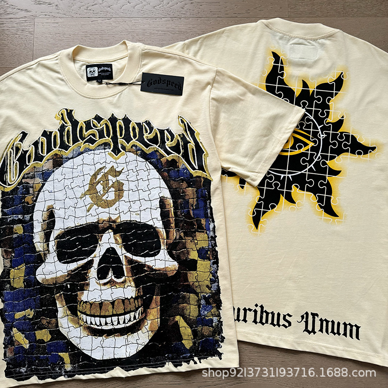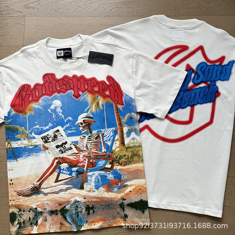 Kaus Lengan Pendek Reguler Basket Band Rock Tengkorak GD Tren Amerika Baru 2025ss untuk Pria dan Wanita Lintas Batas Lintas Batas