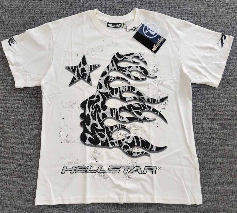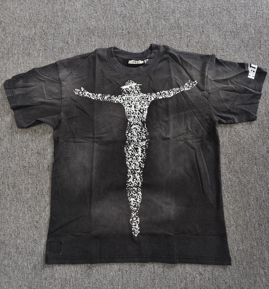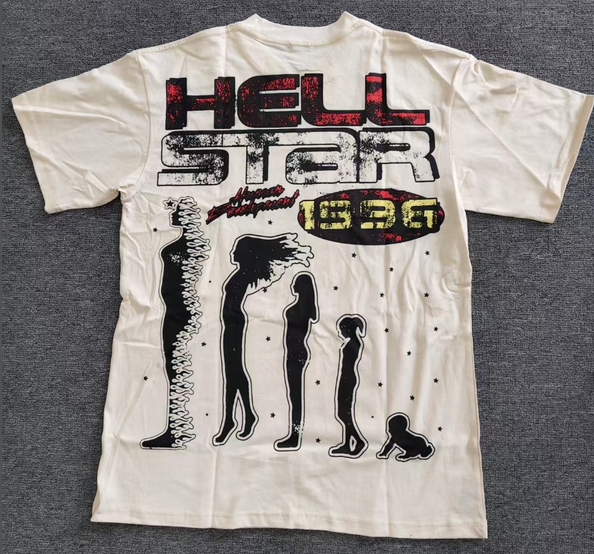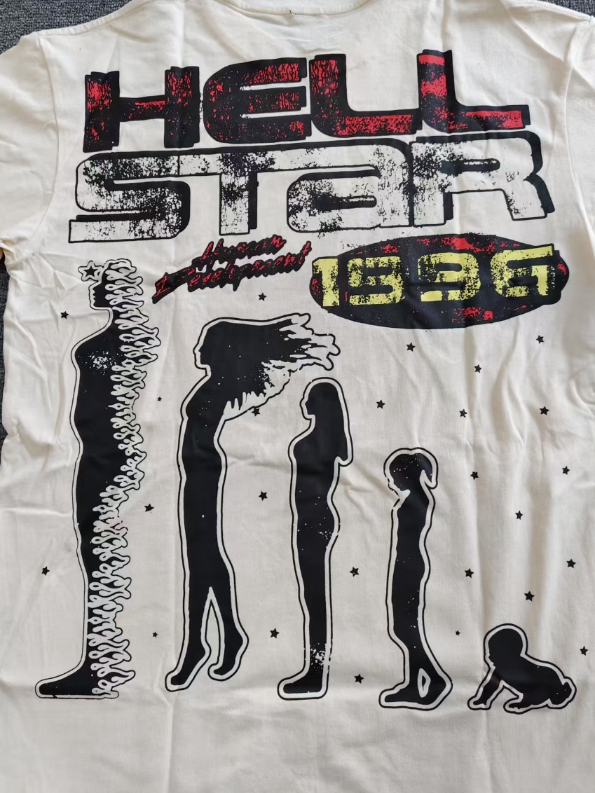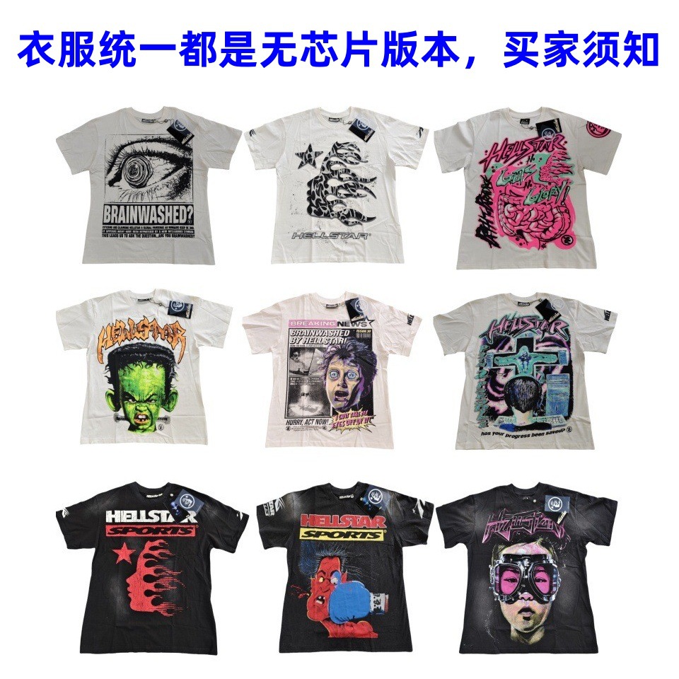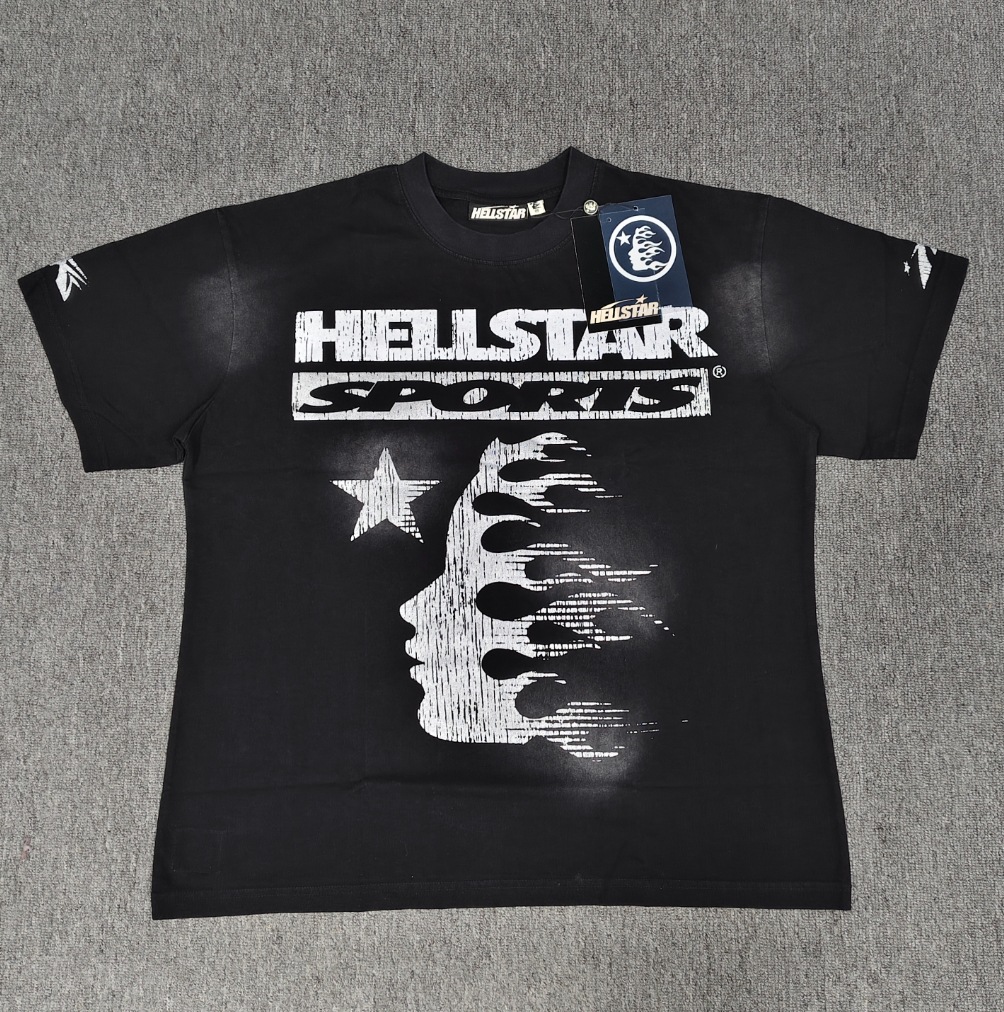 Merek Trendi Lintas Batas Hellstar Lengan Pendek Hellstar Bernapas Gaya Bintang Eropa dan Amerika Kaus Tertekan Dicuci Stok Siap Pria