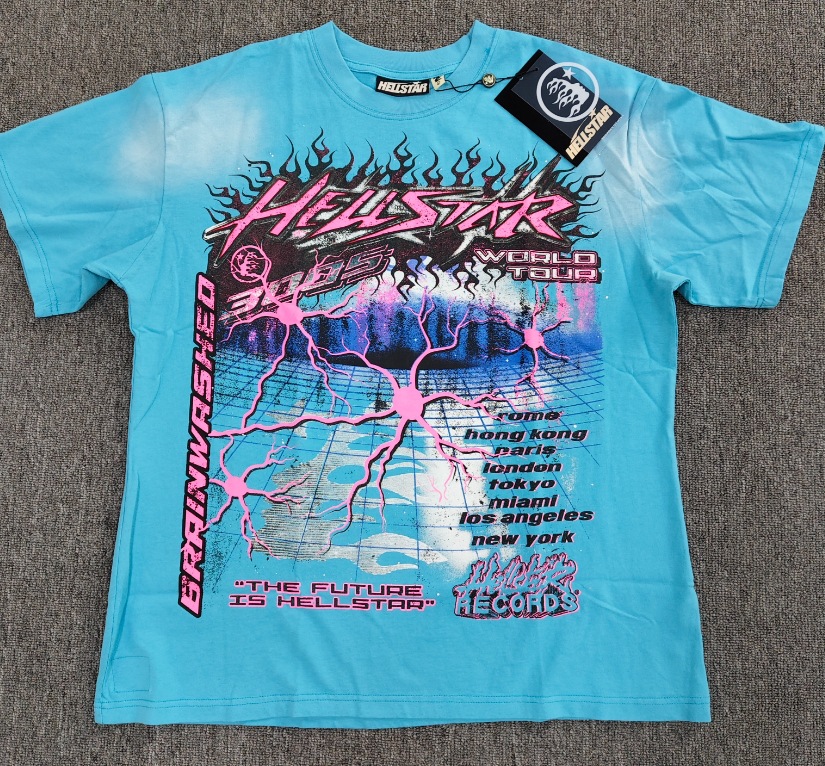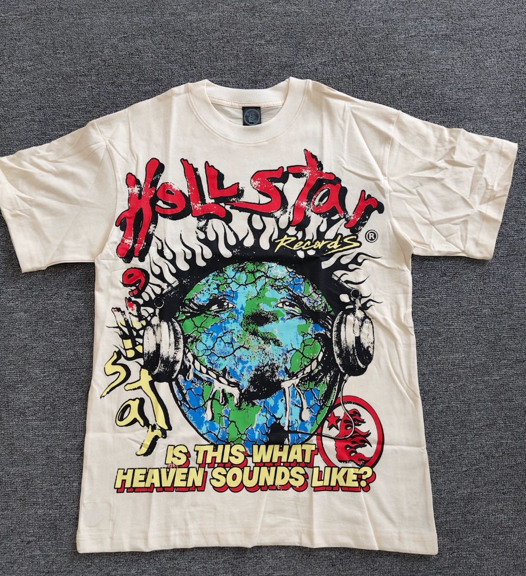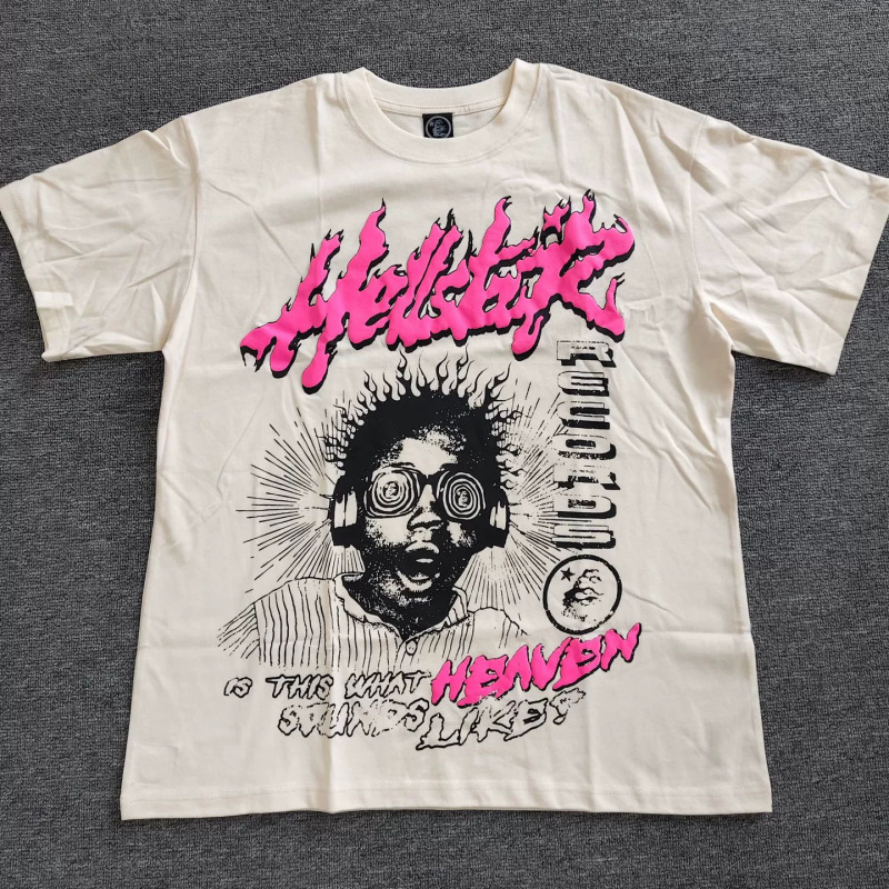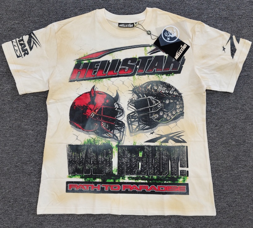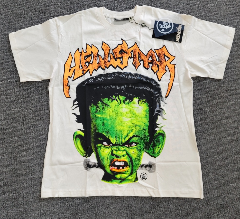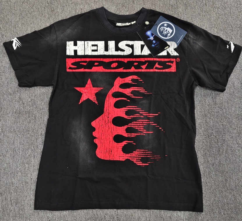 Merek Trendi Lintas Batas Hellstar Lengan Pendek Hellstar Bernapas Gaya Bintang Eropa dan Amerika Kaus Tertekan Dicuci Stok Siap Pria