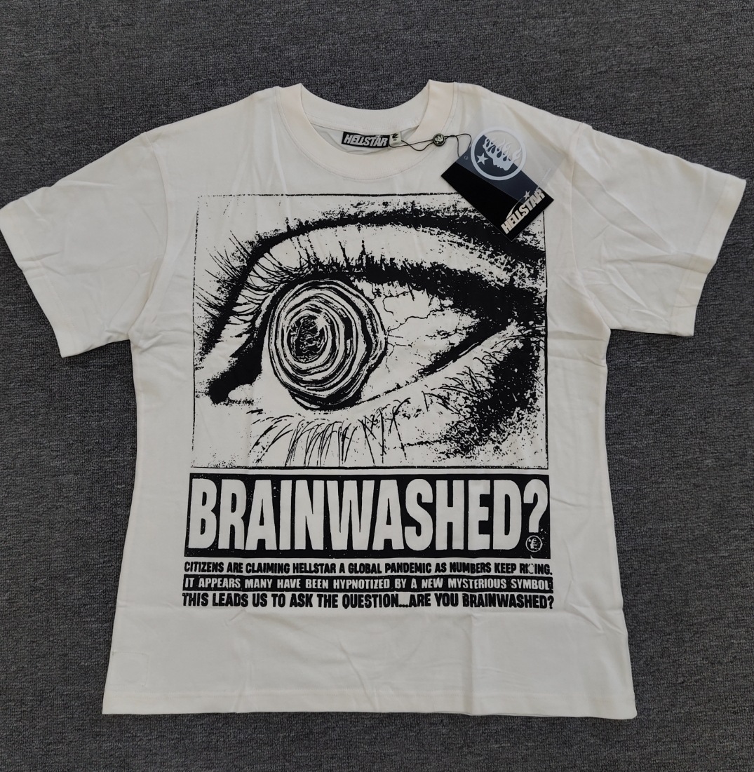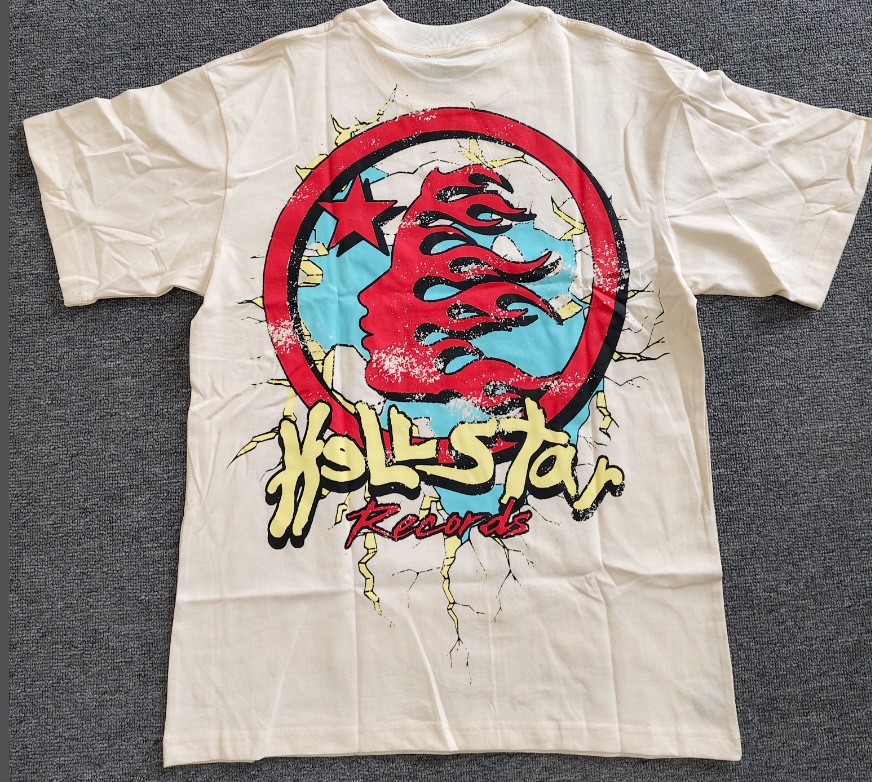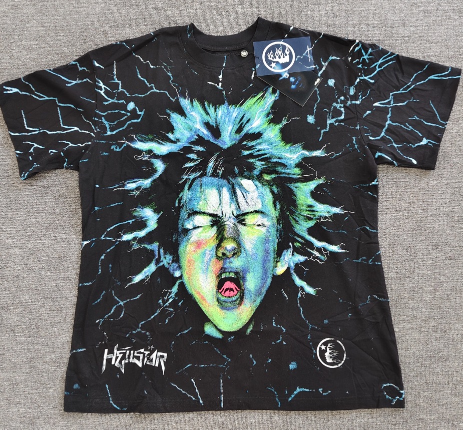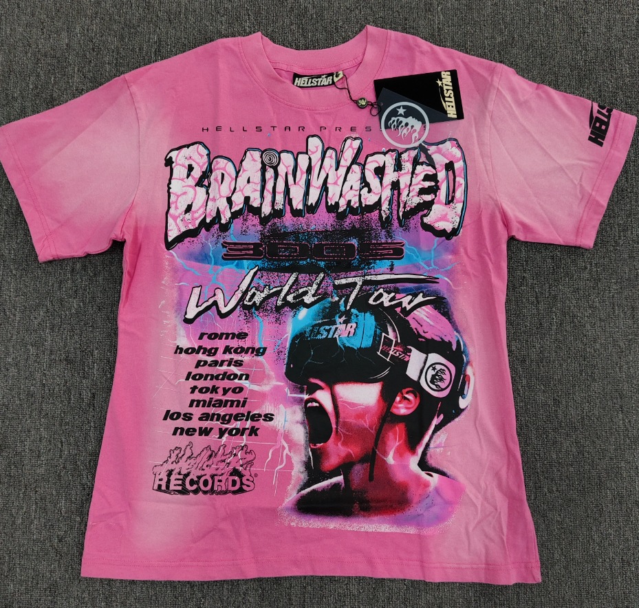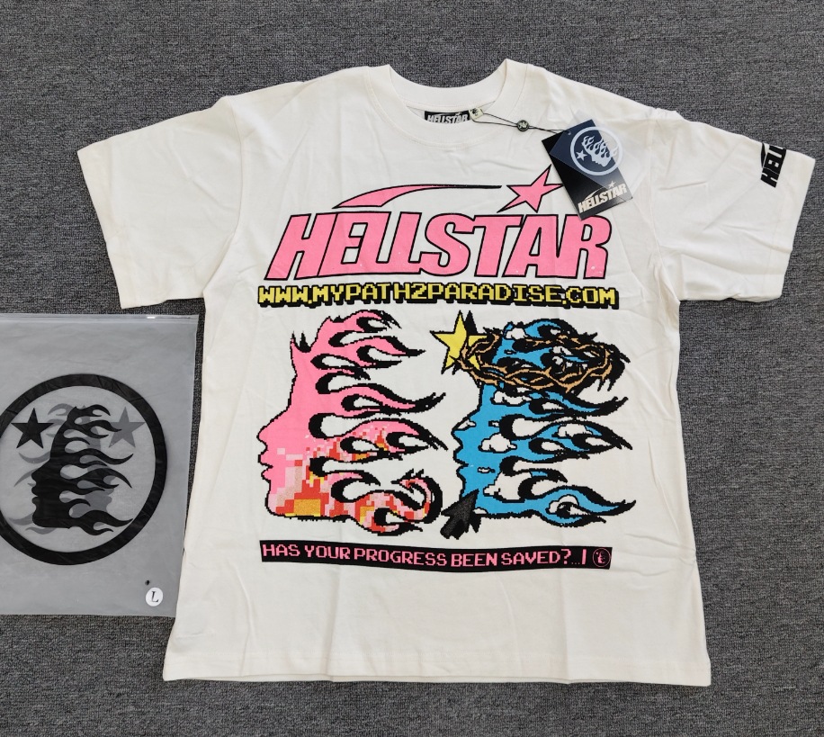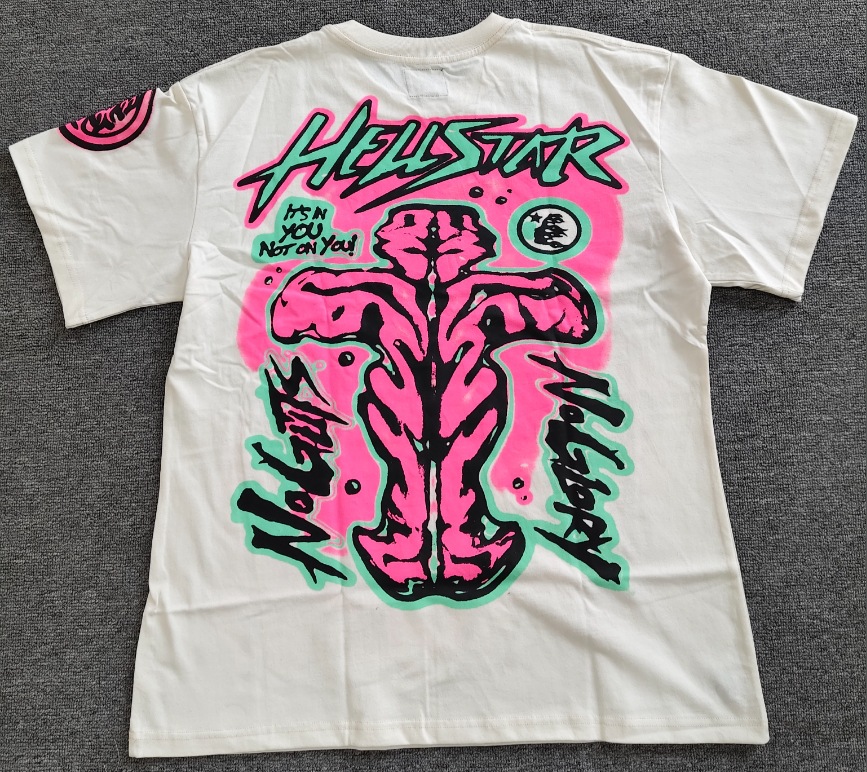 Merek Trendi Lintas Batas Hellstar Lengan Pendek Hellstar Bernapas Gaya Bintang Eropa dan Amerika Kaus Tertekan Dicuci Stok Siap Pria