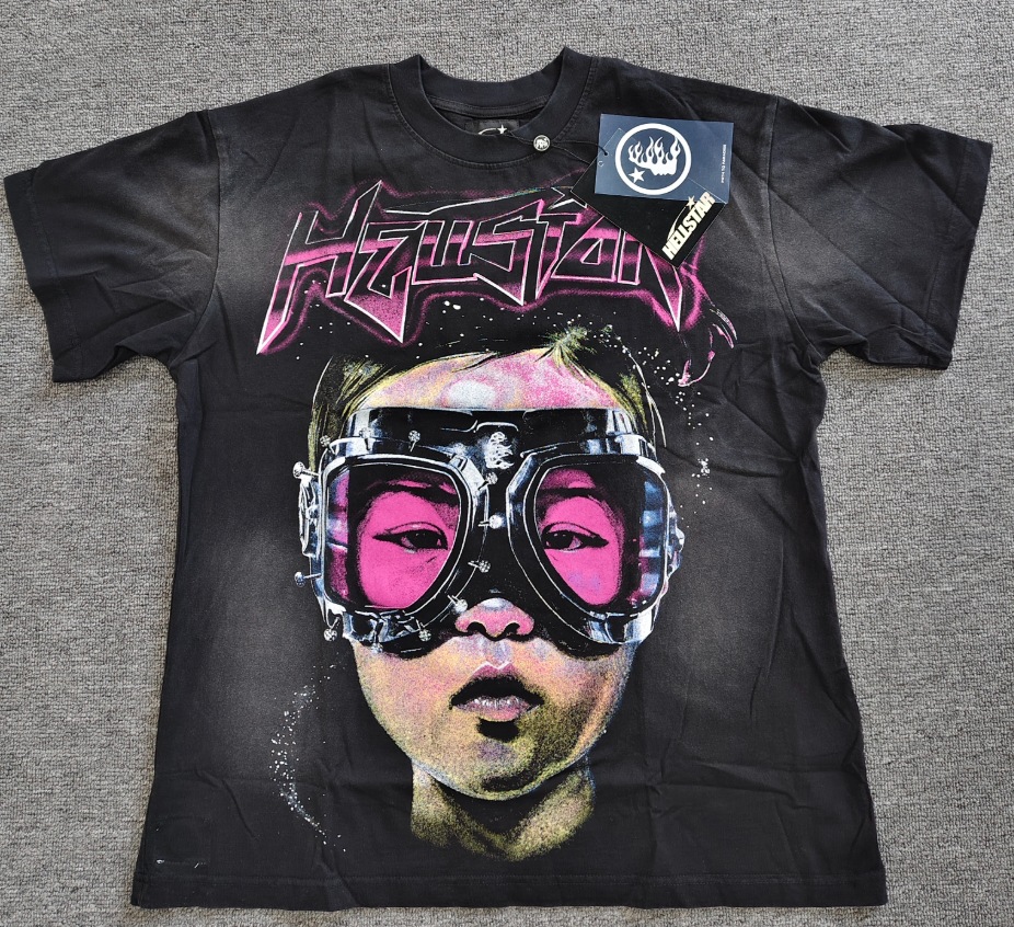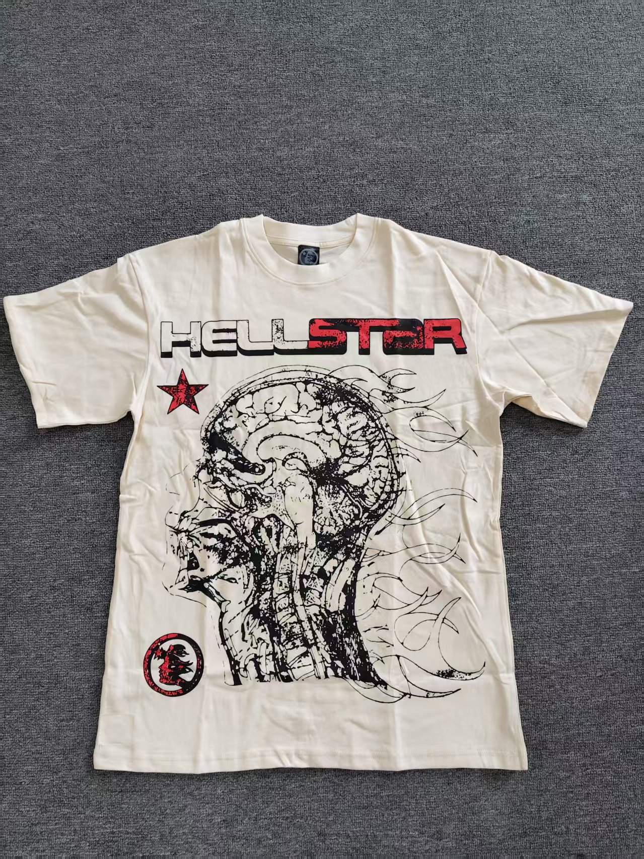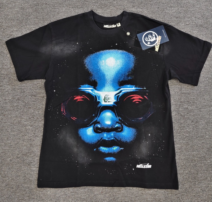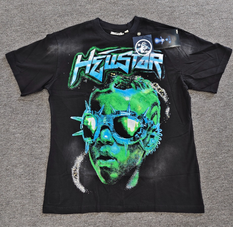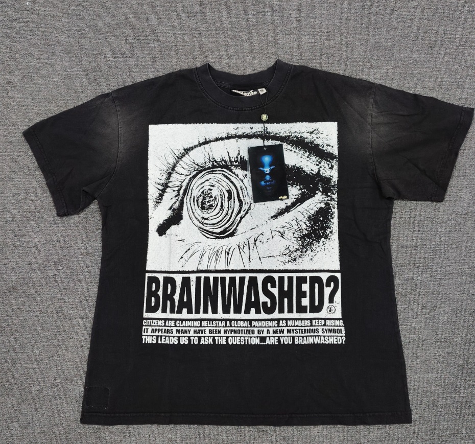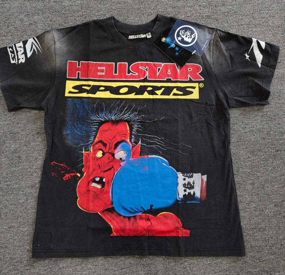Merek Trendi Lintas Batas Hellstar Lengan Pendek Hellstar Bernapas Gaya Bintang Eropa dan Amerika Kaus Tertekan Dicuci Stok Siap Pria