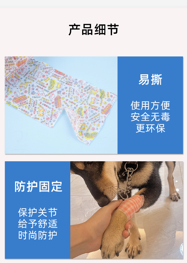 Perban elastis hewan peliharaan, pembungkus kaki anti-kotor luar ruangan anjing yang dapat sobek dengan tangan, perban pelindung portabel yang ringan dan bernapas