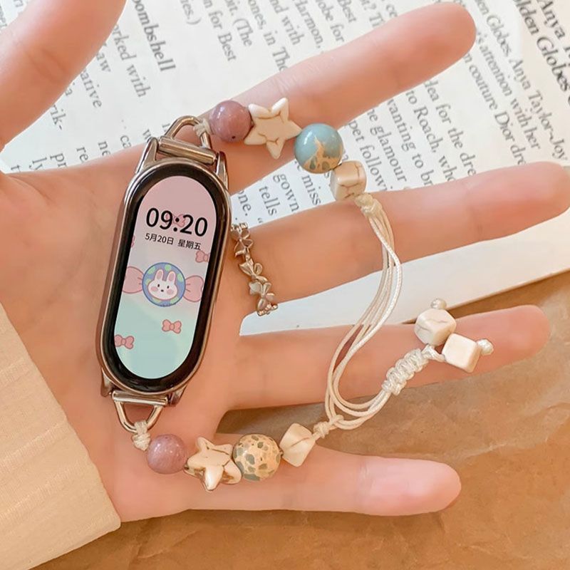 Cocok untuk Xiaomi Mi Band 10 Versi Keramik 9 Tali Jam Tangan Manik-manik Bintang Berbintik 876543NFC Gelang Lucu Aroma Kecil