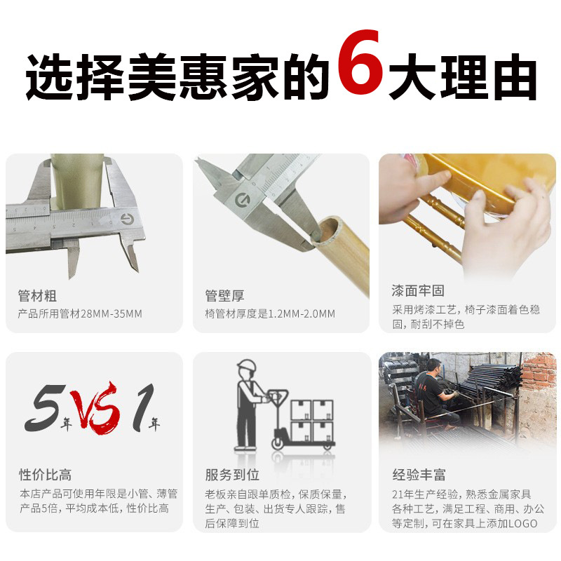 2、钢餐椅采用口径:30*30mm,厚度1.0mm加硬家具方管;
