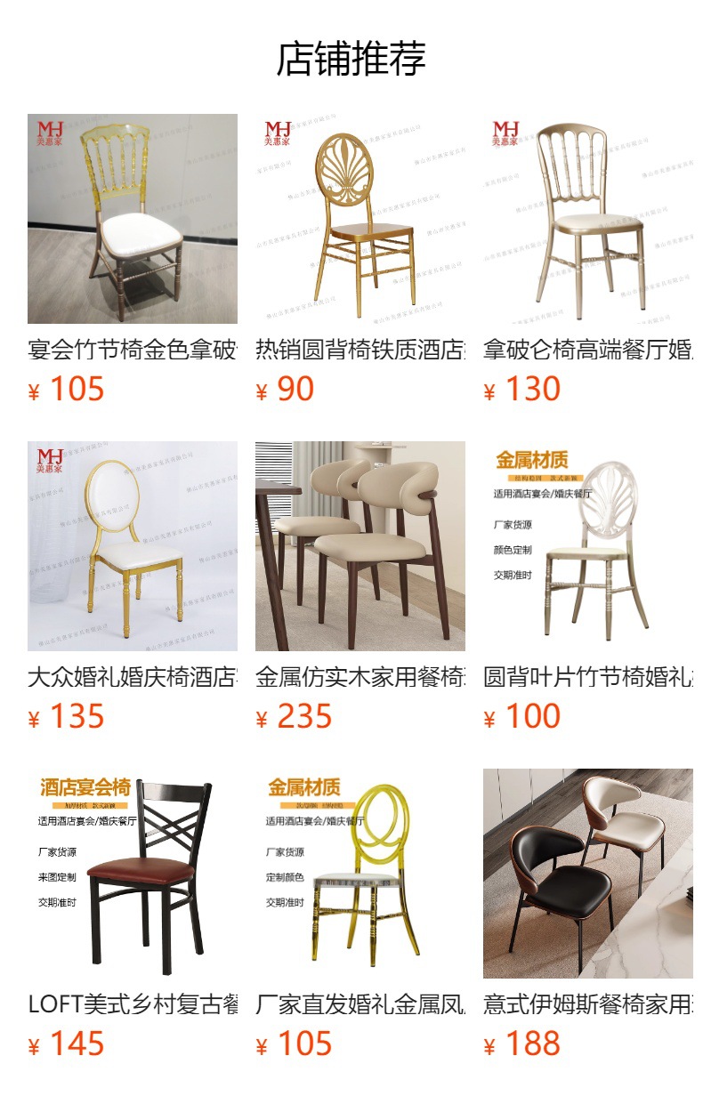 优惠餐厅家具清漆表面餐椅金属酒店婚礼椅Metal Restaurant Chair