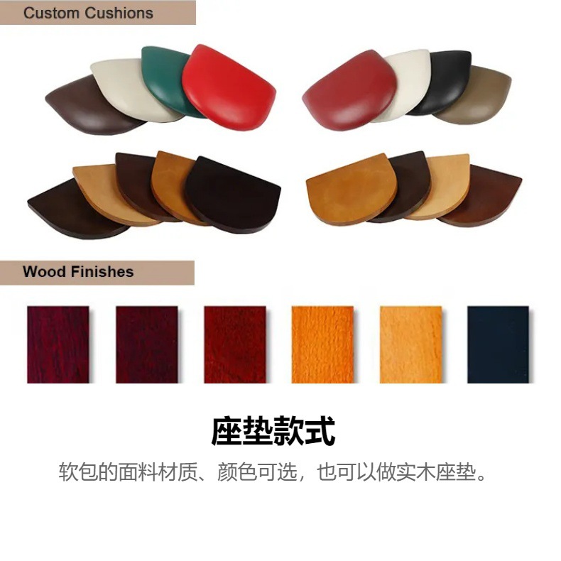 7、餐椅配件全部经过防锈处理,每张餐椅脚均配有防撞脚垫和耐磨脚塞,用户使用时能避免撞花餐椅油漆和刮花地板;