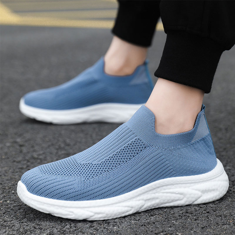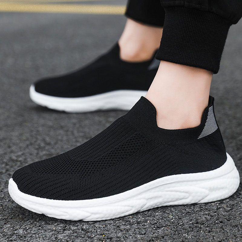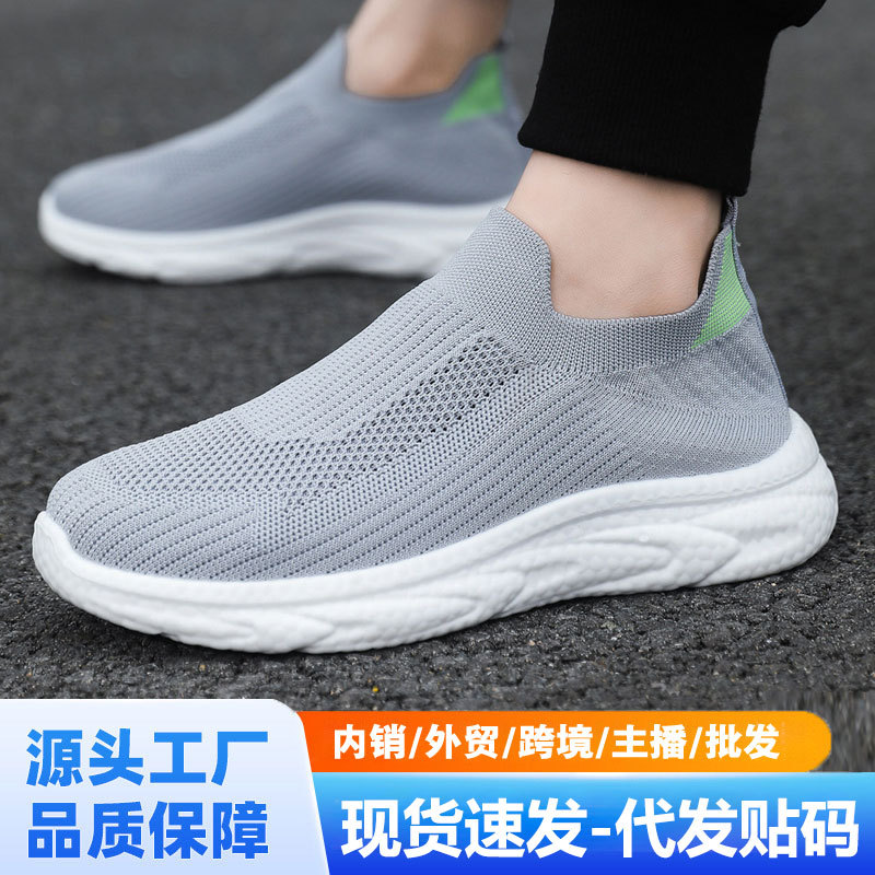 Sepatu Sol Tebal Lintas Batas Sepatu Kaus Kaki Pria Mudah Dipadu Padan Modis Permukaan Jaring Bernapas Sepatu Kain Kasual Orang Malas Tinggi Ringan Perdagangan Luar Negeri Pria