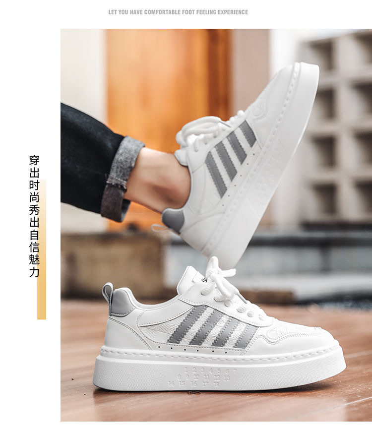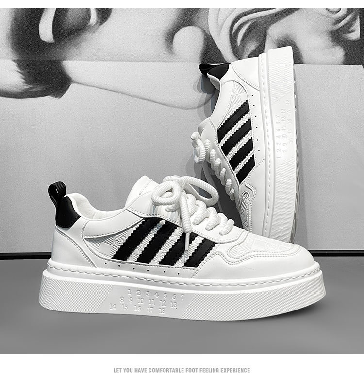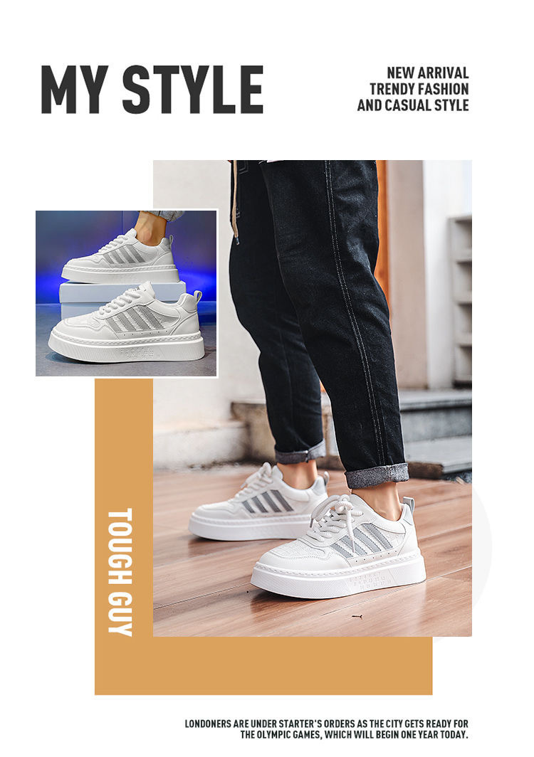 Sepatu Pria Musim Semi 2025 Sepatu Putih Kecil Bernapas Model Baru Sepatu Olahraga Sol Tebal Mudah Dipadu Padan Trendi Pria Sepatu Skate Kasual Sepatu Trendi