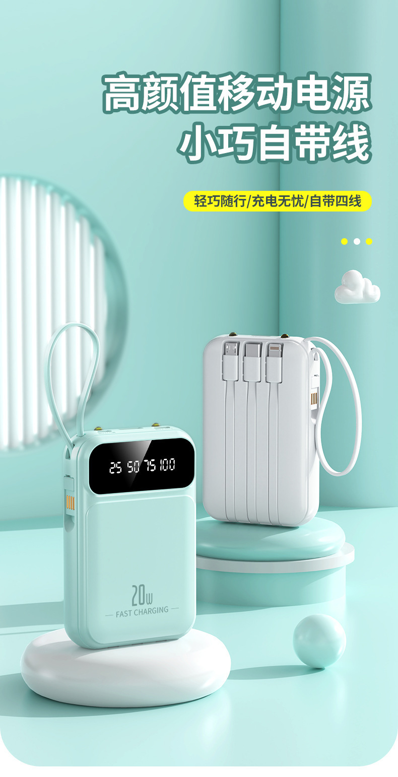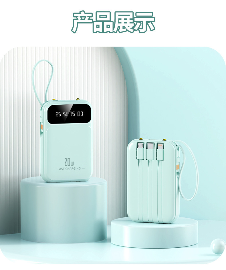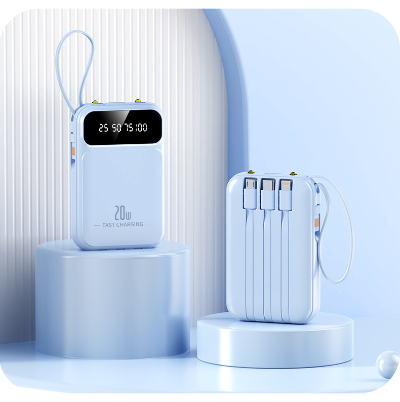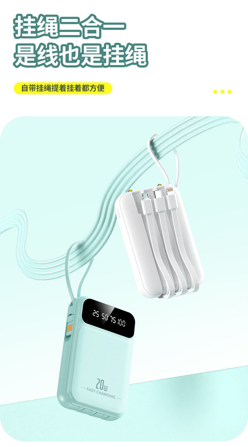 Power bank grosir lintas batas dengan kabel built-in 20000 mAh kapasitas besar power bank portabel hadiah LOGO custom