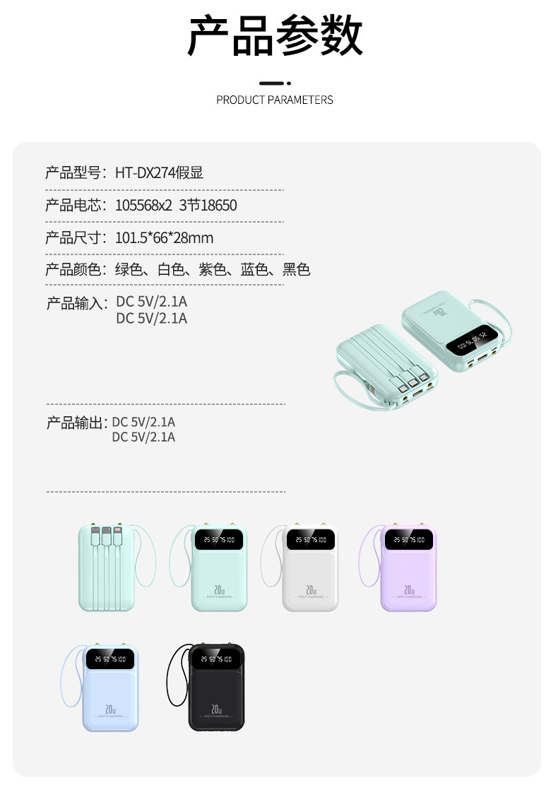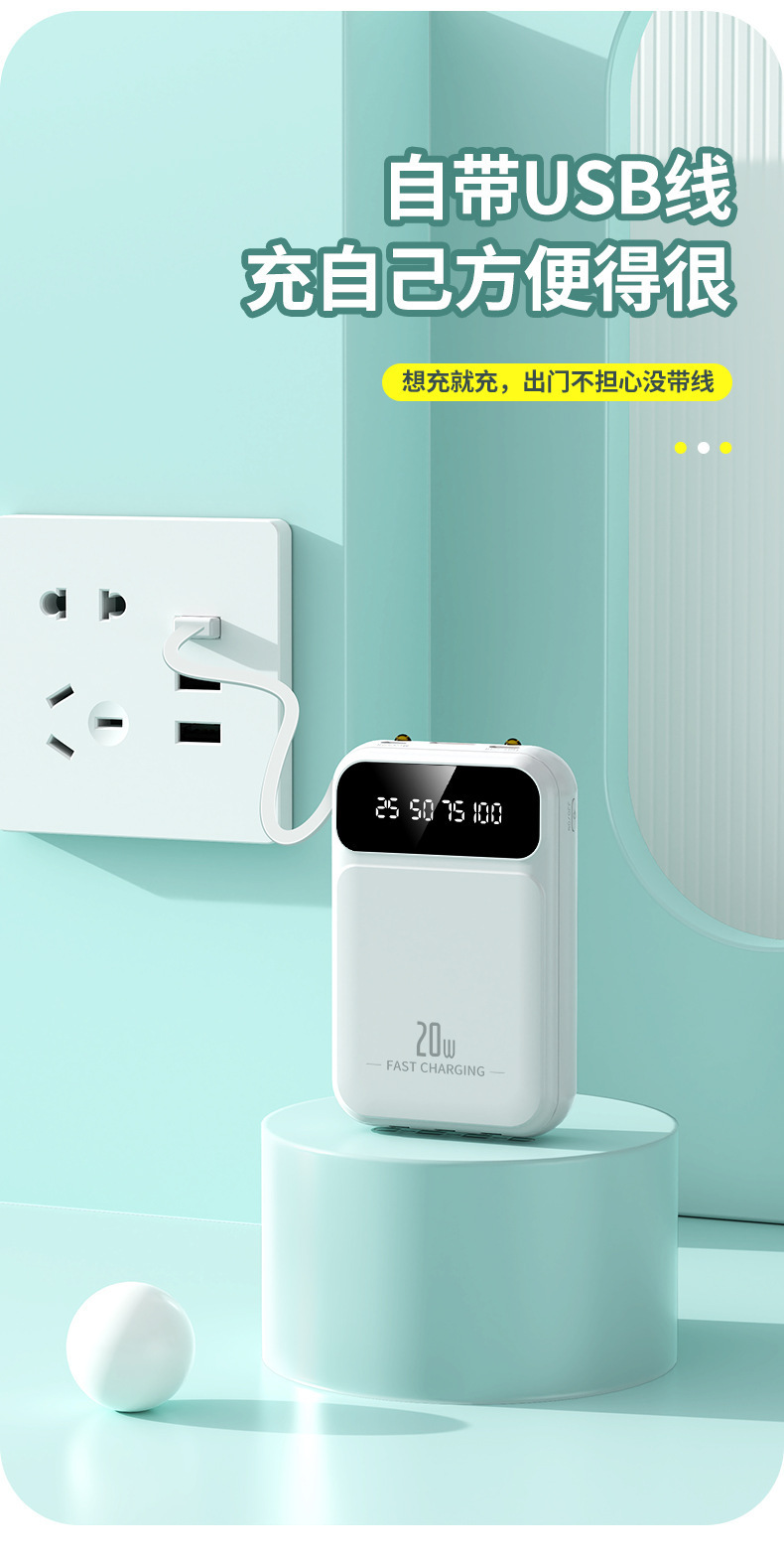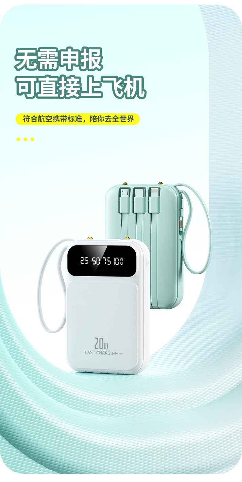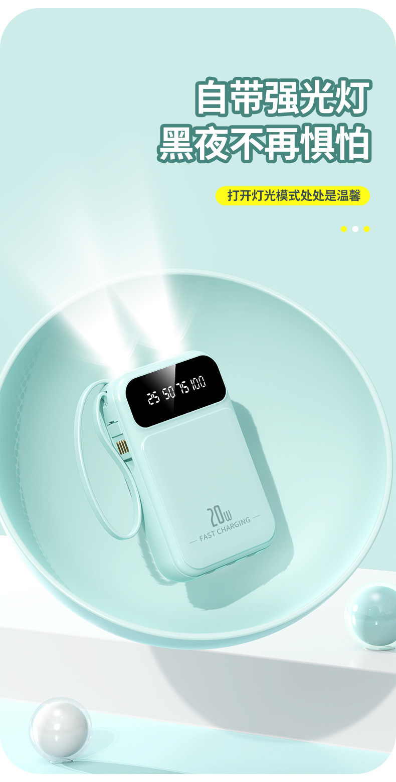 Power bank grosir lintas batas dengan kabel built-in 20000 mAh kapasitas besar power bank portabel hadiah LOGO custom