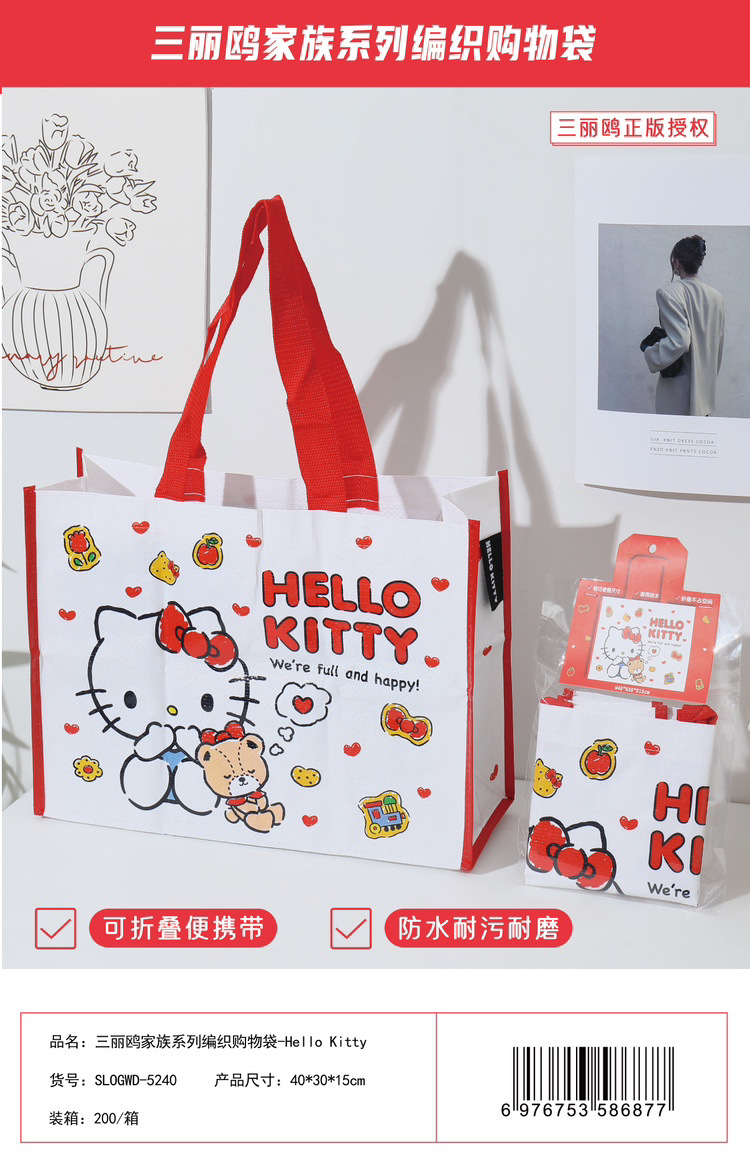 Mai Pin Alat Tulis Tas Belanja Tenun Keluarga Sanrio Asli Tas Jinjing Penyimpanan Kapasitas Besar KTcat Kulomi
