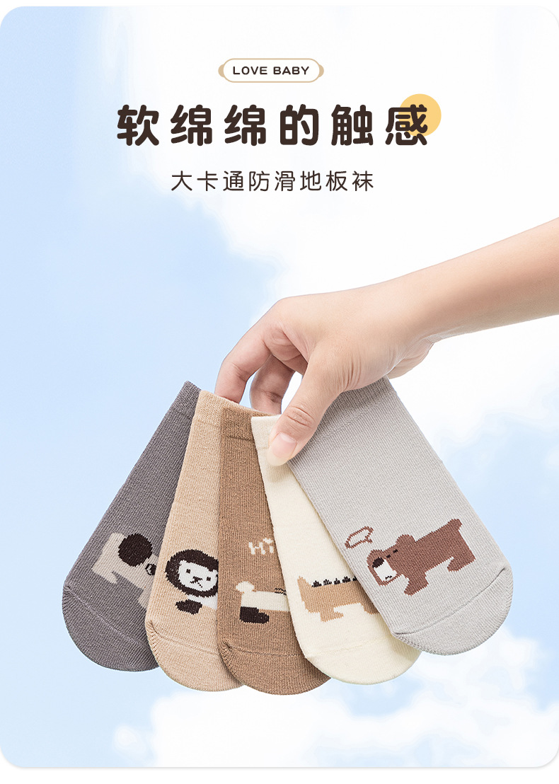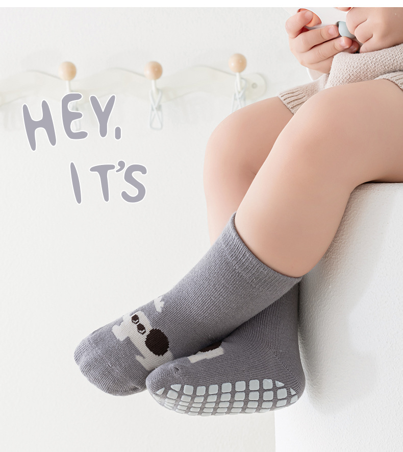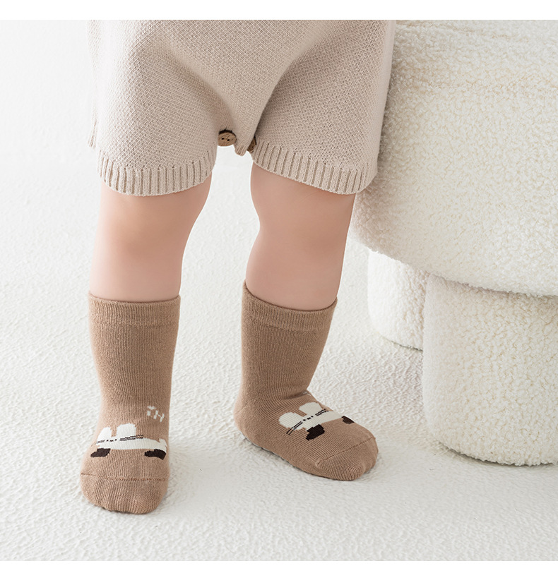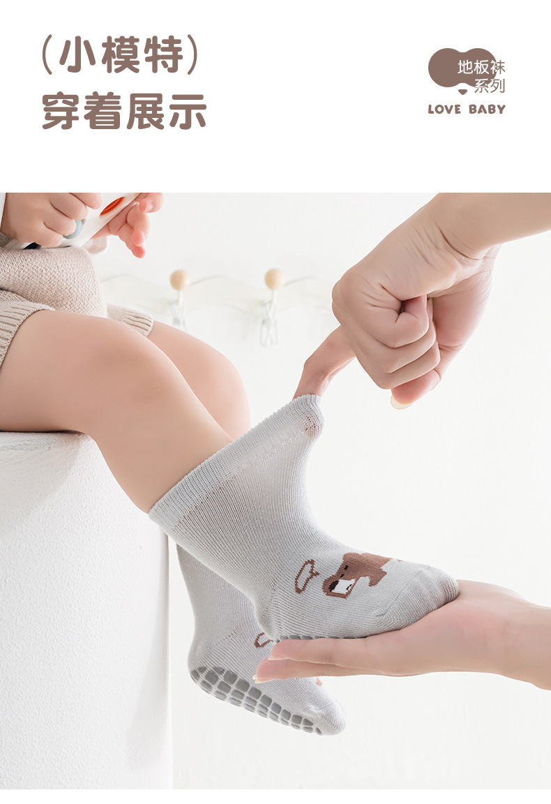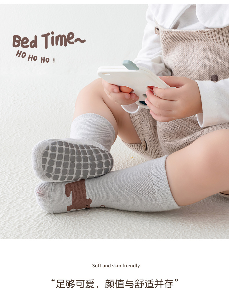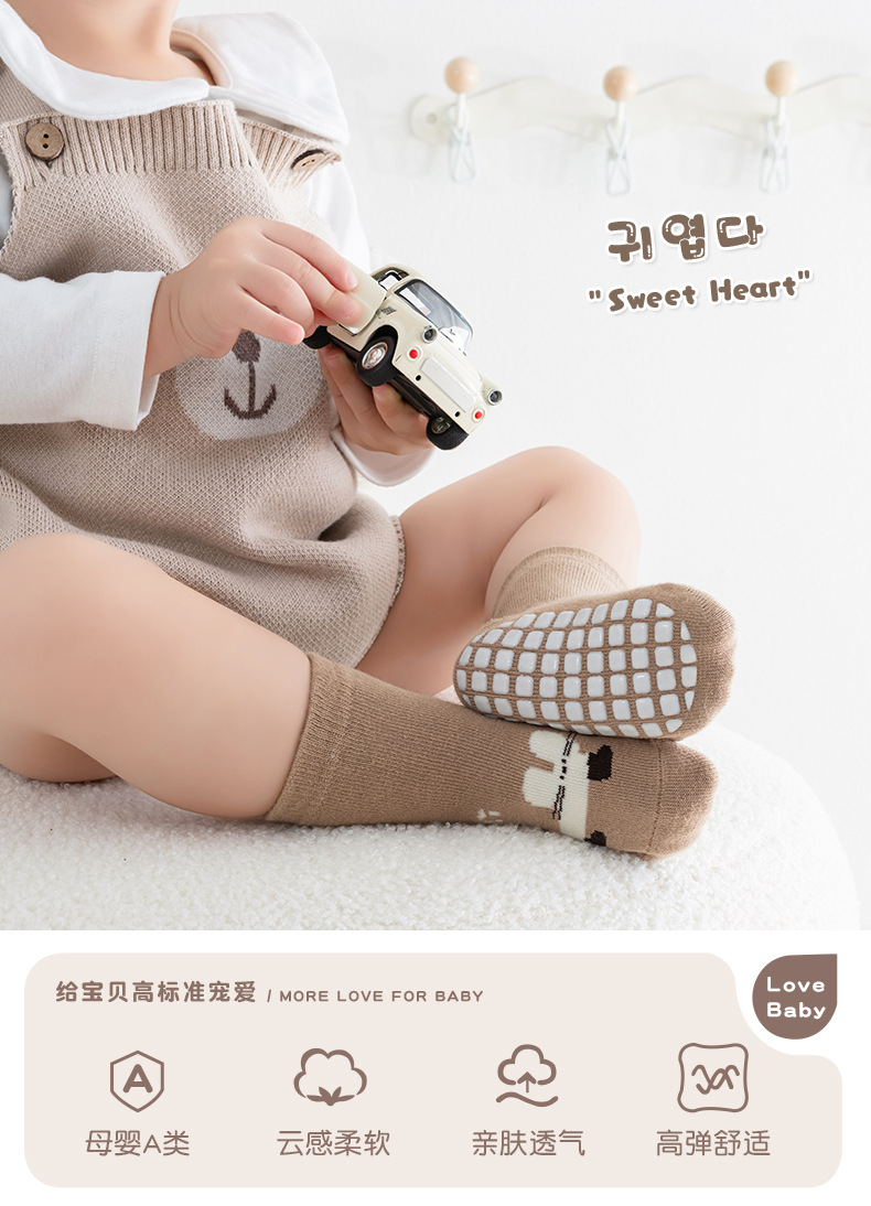 Kaus kaki bayi anti selip berukuran besar ala Korea untuk bayi dan balita, kaus kaki lantai anak laki-laki dan perempuan, kaus kaki lurus kartun abstrak