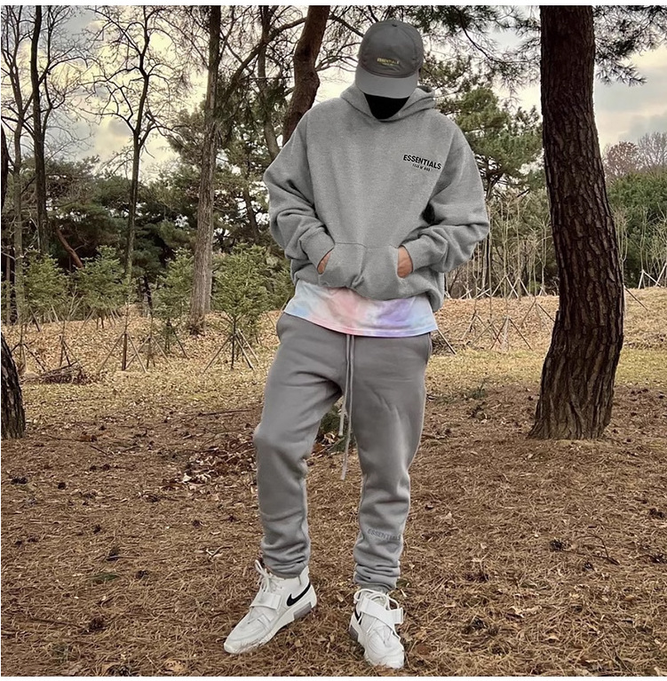 FOG ESSENTIALS Sweater Daftar Berat Pasangan Longgar di Jalur Ganda Musim Kedelapan