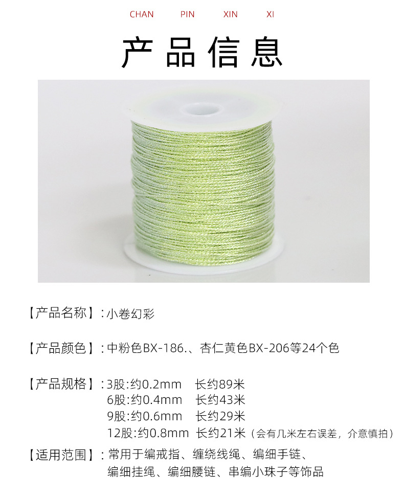 Benang ajaib warna gradien gulungan kecil 3 untai 6 untai benang emas berwarna tenunan tangan teratai zongzi tali gelang festival daun naga perahu naga