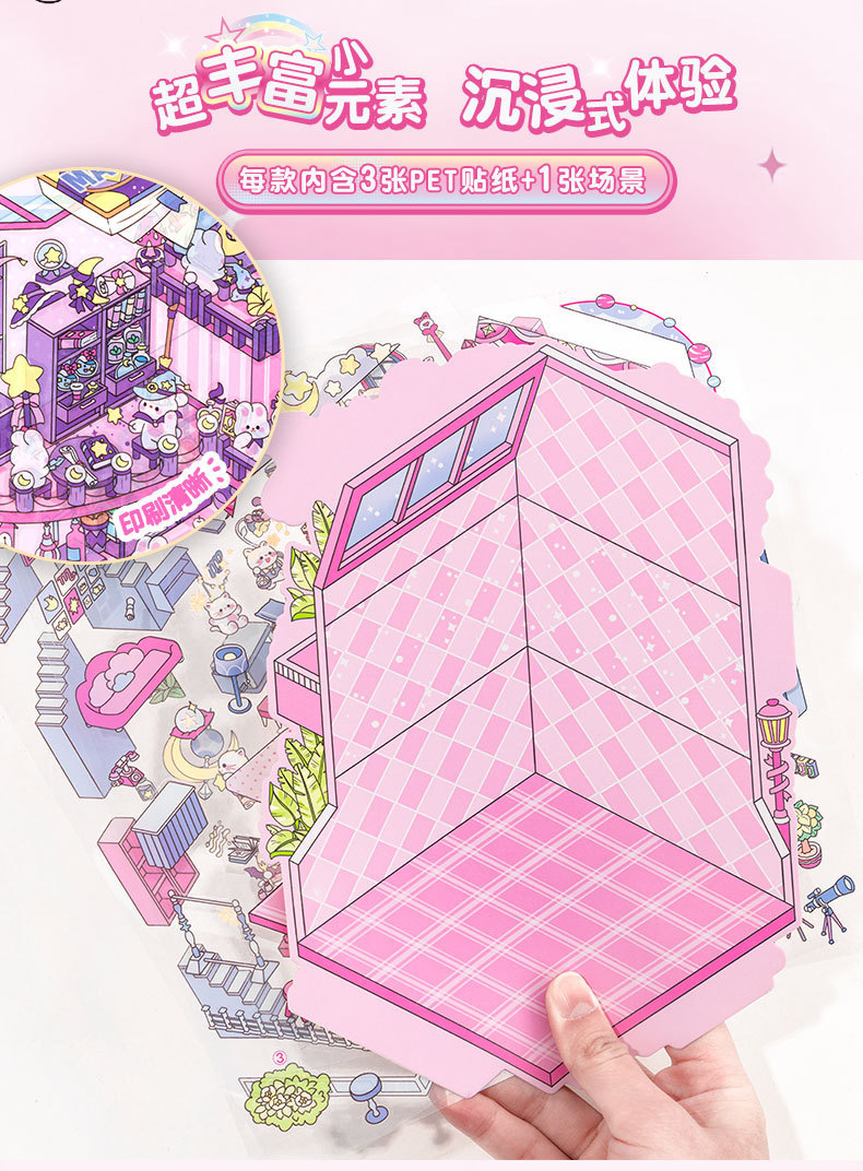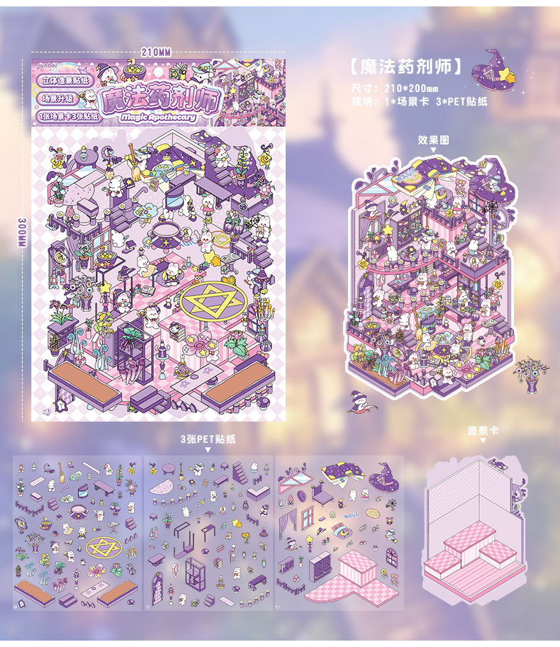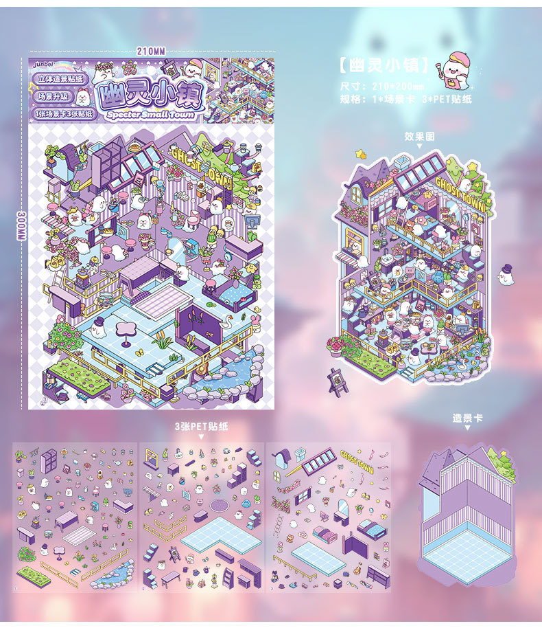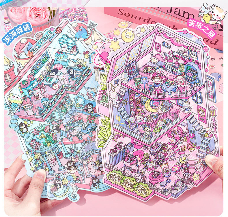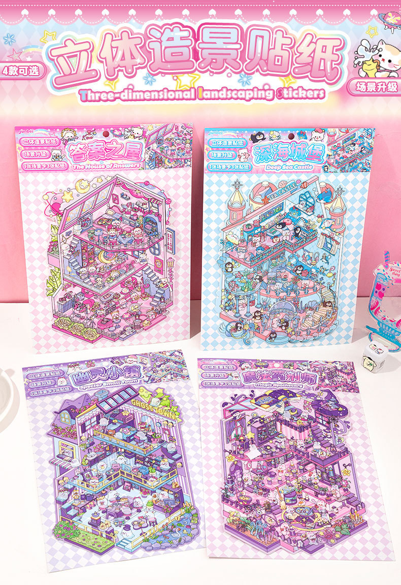 Stiker Lansekap Lucu Hadiah Siswa Hadiah Kecil Anak-Anak Stiker Adegan Miniatur Besar Bahan Dekorasi Pola Kecil