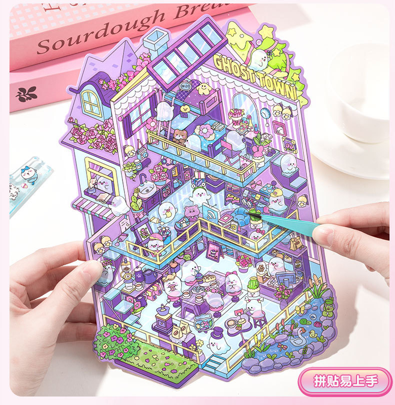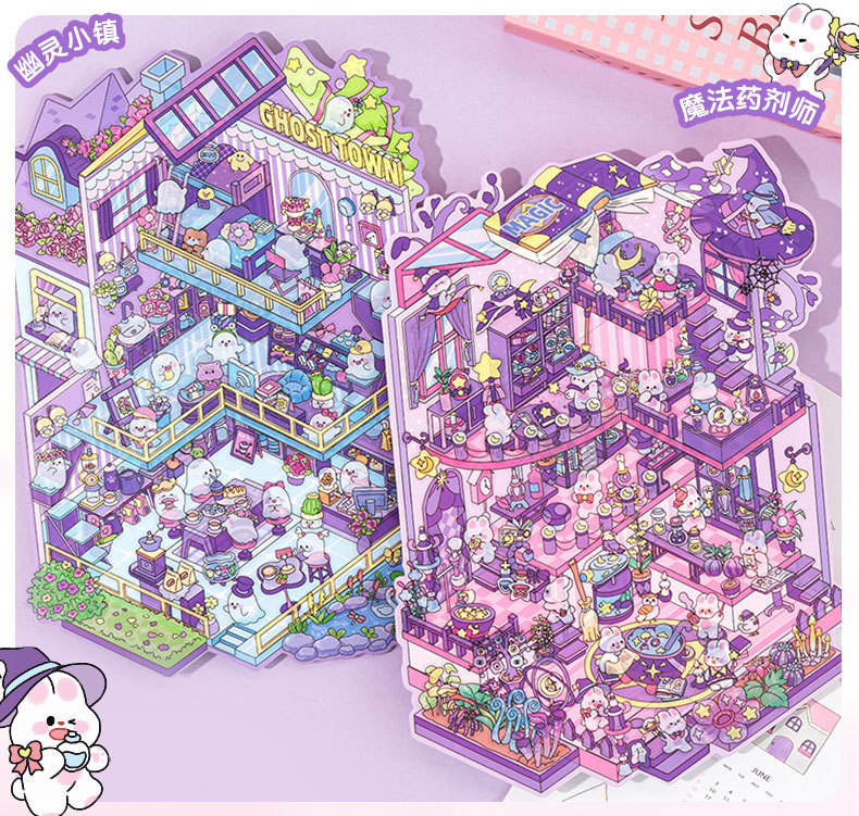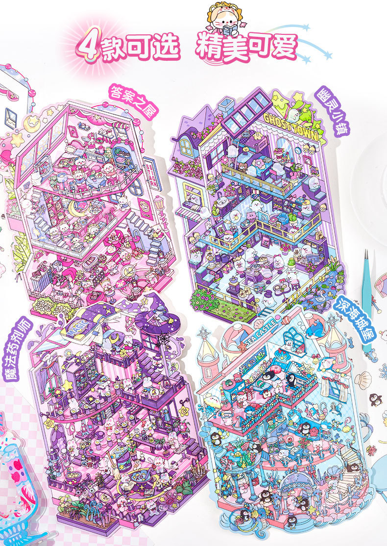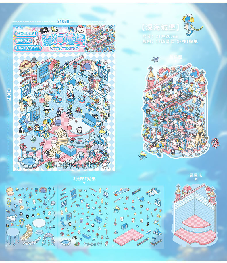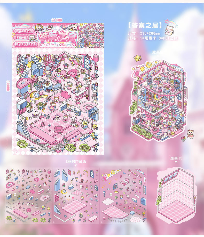 Stiker Lansekap Lucu Hadiah Siswa Hadiah Kecil Anak-Anak Stiker Adegan Miniatur Besar Bahan Dekorasi Pola Kecil