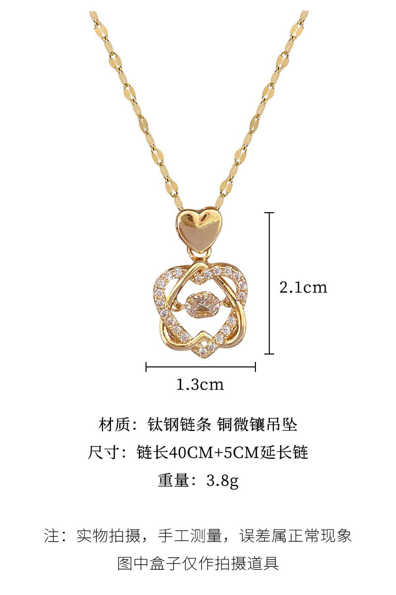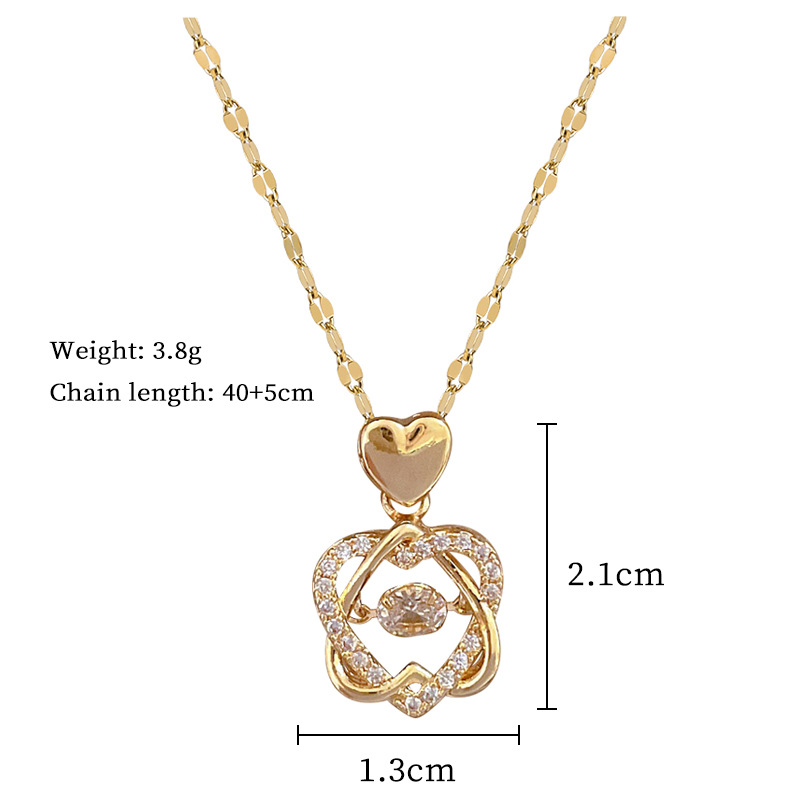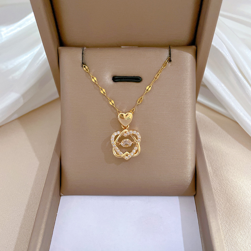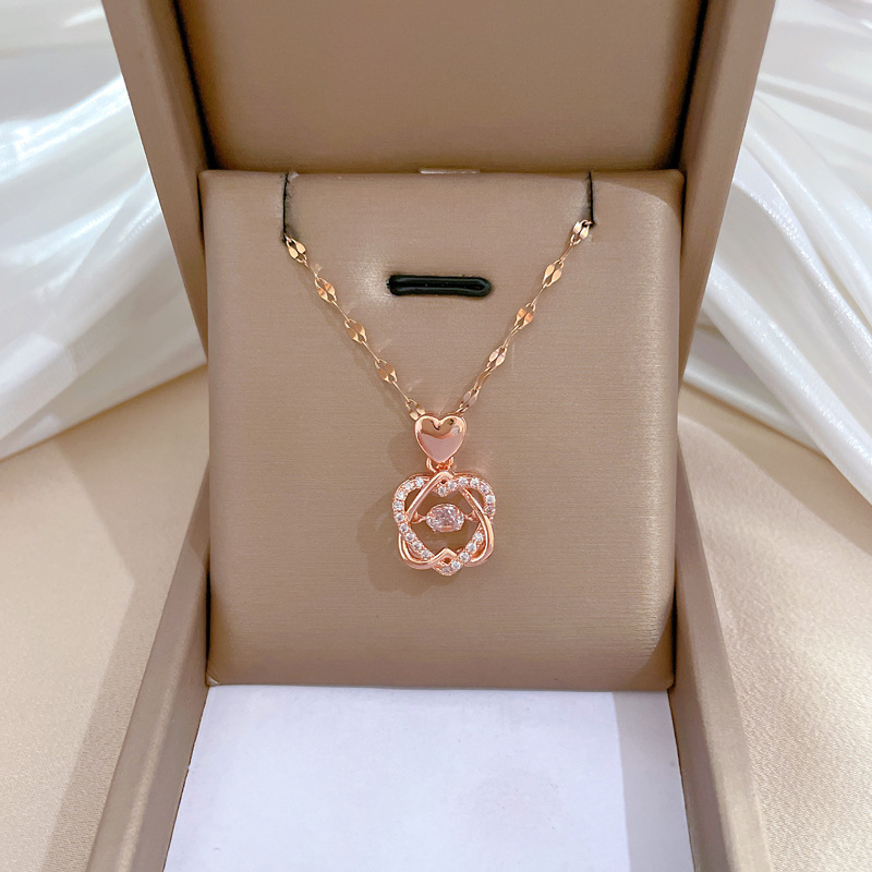[Baja Titanium] kalung berlian penuh indah mewah ringan cerdas segel hati untuk Hati rantai baja titanium wanita Semua cocok