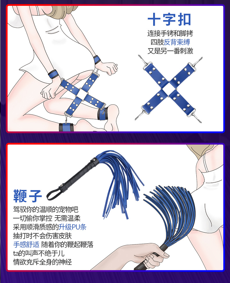 SM Set 9 Set Pasangan Menyinarkan Dompet Kulit Cambuk Kulit Klip Penutup Mata Borgol Tangan dan Kaki yang Diikat Alat Peraga Bermain Peran