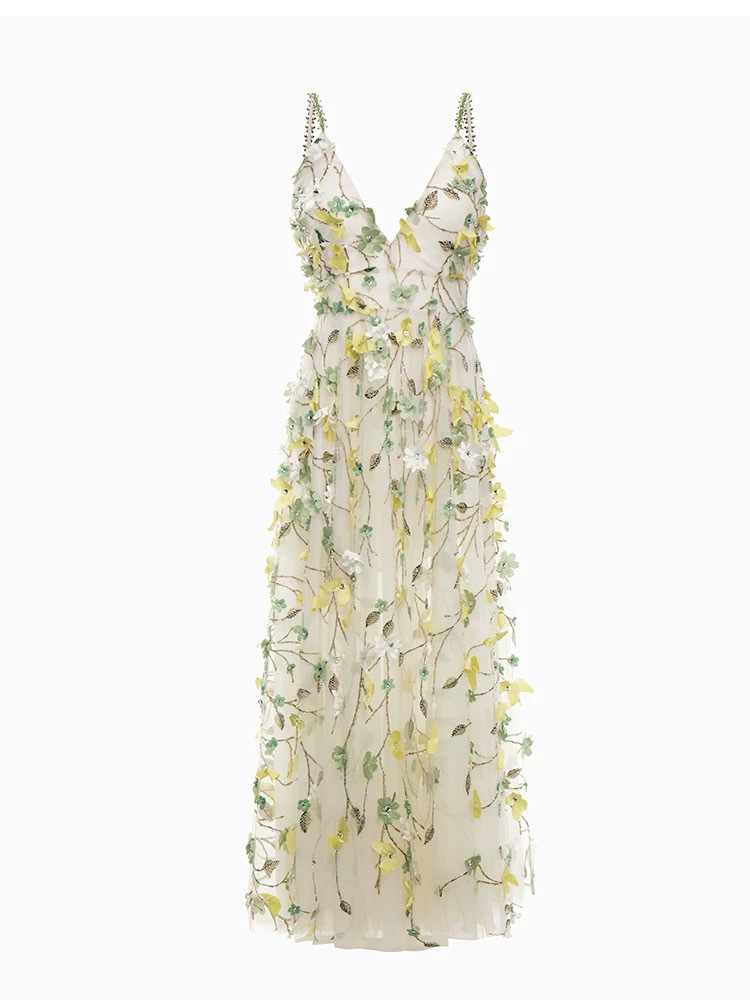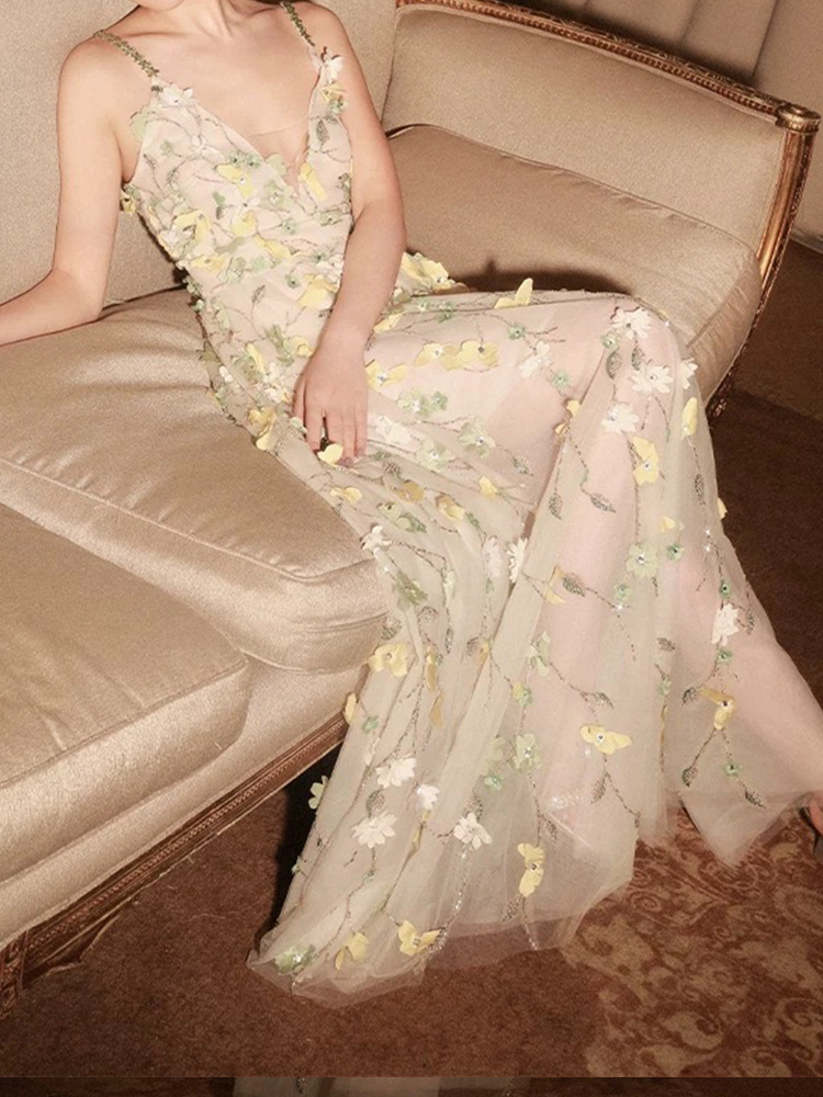 Gaun Gantung Gaya Liburan Punggung Terbuka Bunga