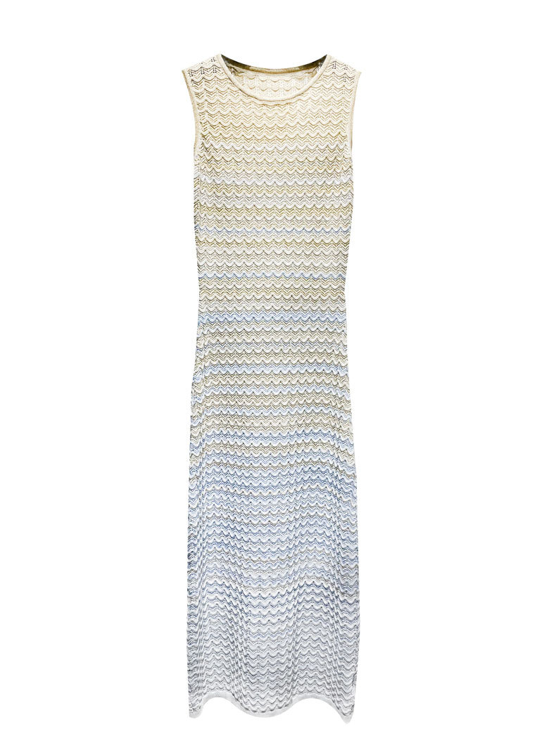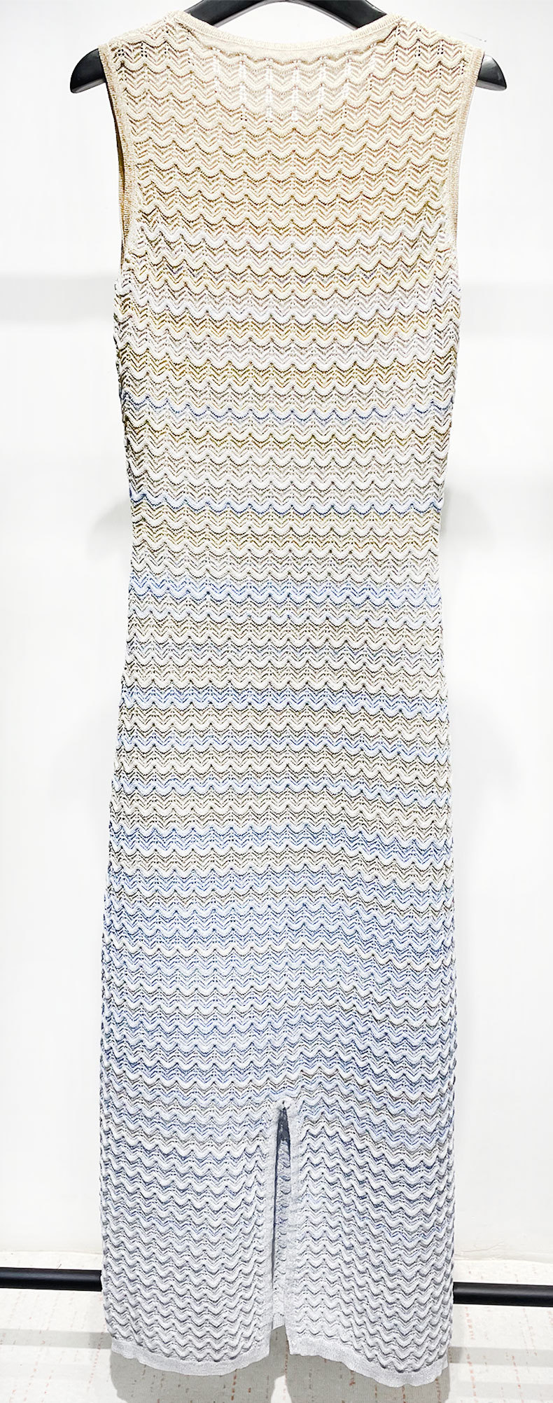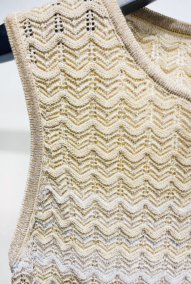 S home gaun tanpa lengan wanita, Gaun rajutan warna gradien bergaya Prancis tenun tanpa lengan musim panas 2024