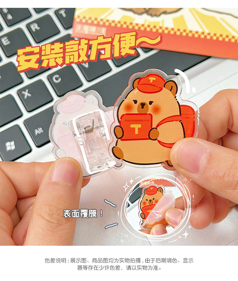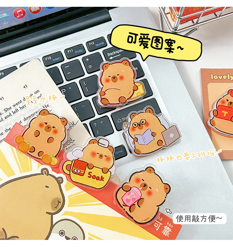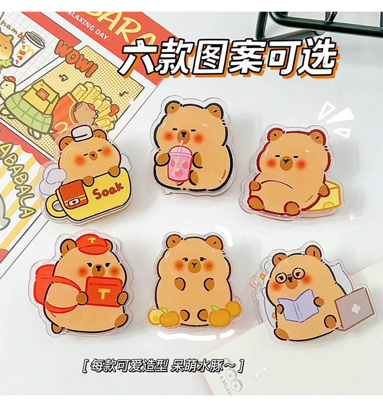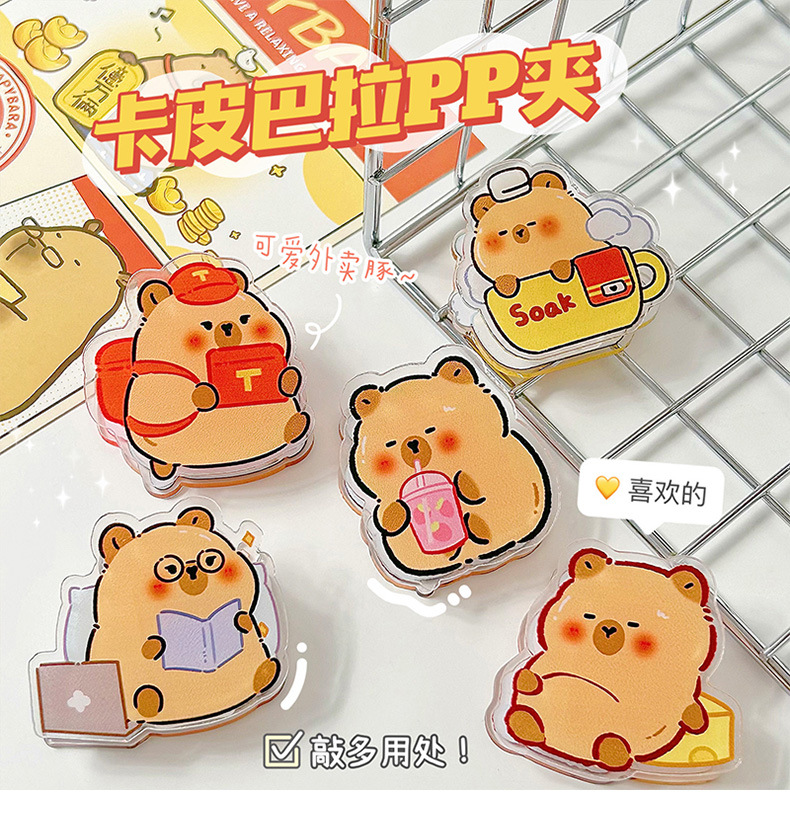 Capabala klip pp klip akrilik capybara lucu klip kertas uji siswa kreatif klip penyegel makanan ringan grosir