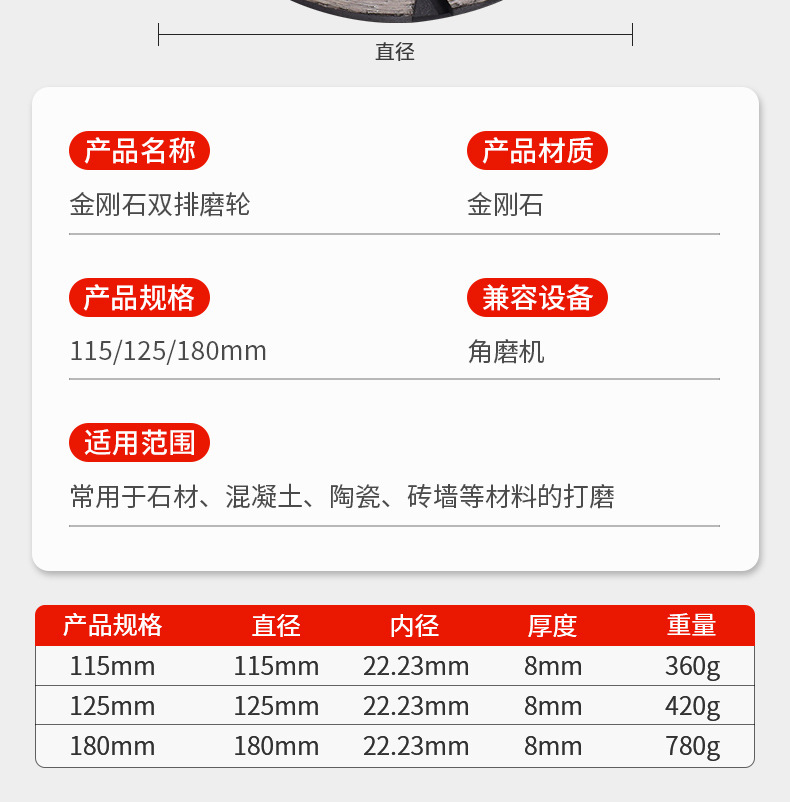 厂家直销金刚石磨盘石材混凝土地坪专用打磨片金刚石工具双排磨轮