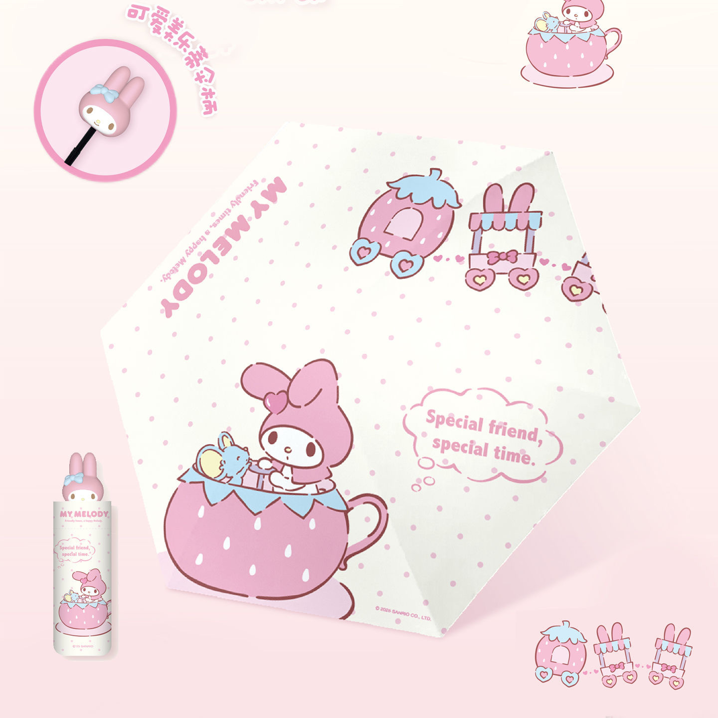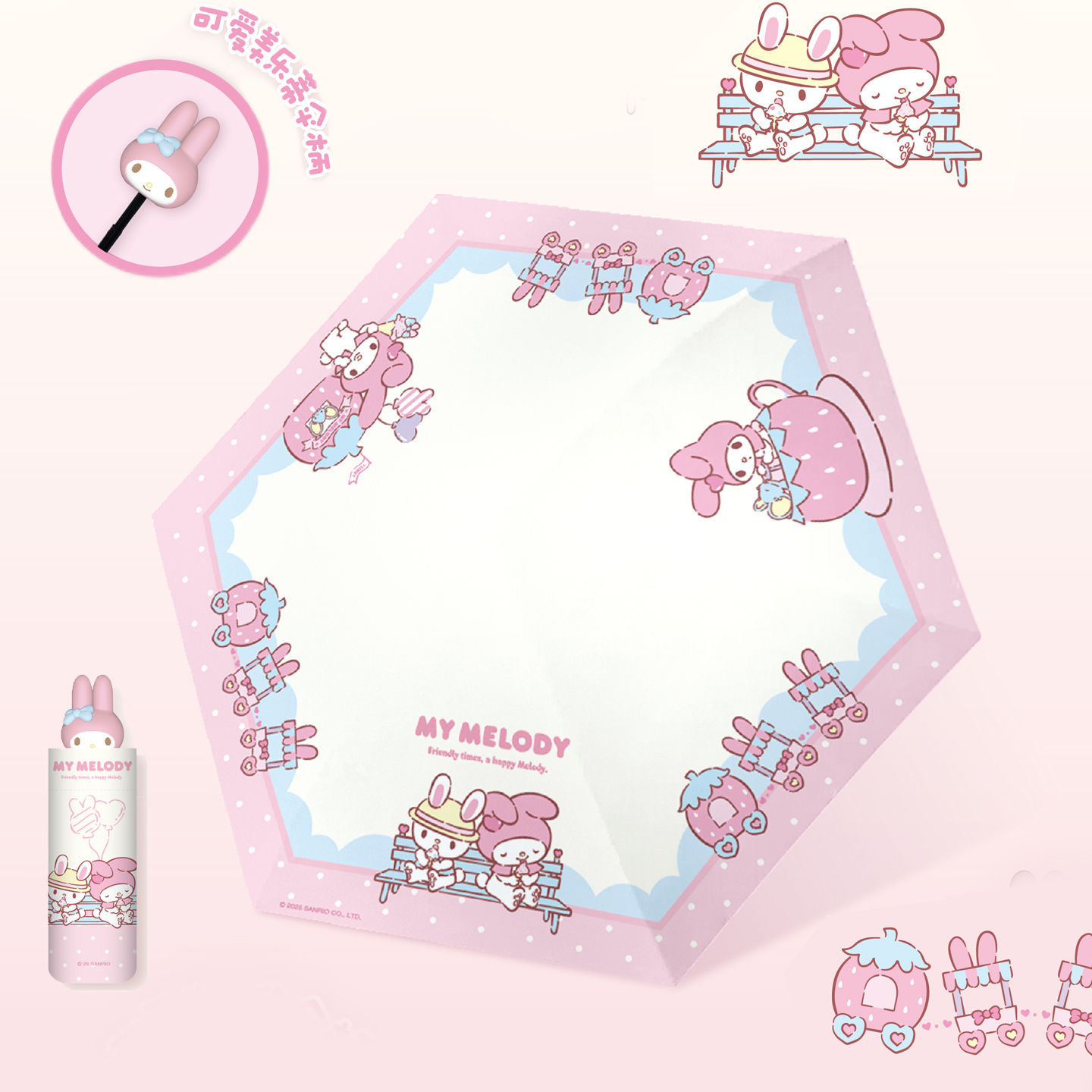 三丽鸥可爱手动高颜值夏季防晒遮阳伞立体公仔头美乐蒂小五折雨伞