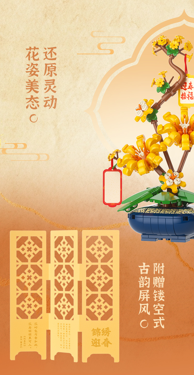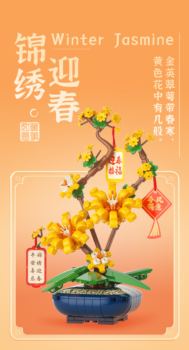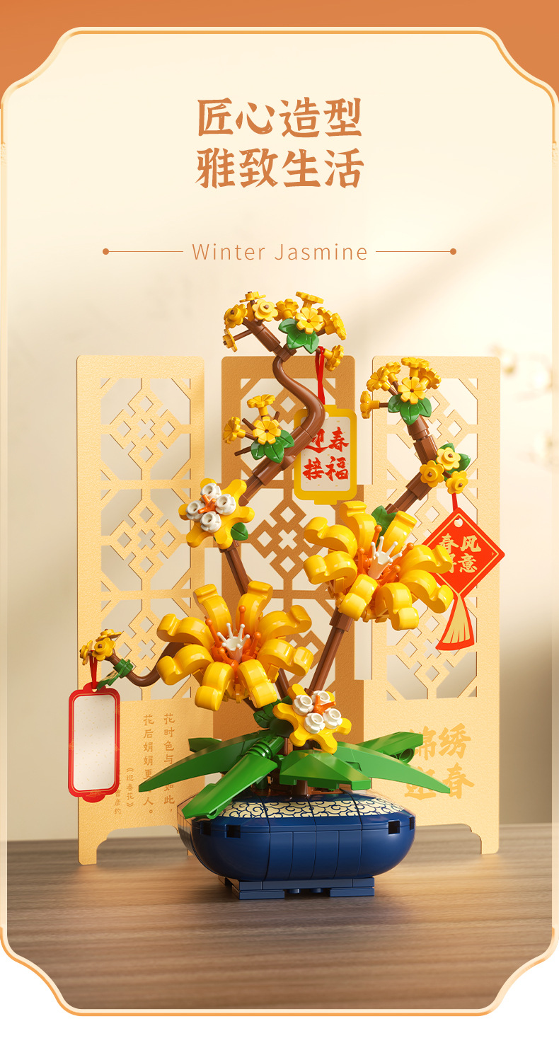 JAKI佳奇积木水仙花植物盆栽永生花国风摆件模型送女友情人节礼物