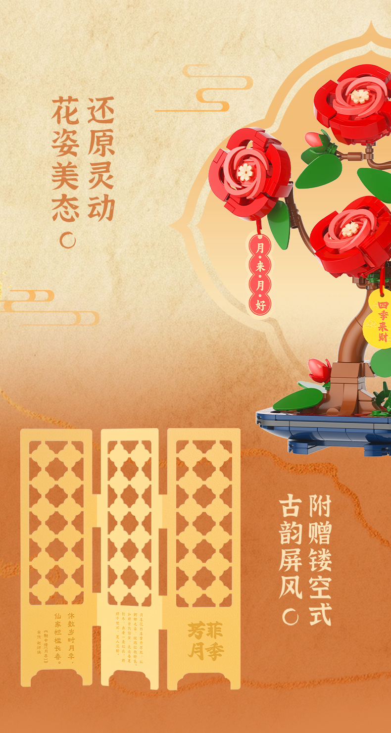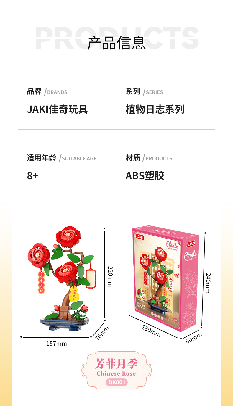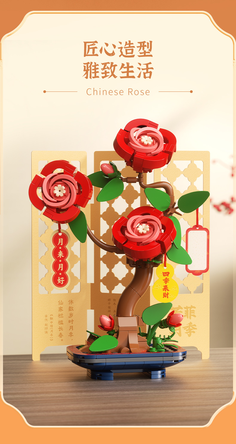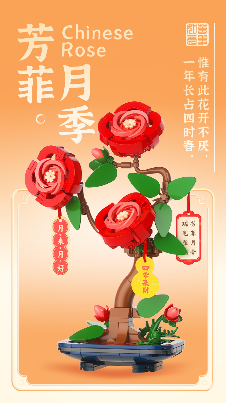 JAKI佳奇积木水仙花植物盆栽永生花国风摆件模型送女友情人节礼物