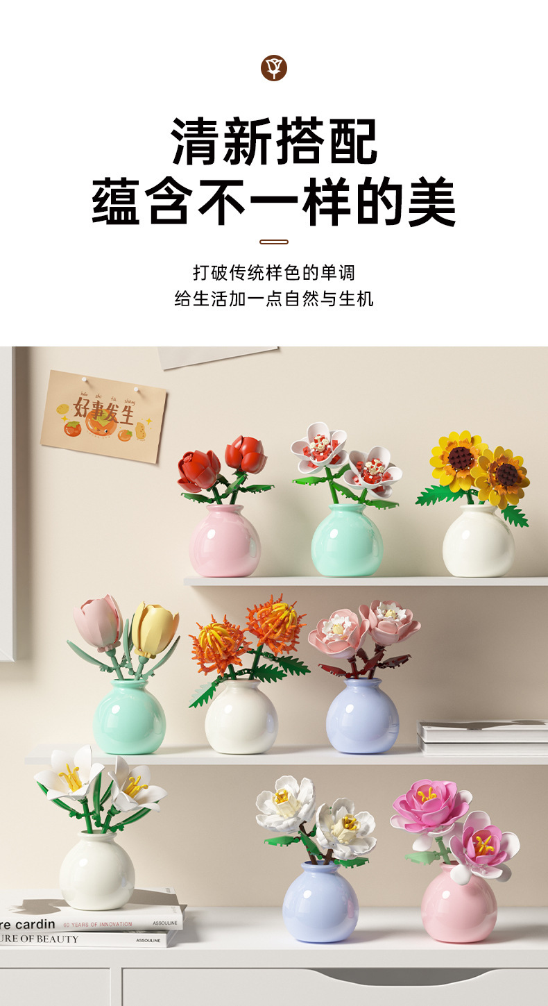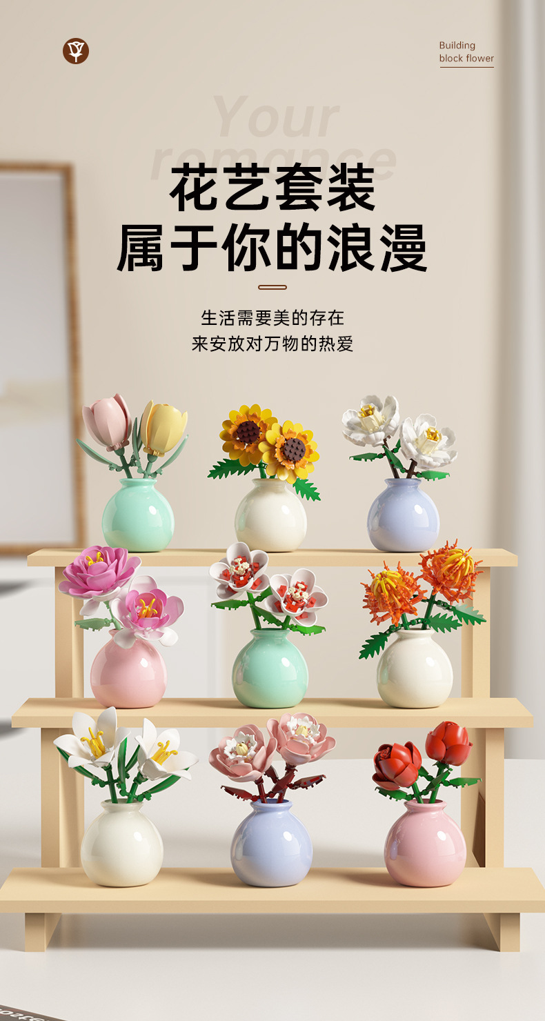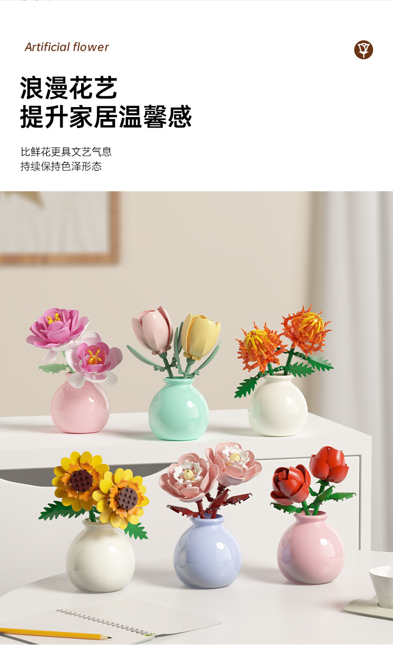 Kompatibel dengan Lego Balok Bunga Bunga Teka-teki Rakitan Vas Bunga Seri Wanita Ornamen Bunga Bunga Tulip Bunga Matahari Grosir